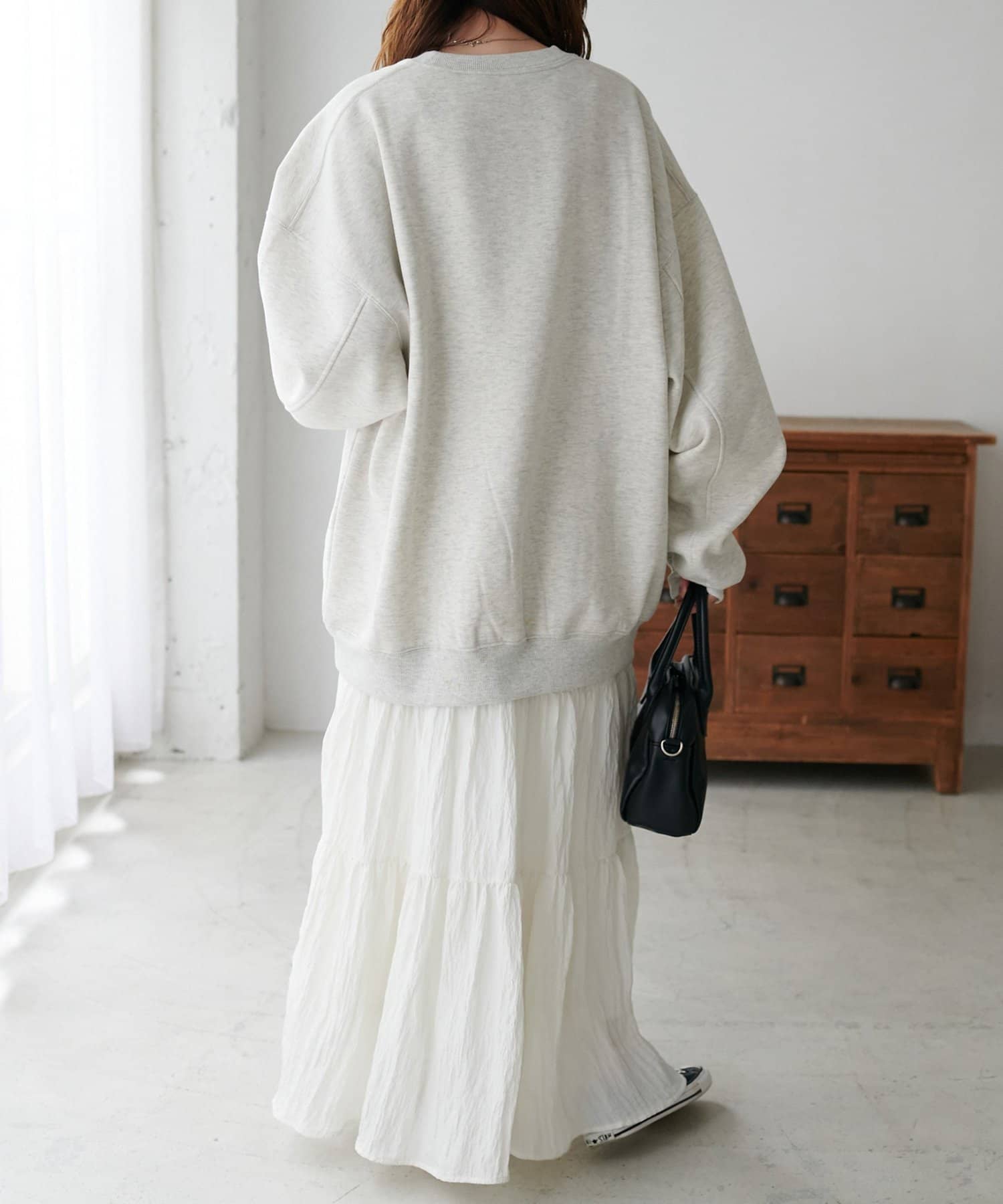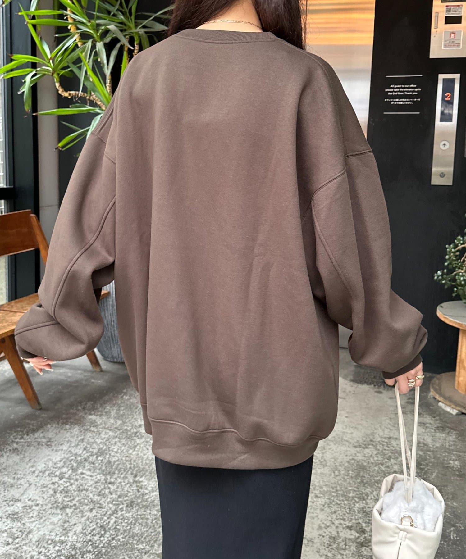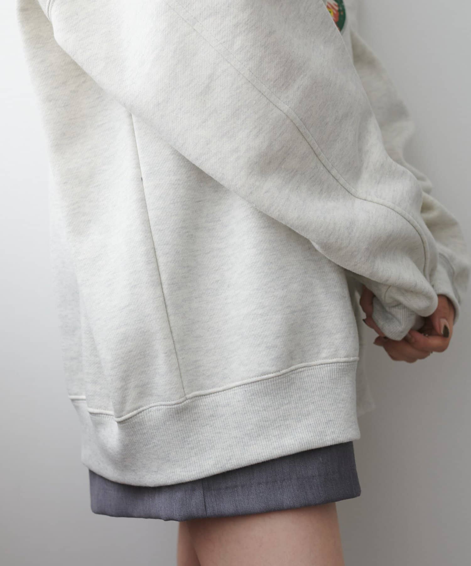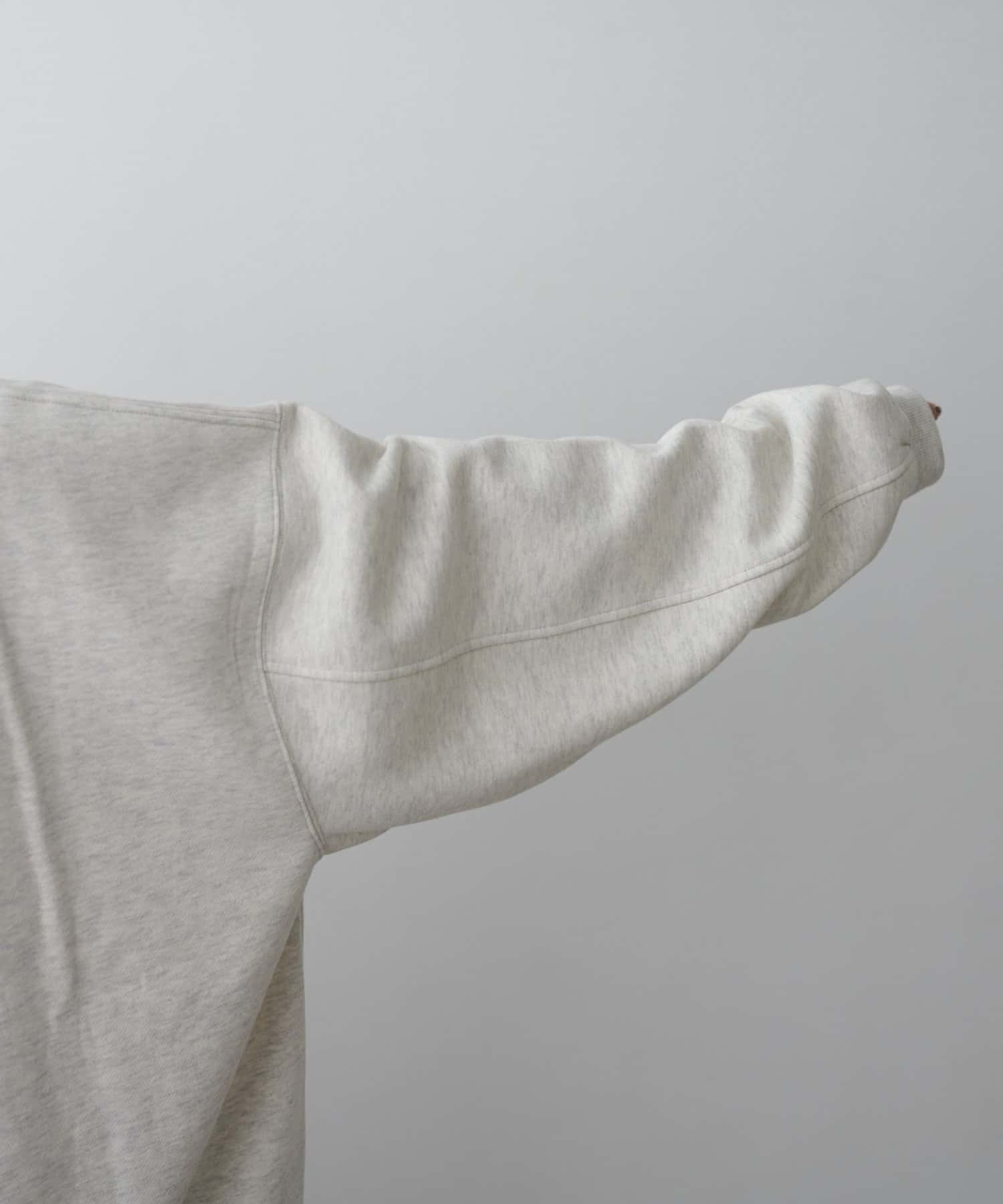 ヘヴィウェイトで柔らかなスウェット生地は一枚でも暖かい裏起毛仕様に、ラインを拾いにくいたっぽりとしたスリーブや、ヒップ辺りまであるゆるっとしたビッグシルエットは男女兼用のユニセックスサイズに仕上げました。