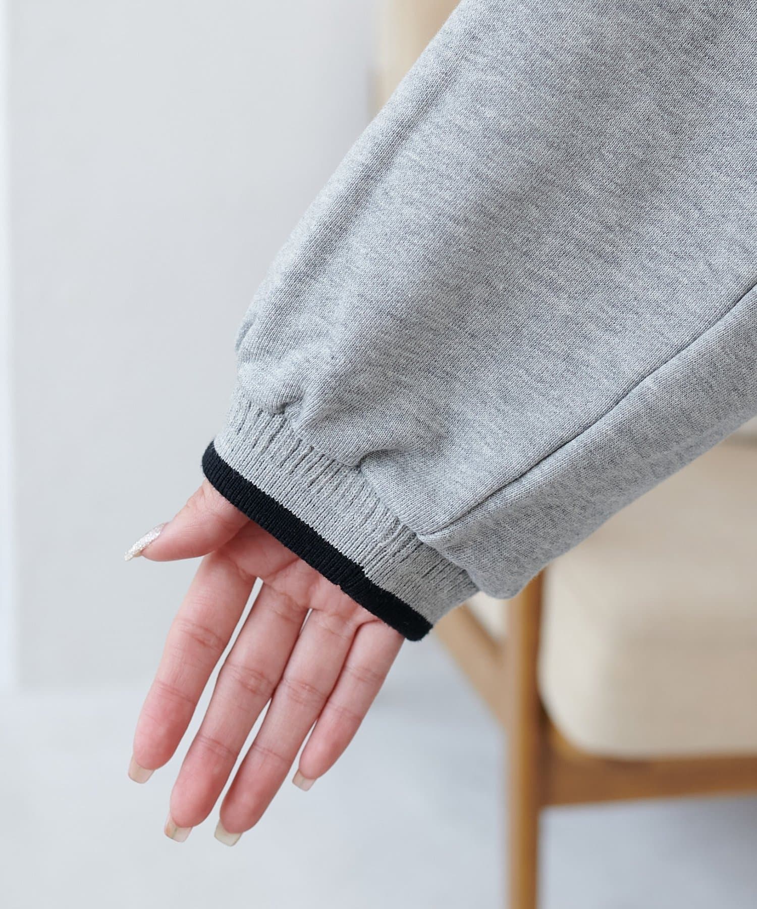 袖口と首元には配色ラインを施し、シンプルながらもさりげないアクセントをプラス◎ベーシックな中にも程よいスポーティさが加わり、一枚で着ても様になる仕上がりです。