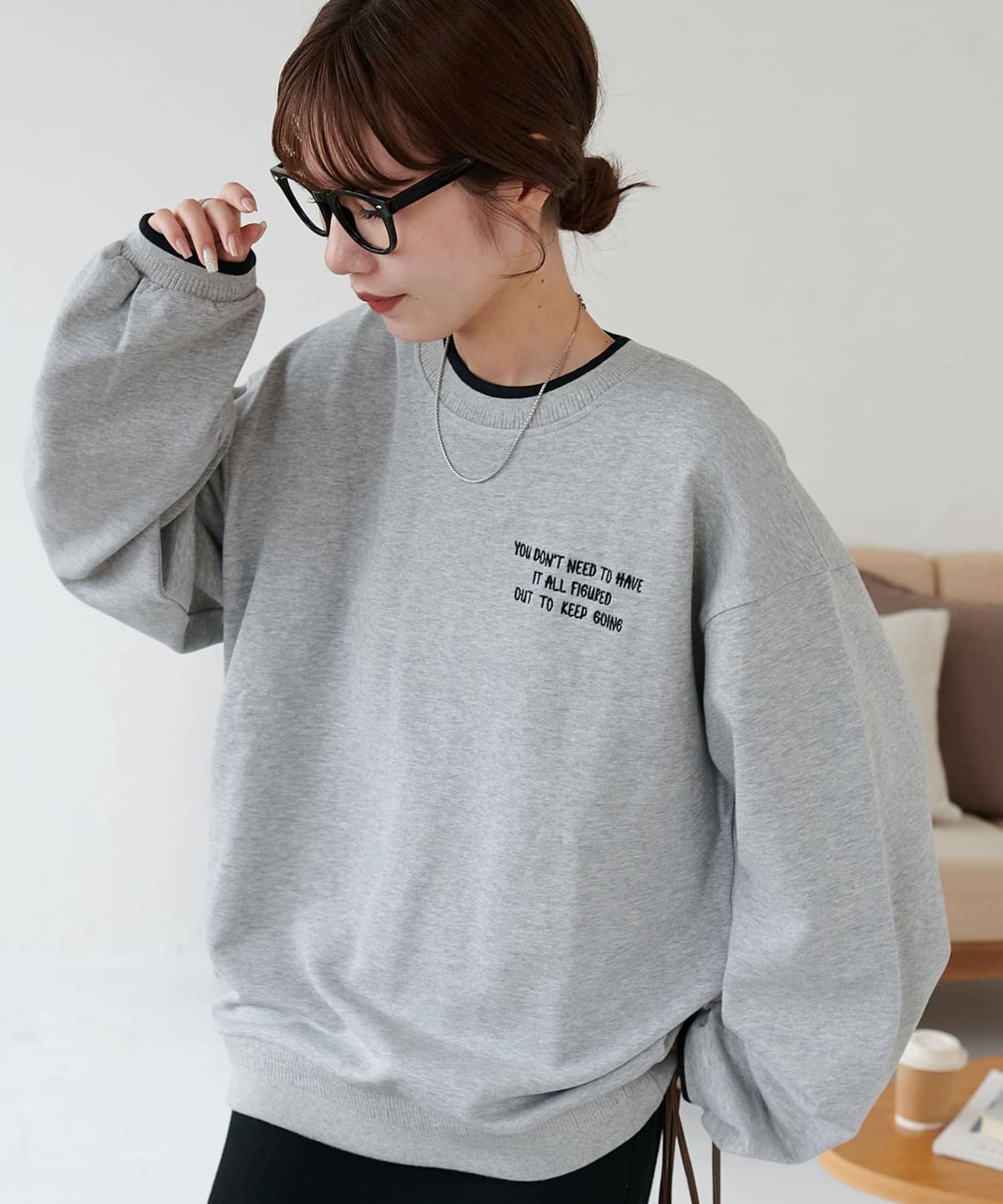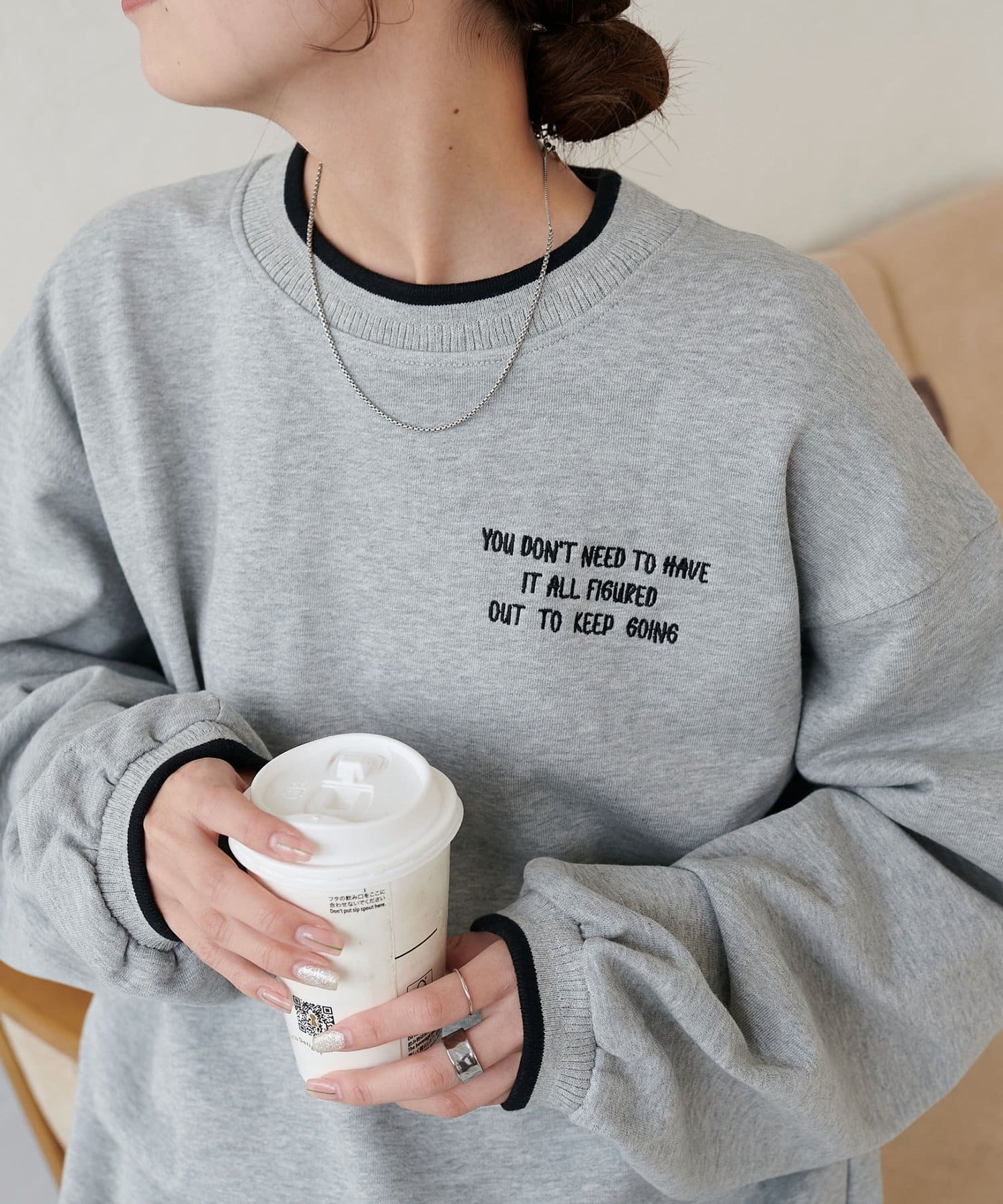 【ユニセックス】ラインリブワンポイント刺繍スウェット