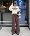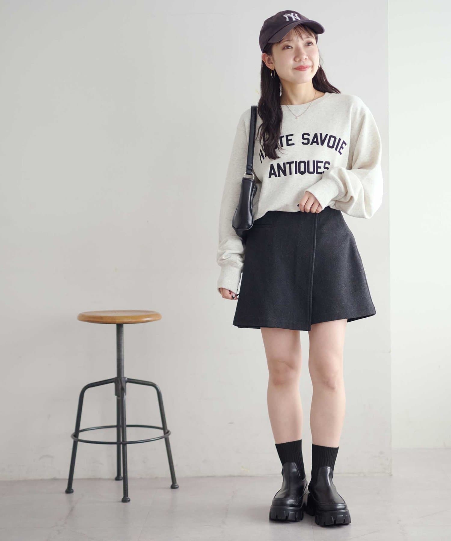 149cmレディーススタッフ:裏毛でボリューム感があまりないので、ユニセックスですがボトムスにインしたスタイルもできます!