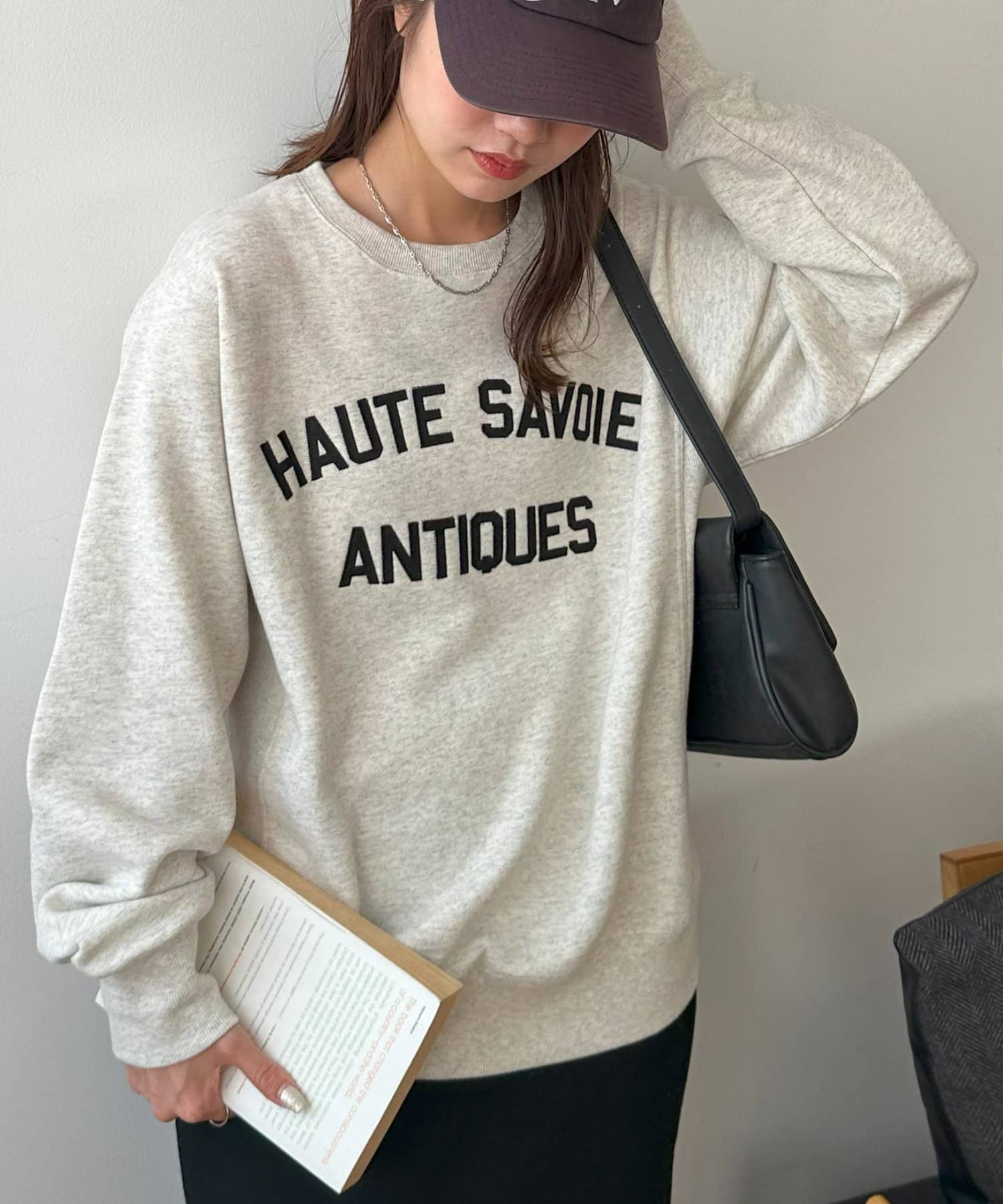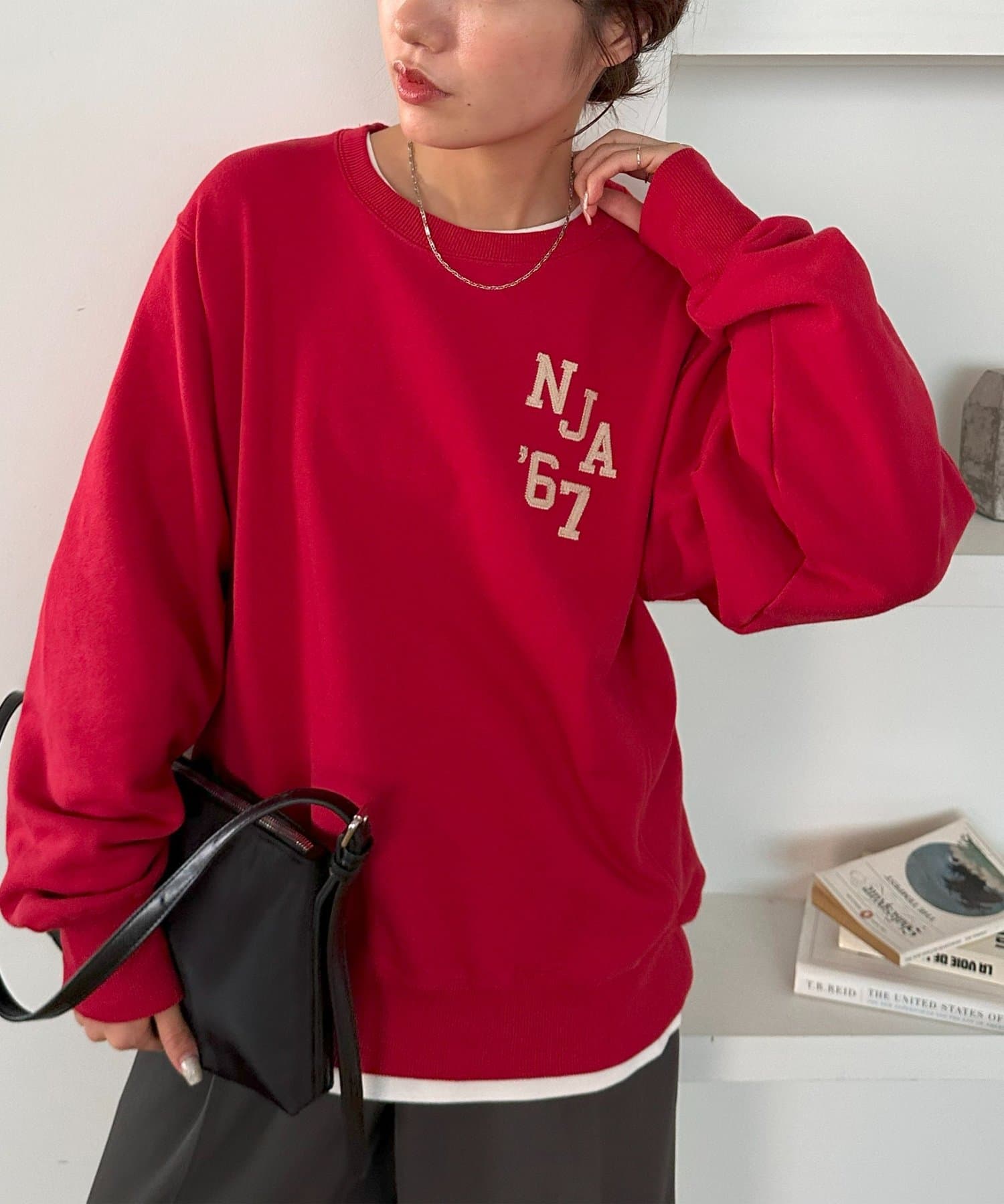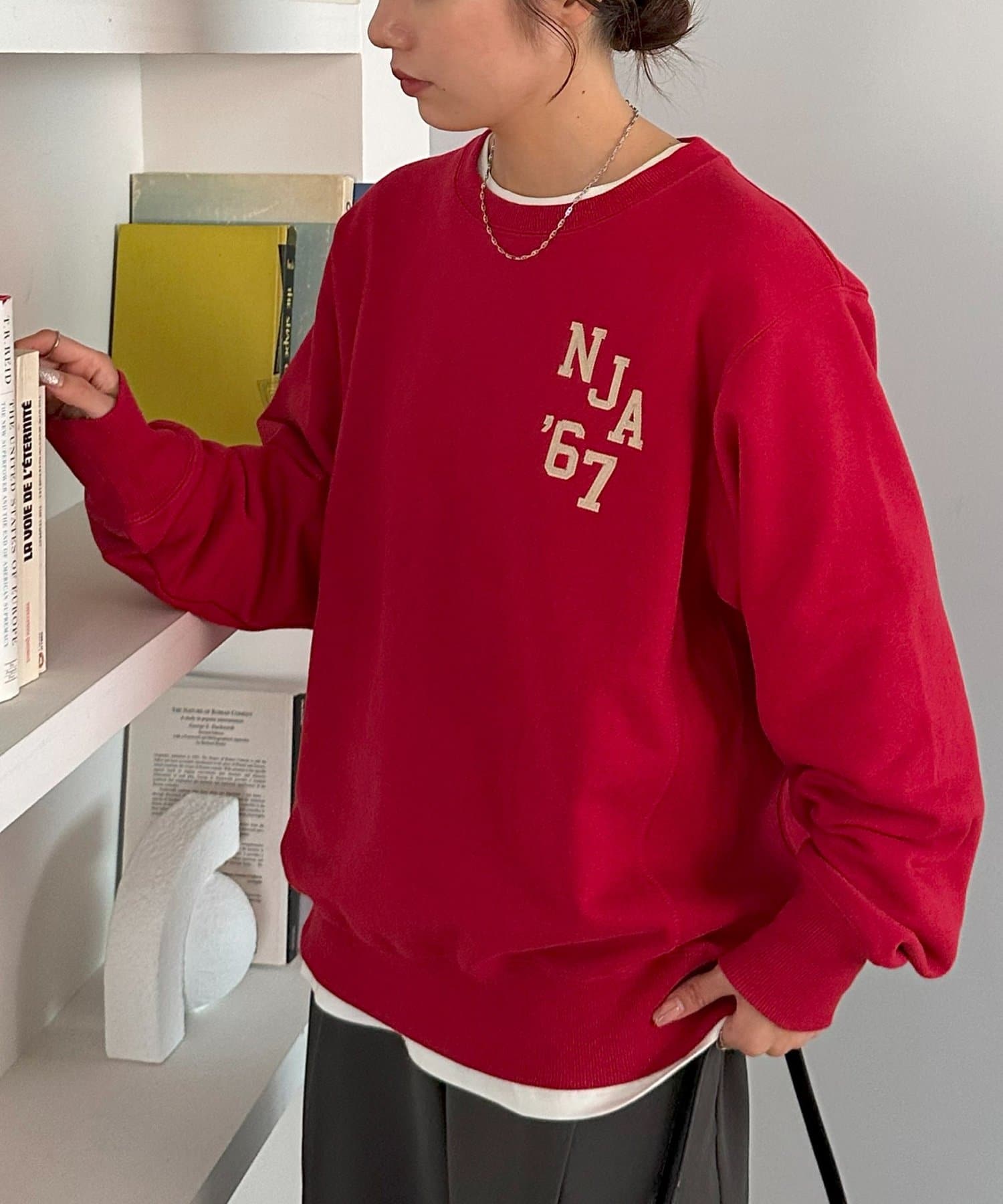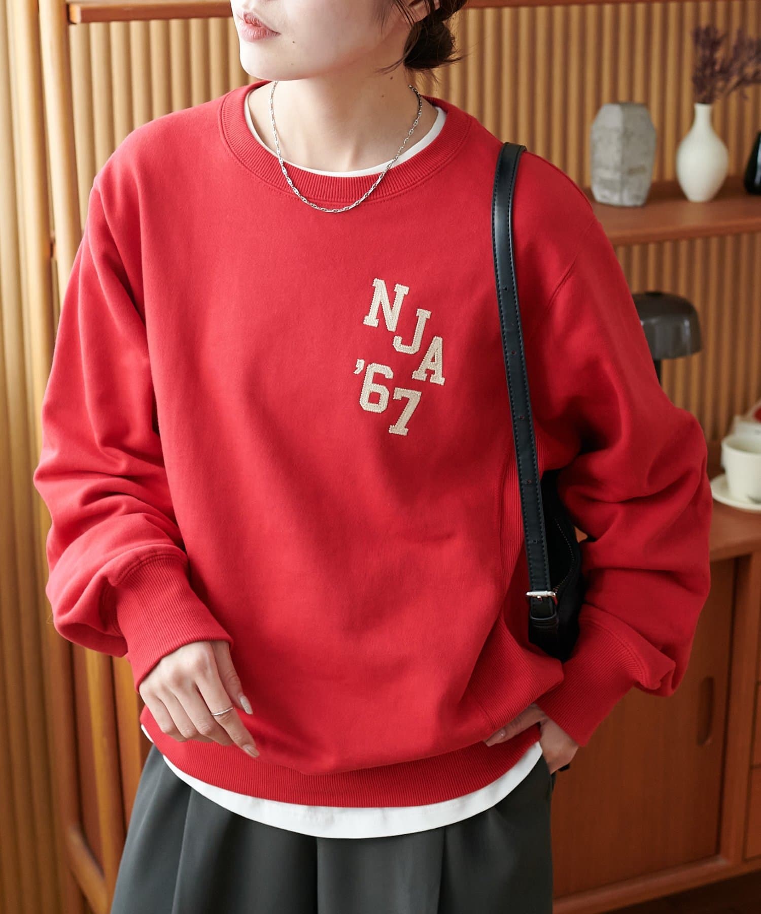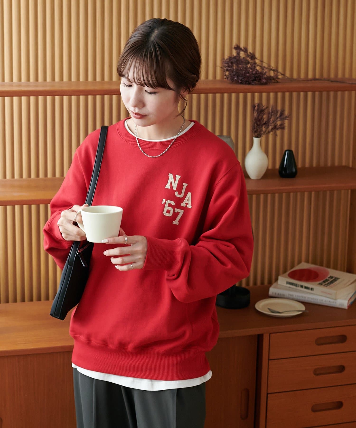 ヴィンテージライクなカレッジ風ロゴが目を引くアソートワッペンスウェット。