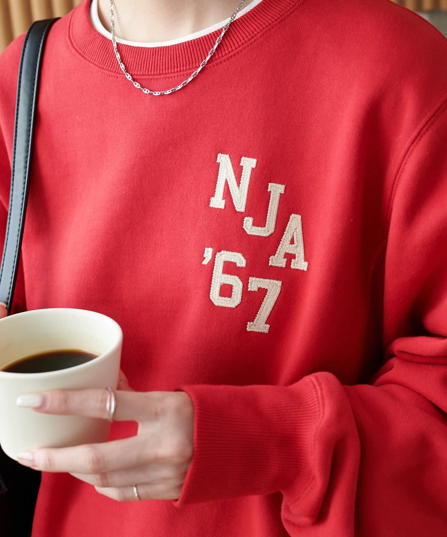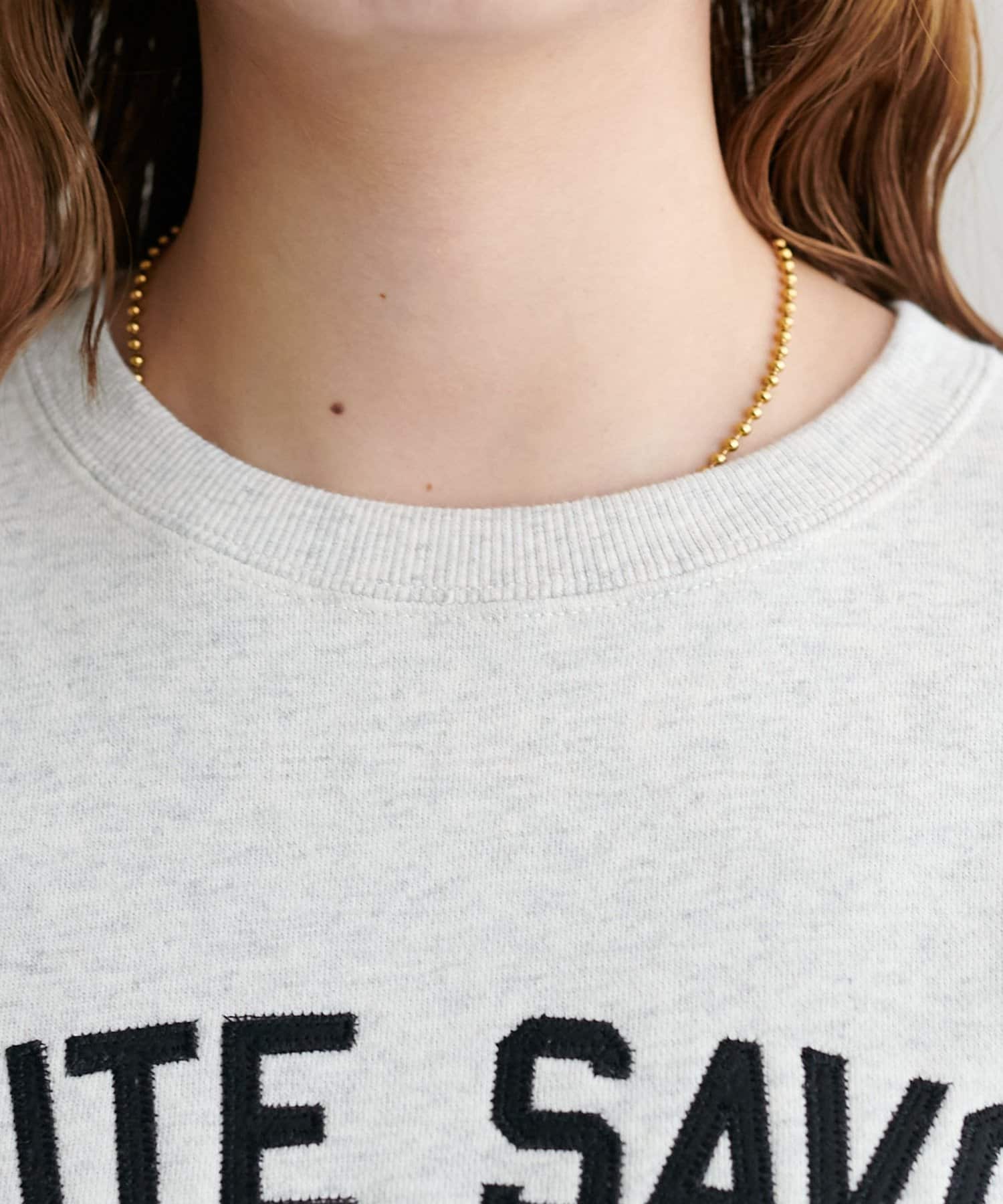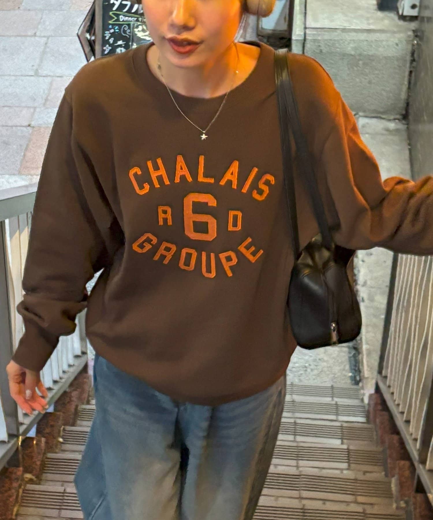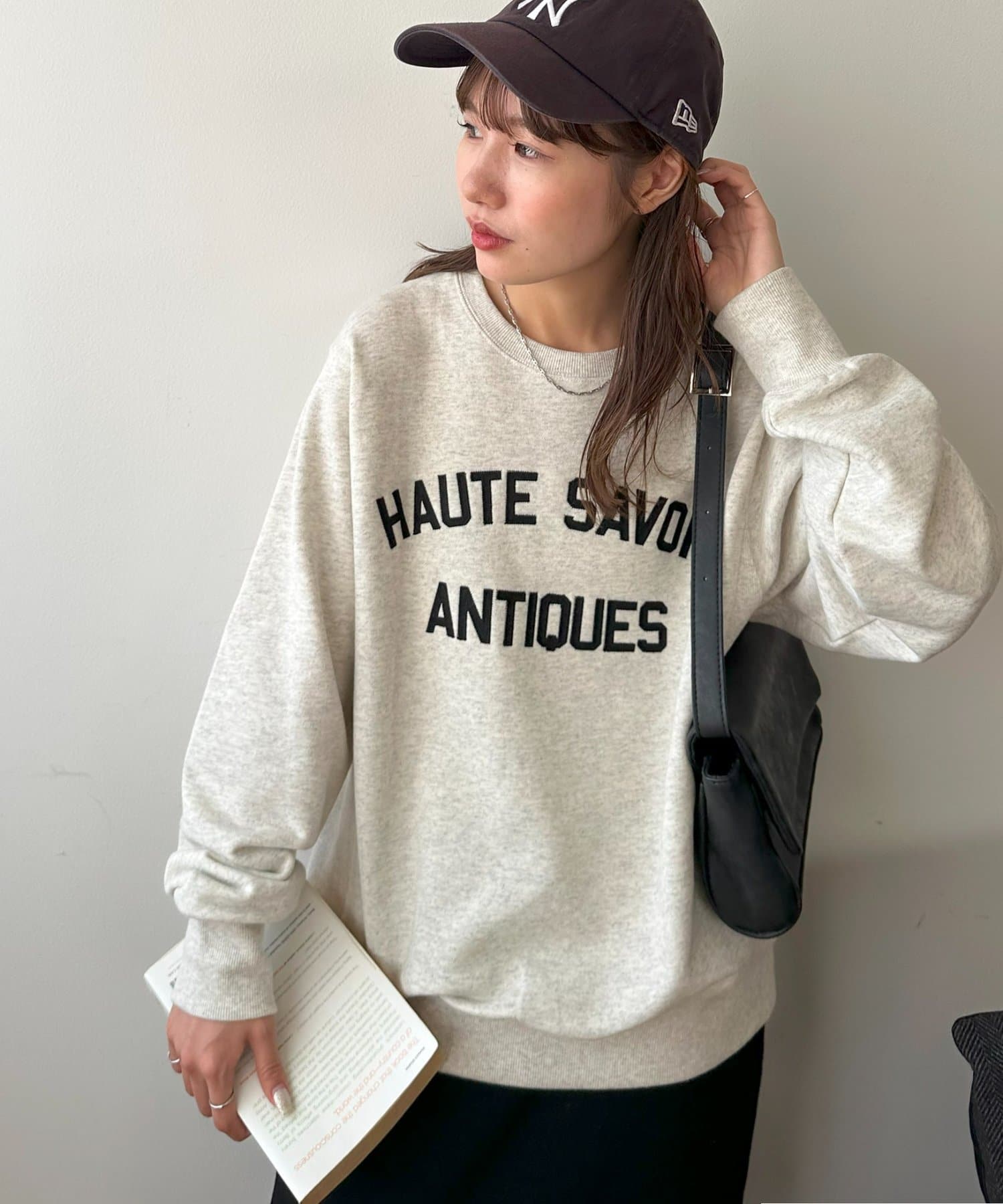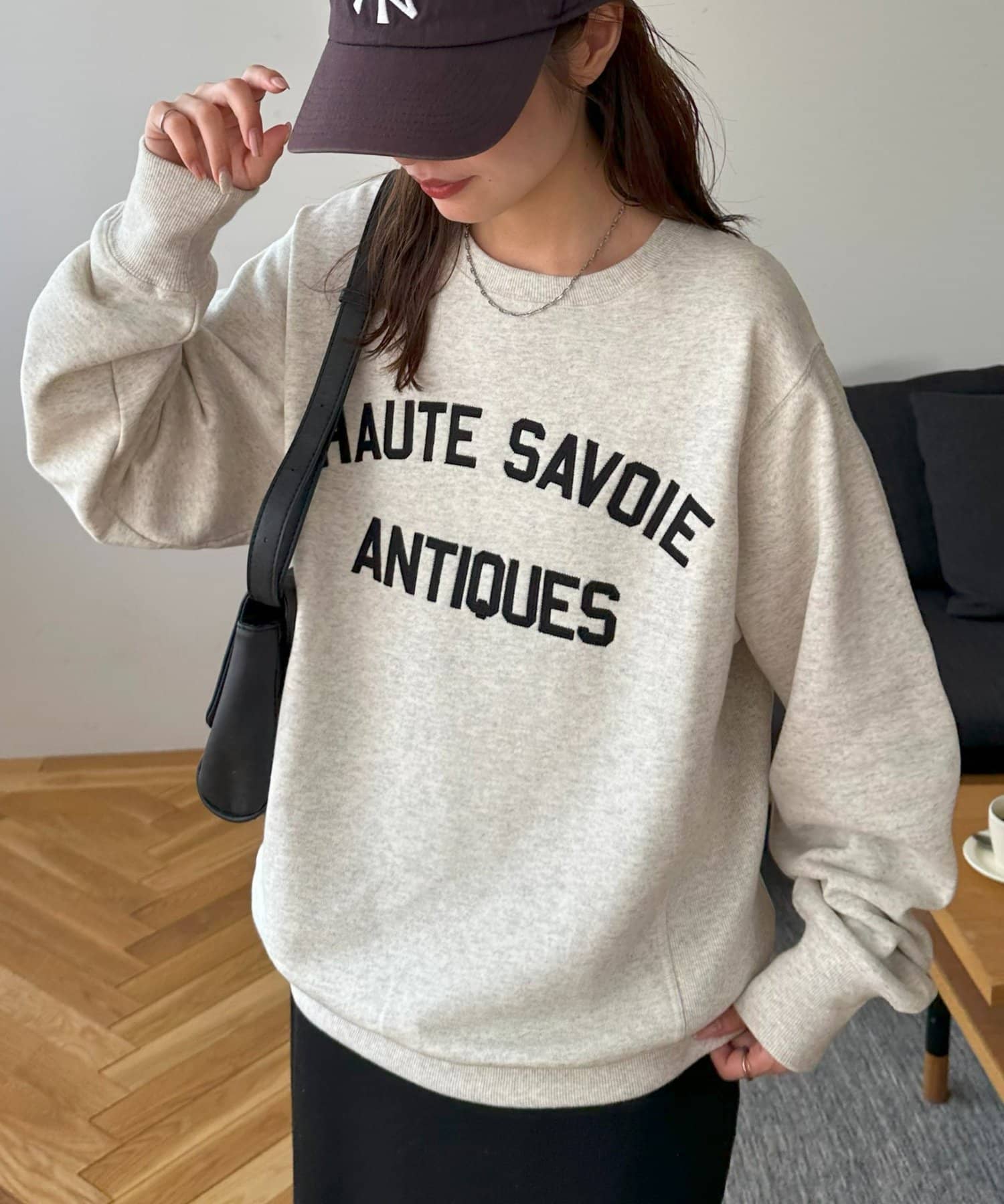 ヴィンテージライクなカレッジ風ロゴが目を引くアソートワッペンスウェット。