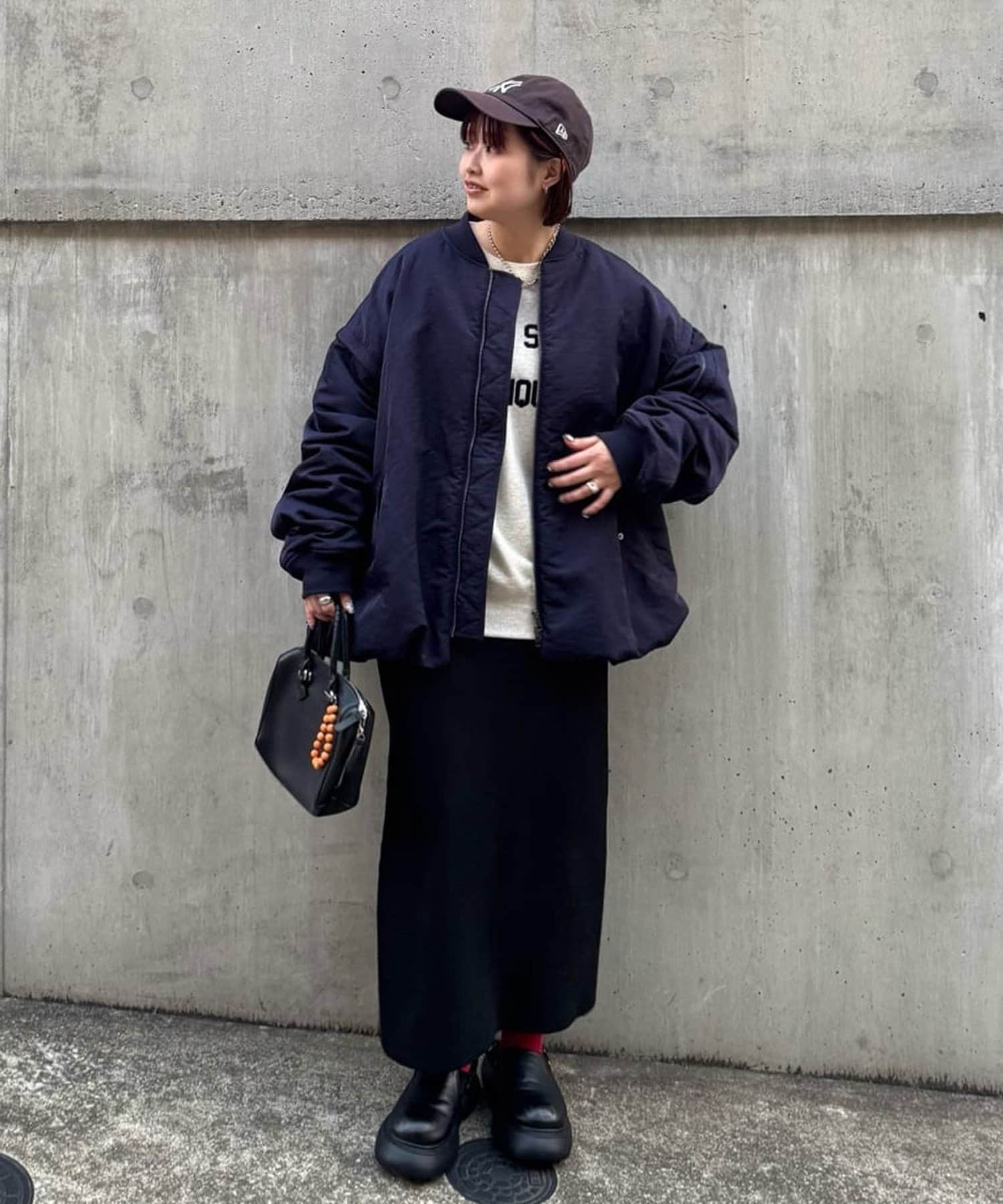 デニムなどと合わせた王道カジュアルはもちろん、ロングスカートやスラックスと合わせたミックススタイルもおすすめ。