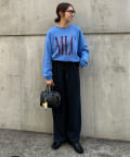 163cmレディーススタッフ:ゆるっとしたサイズ感ですが、裏毛で生地が厚くないのでボトムスにインしたスタイルもしやすい!