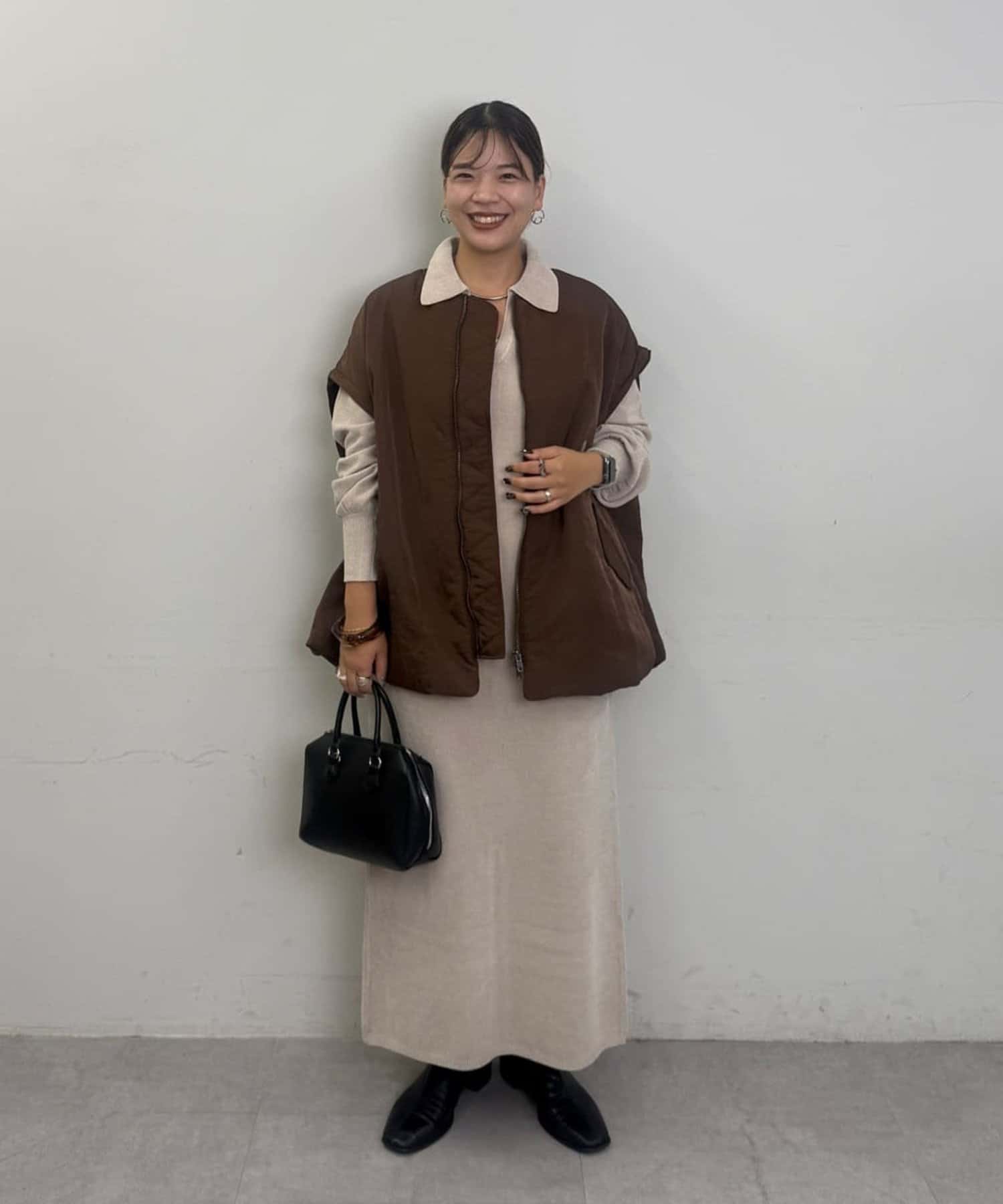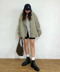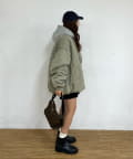 157cmレディーススタッフ:袖のたまり具合がたっぷり感が出てかわいい!オーバーサイズですが、軽量なので女性にもおすすめのアウター。
