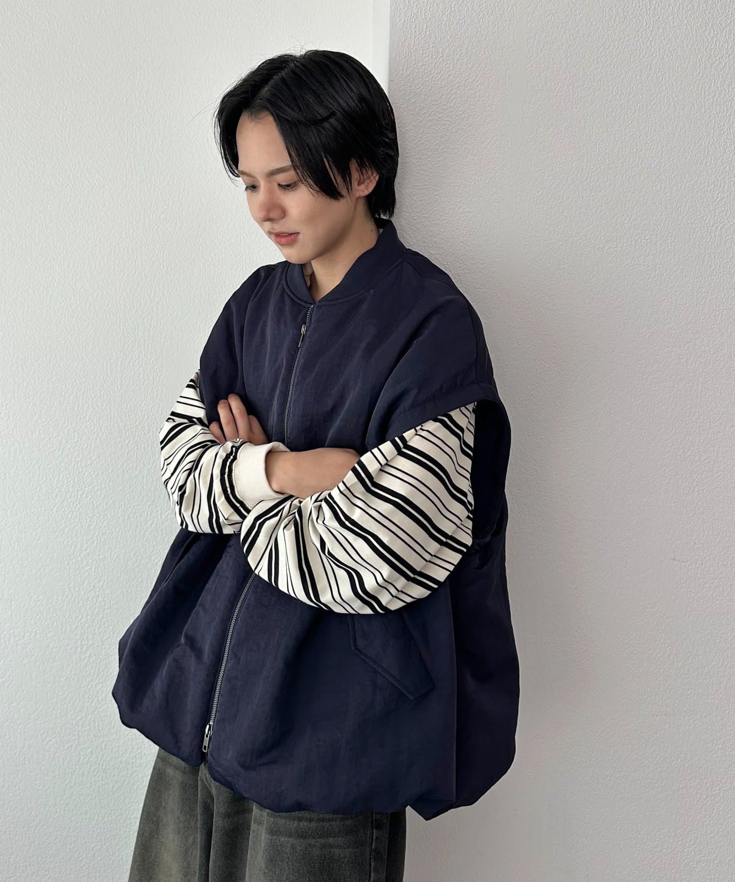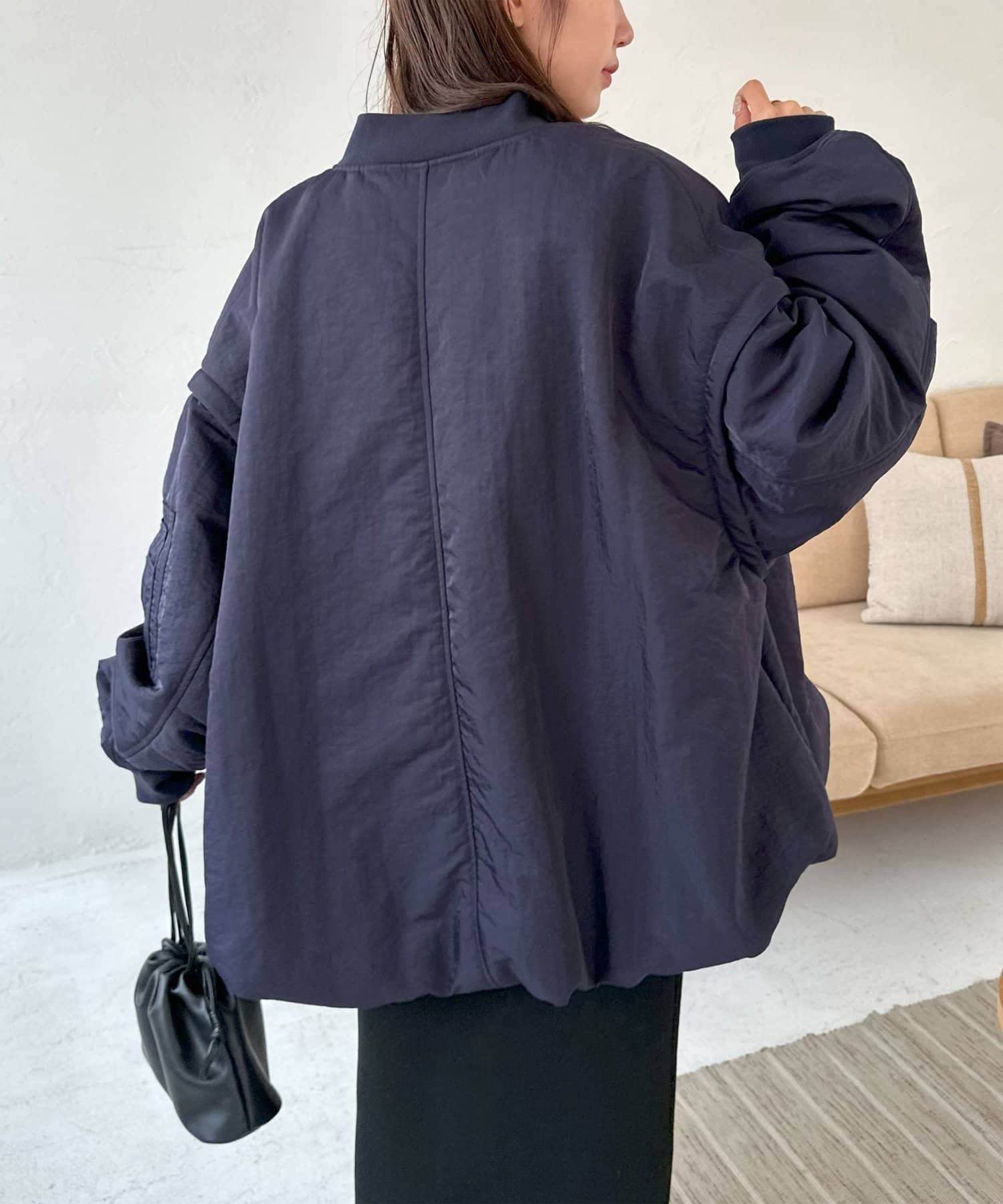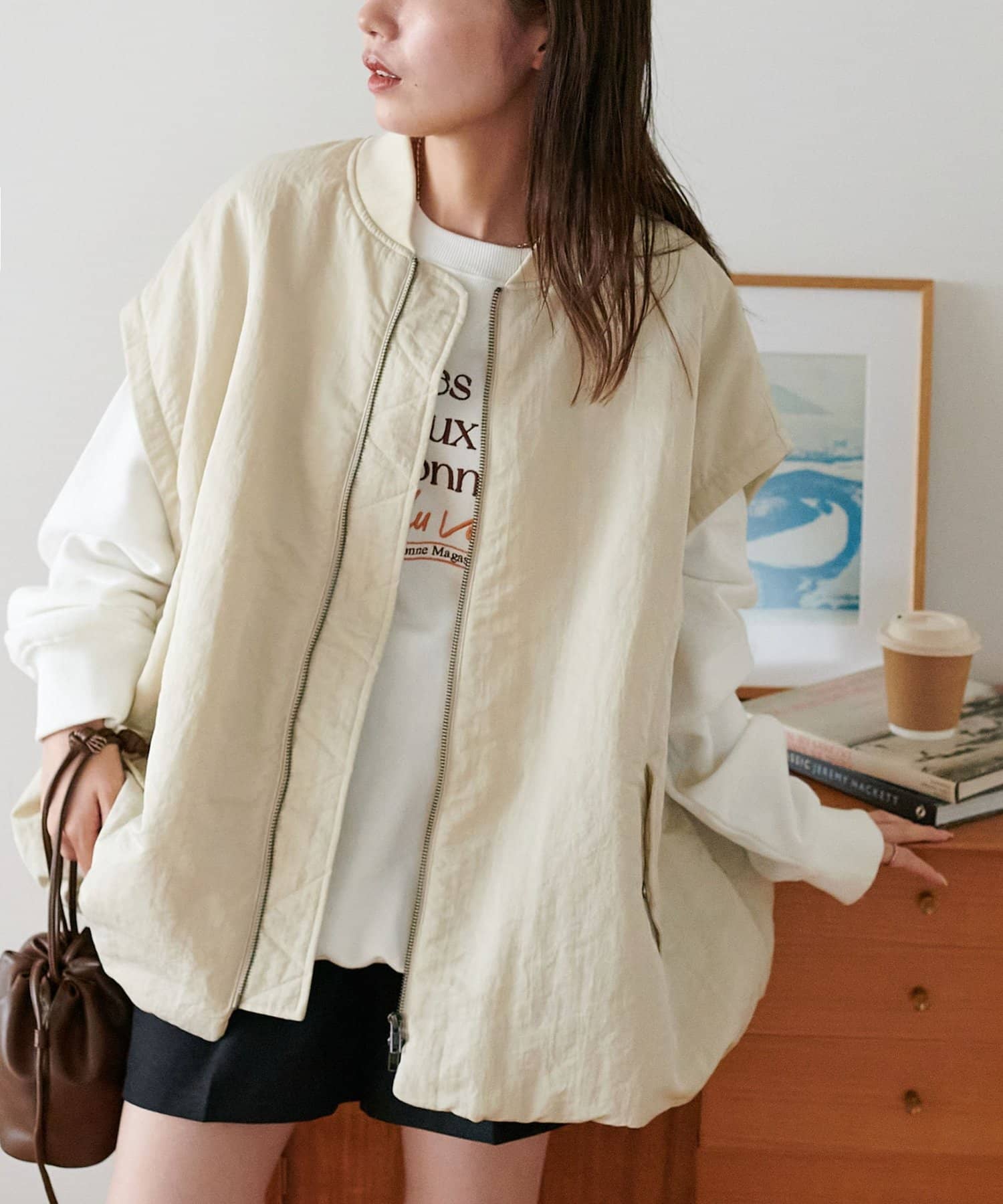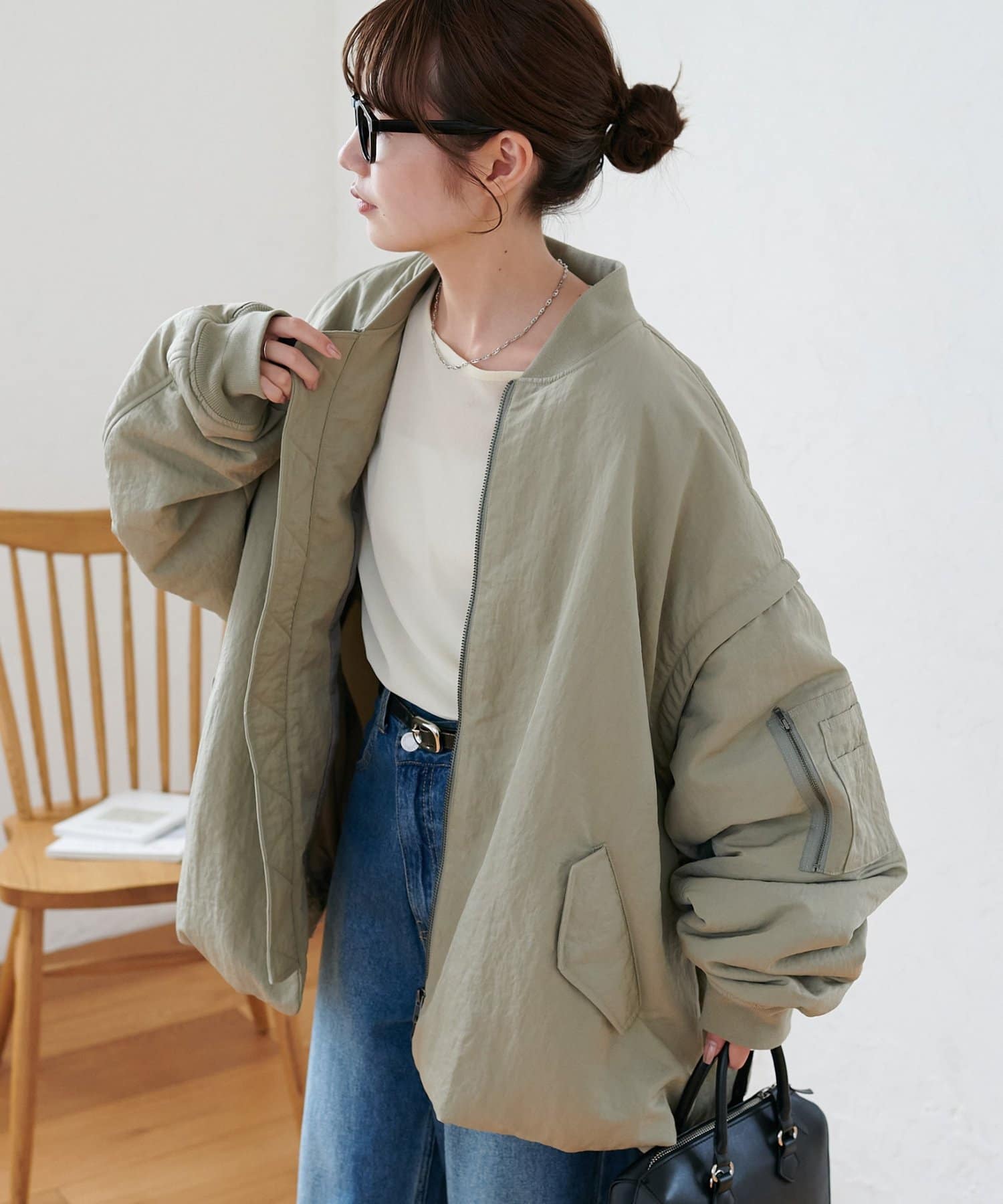 袖は取り外し可能で、ボンバーブルゾンとしてだけではなくベストとしても着まわしが可能!コーデの幅が広がります〇