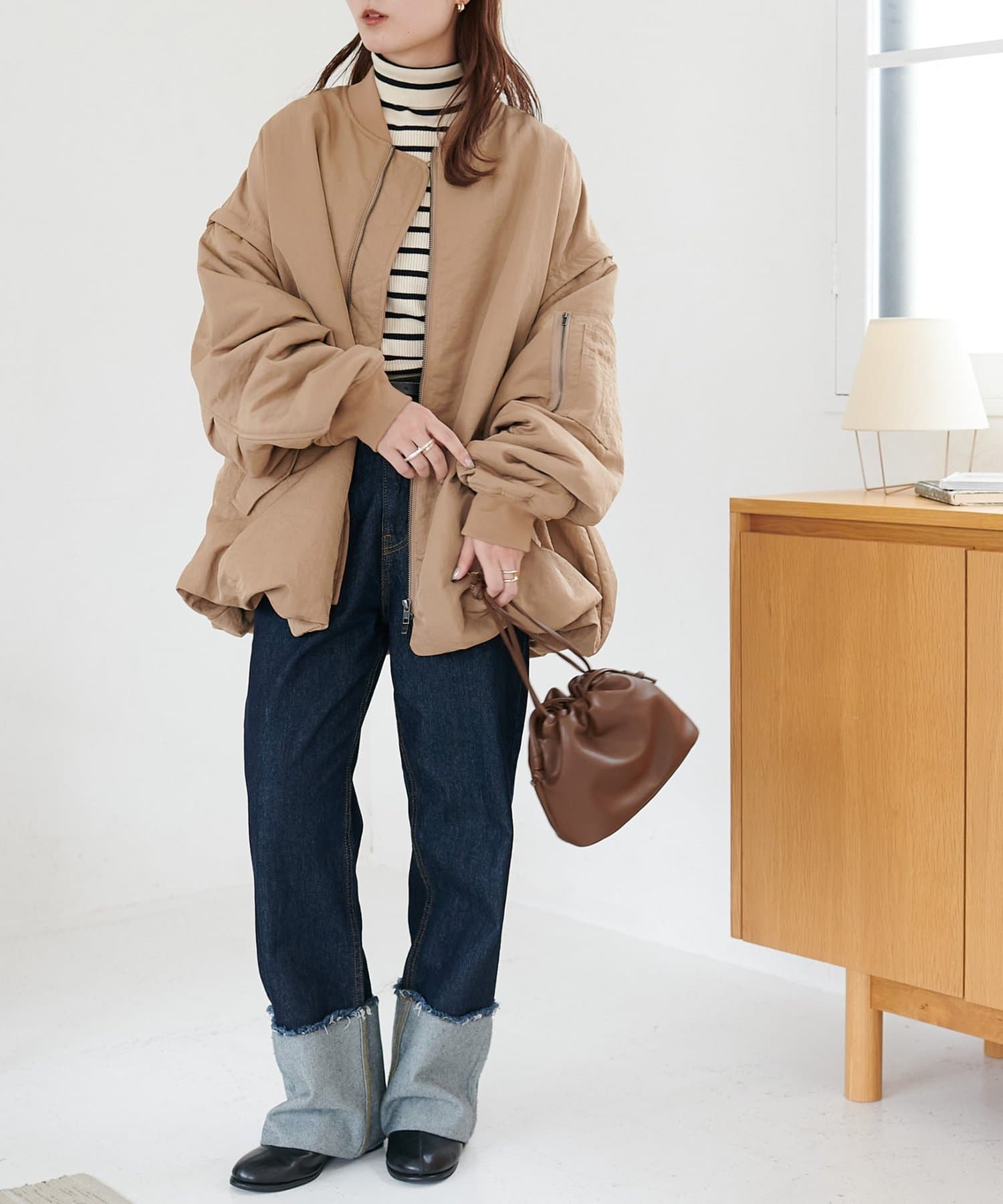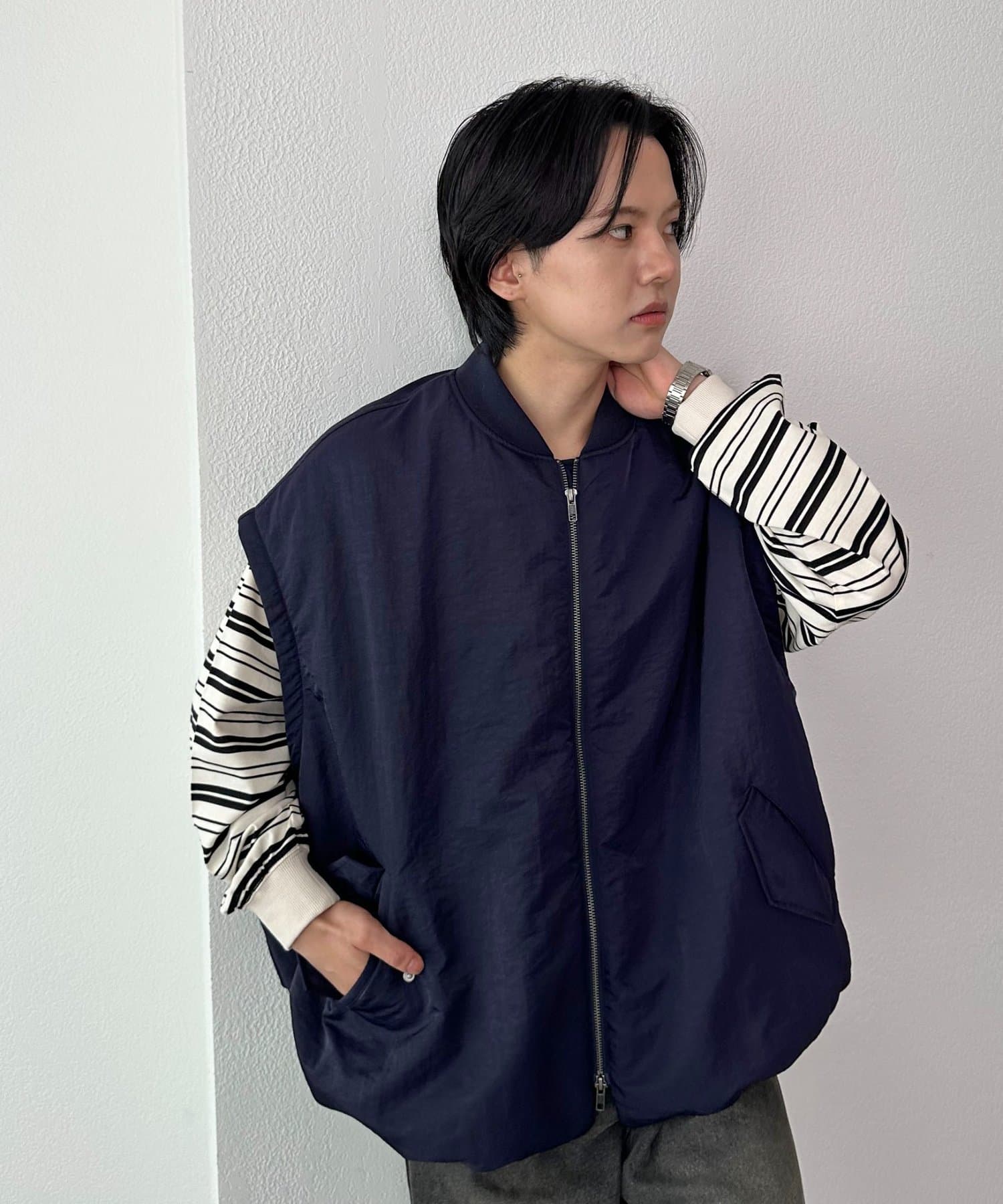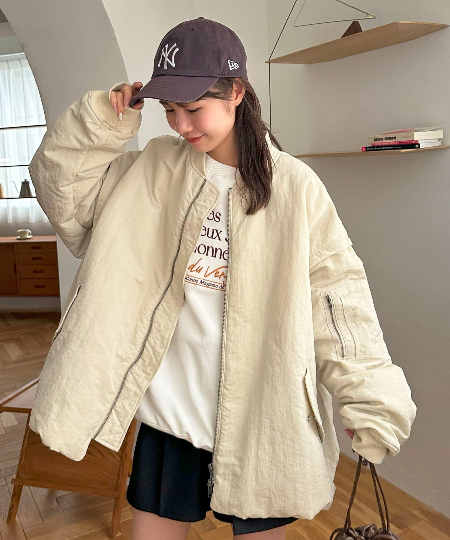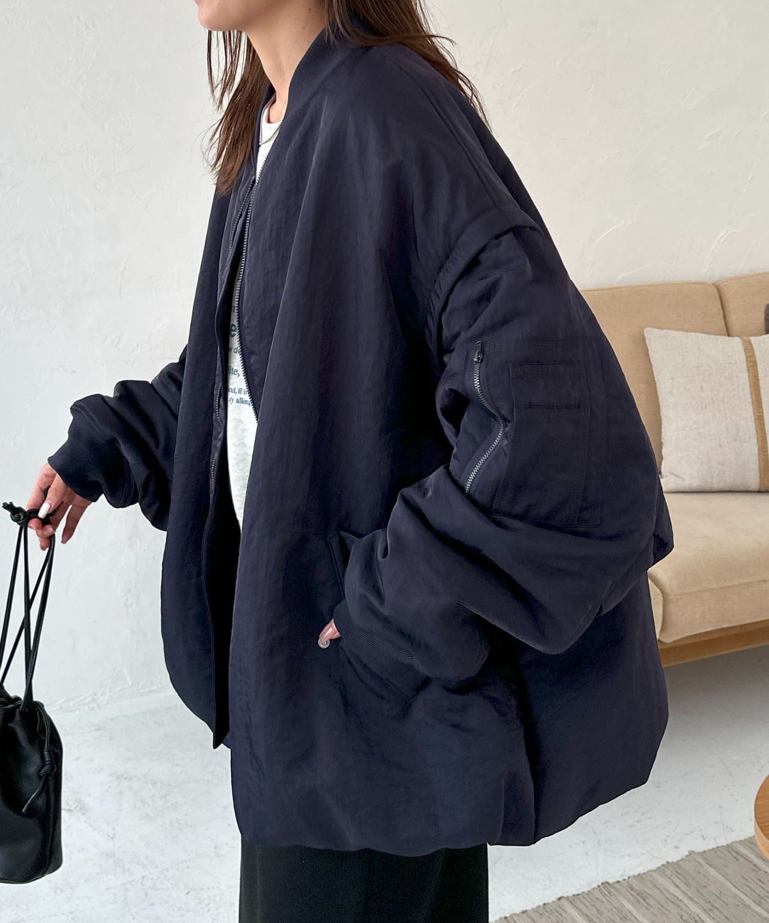 袖は取り外し可能で、ボンバーブルゾンとしてだけではなくベストとしても着まわしが可能!コーデの幅が広がります〇