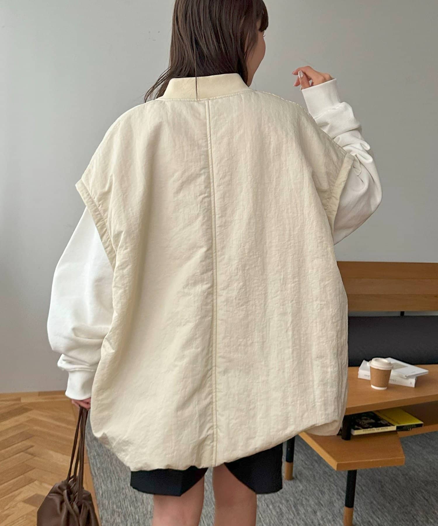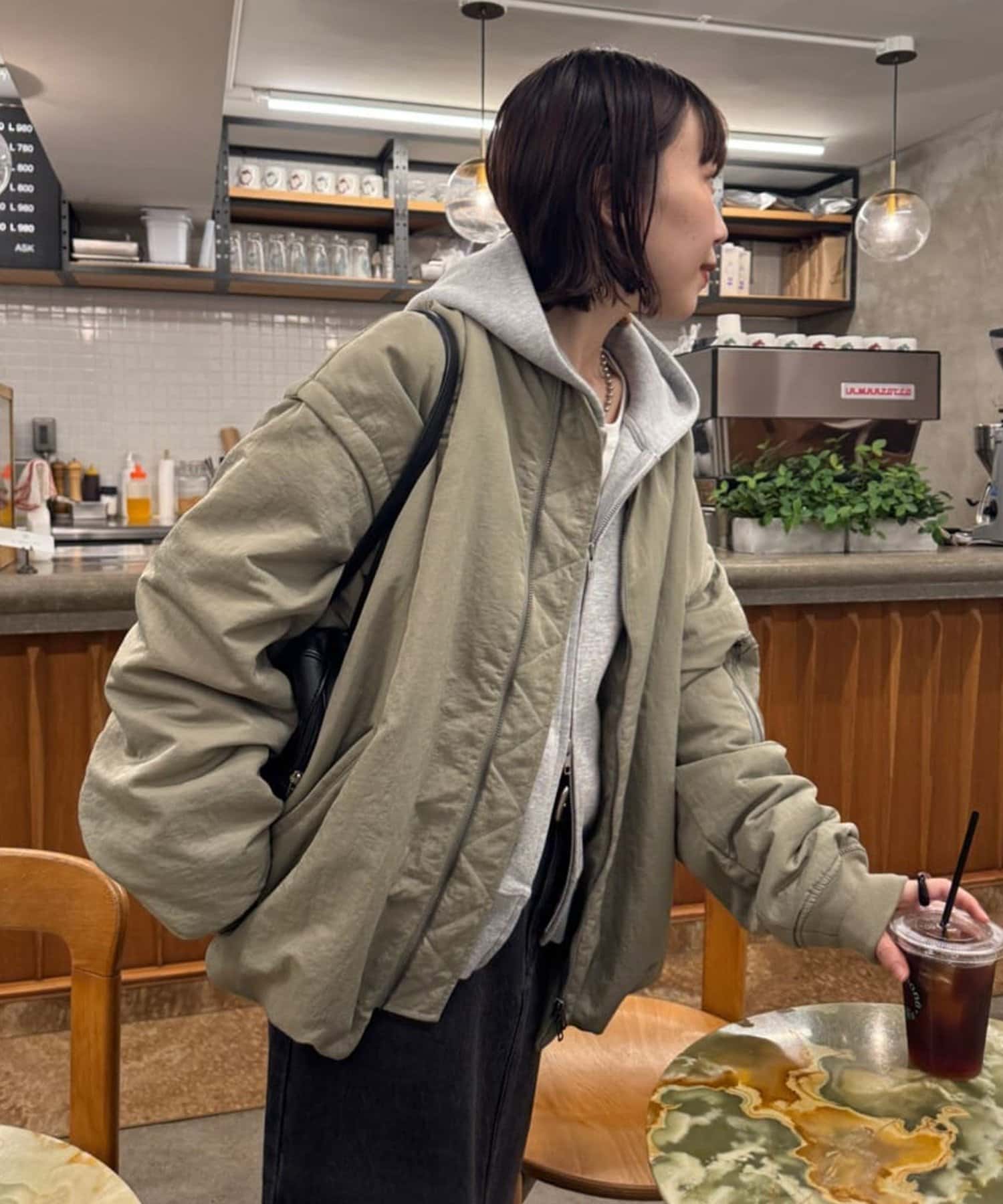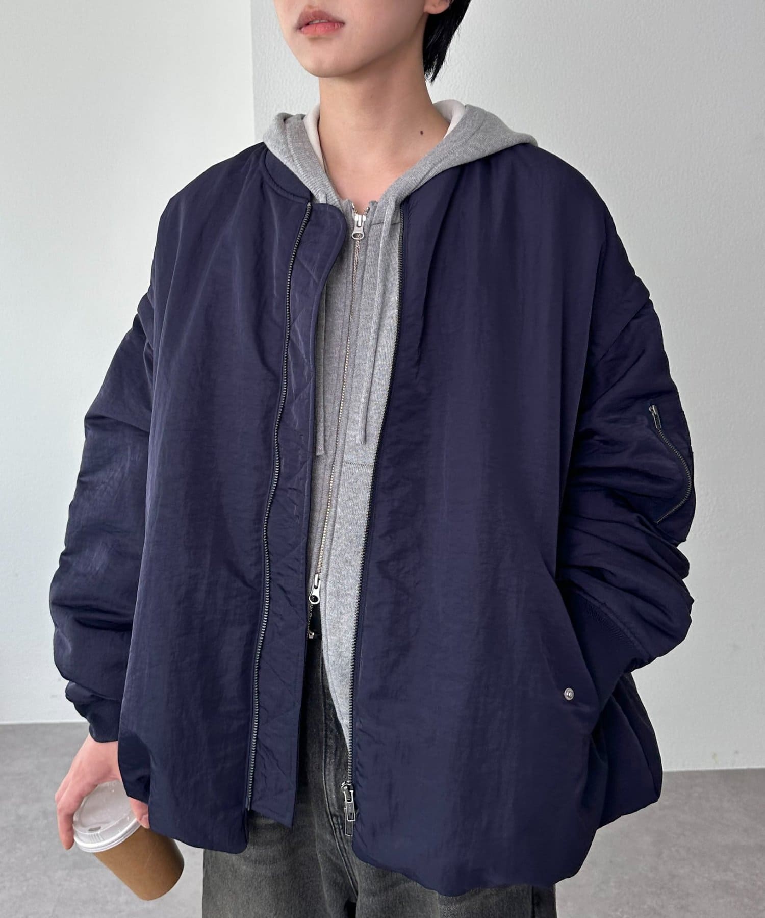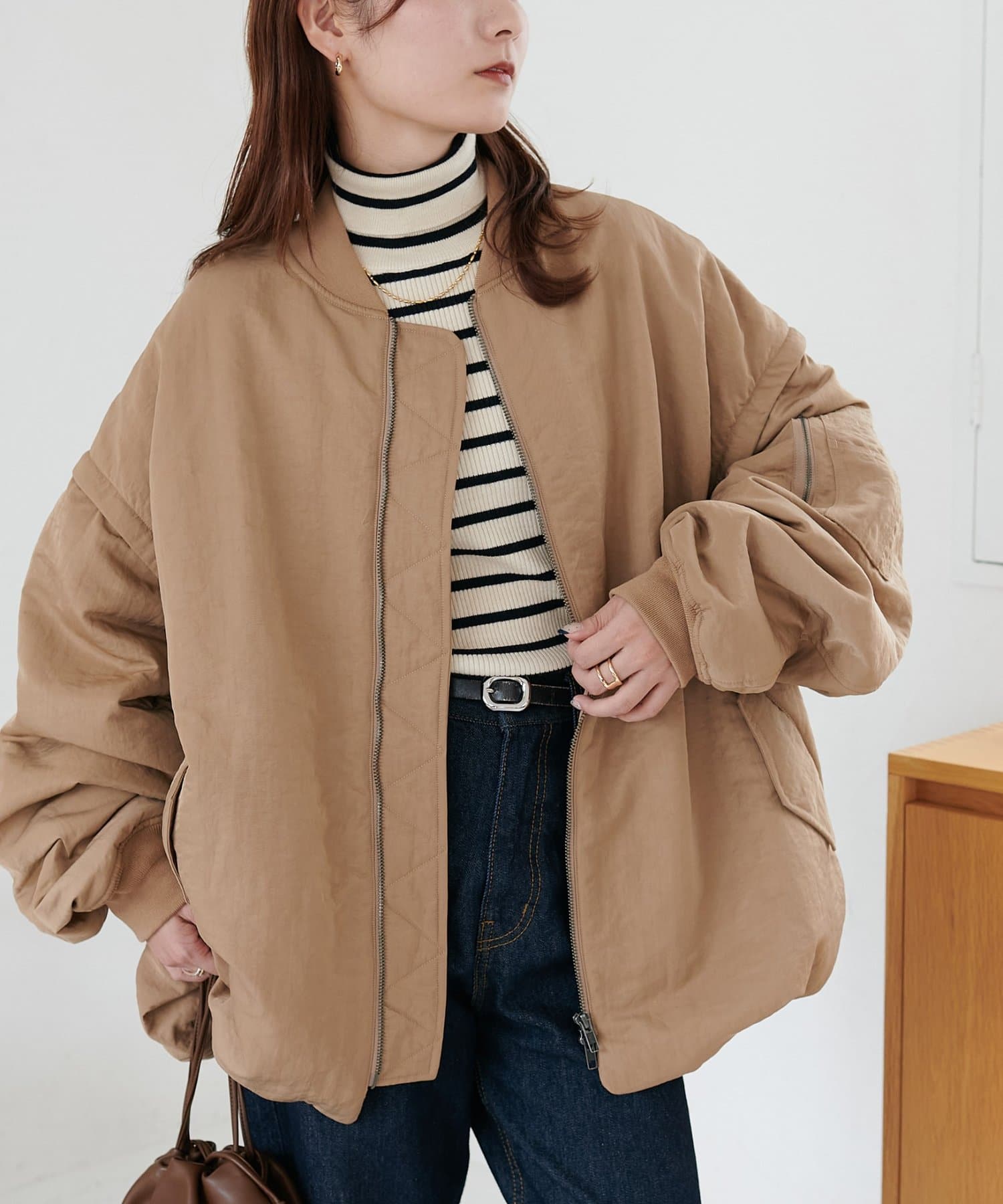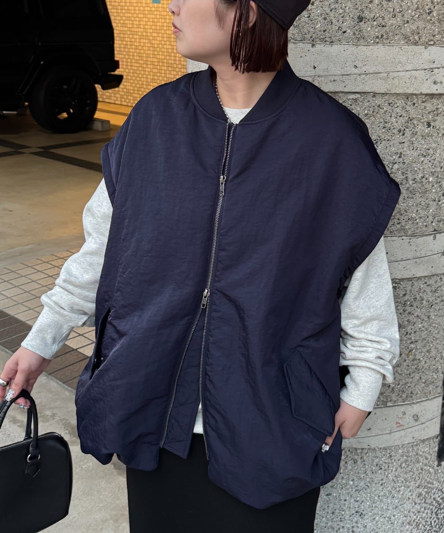 袖は取り外し可能で、ボンバーブルゾンとしてだけではなくベストとしても着まわしが可能!コーデの幅が広がります〇