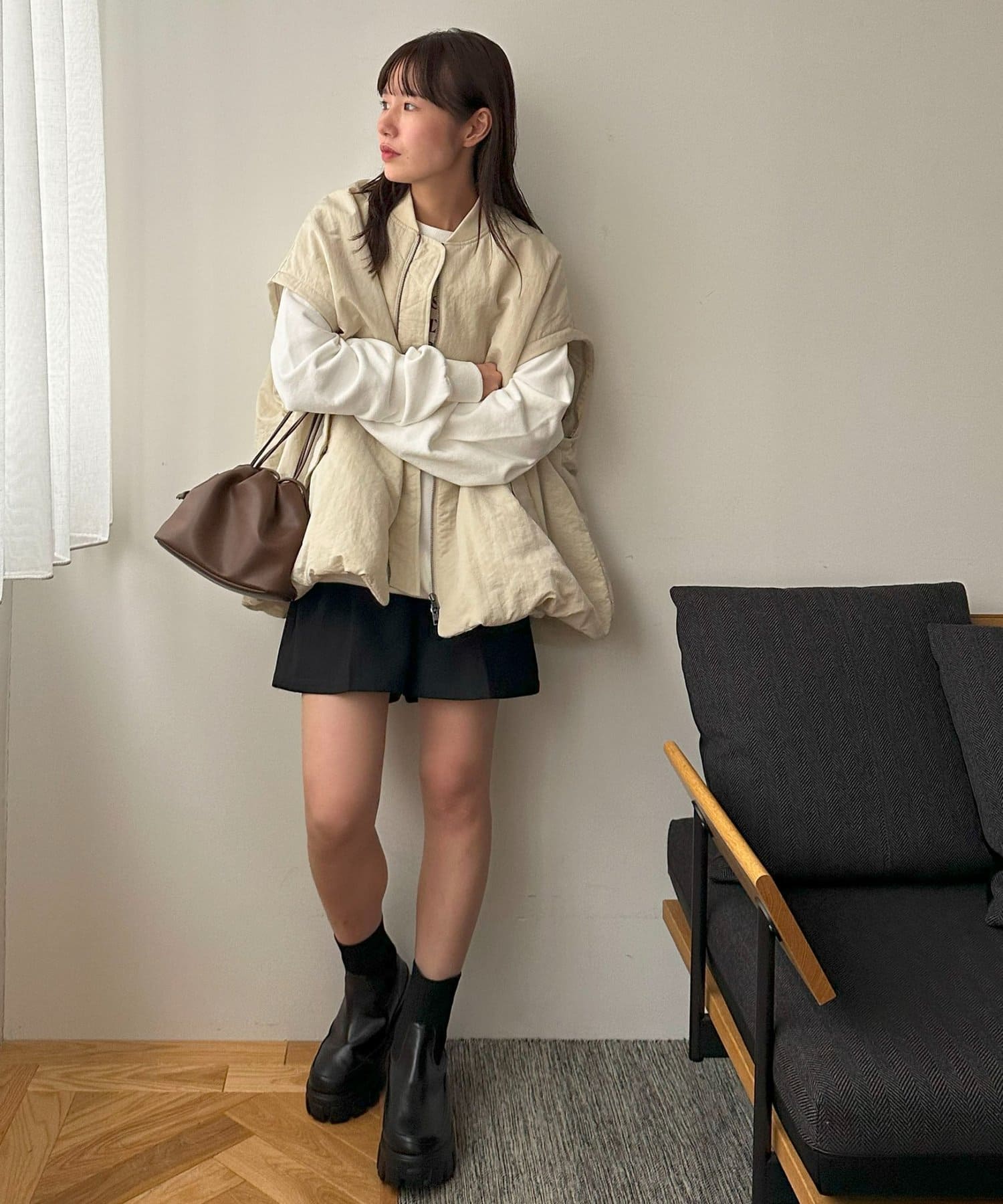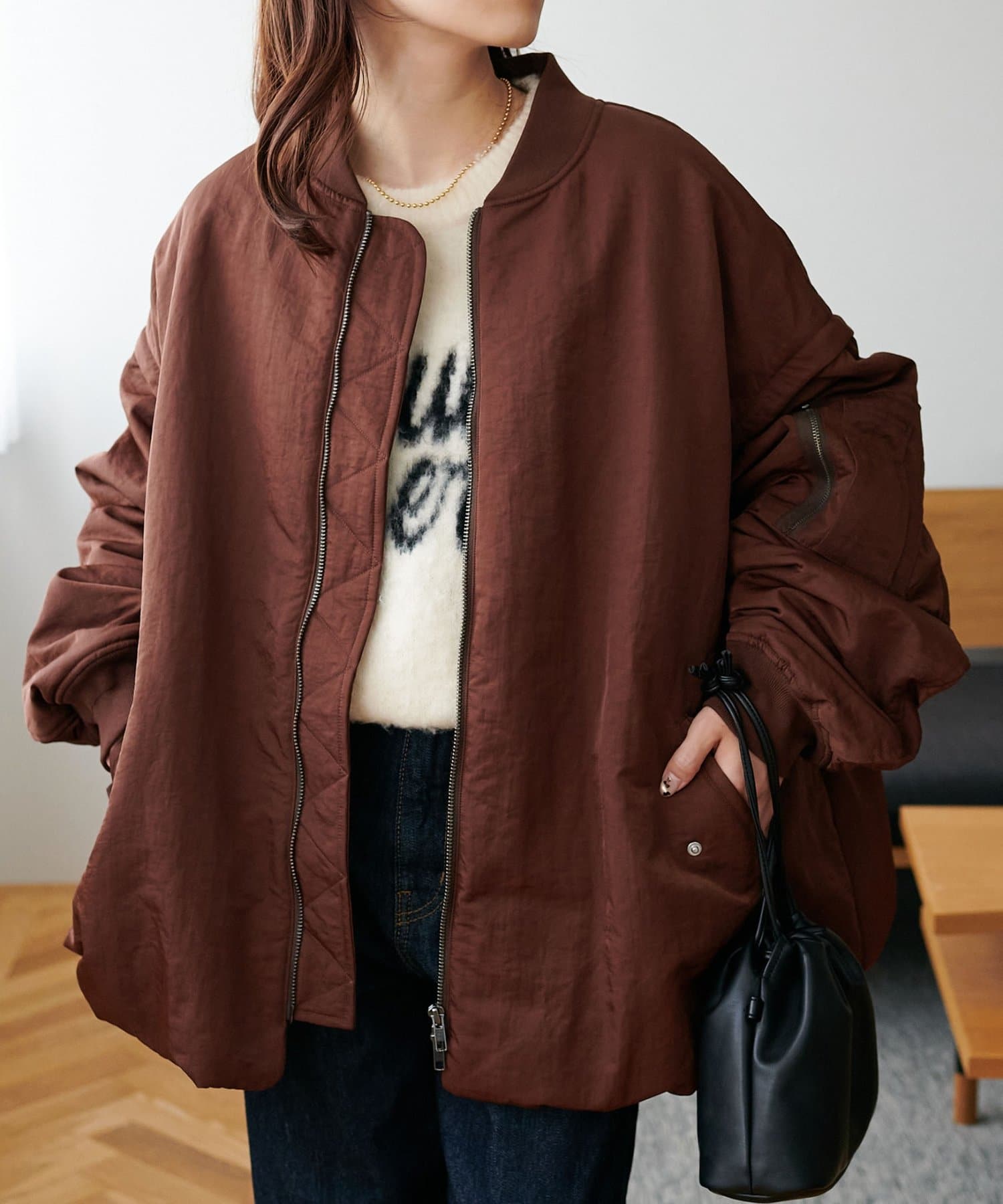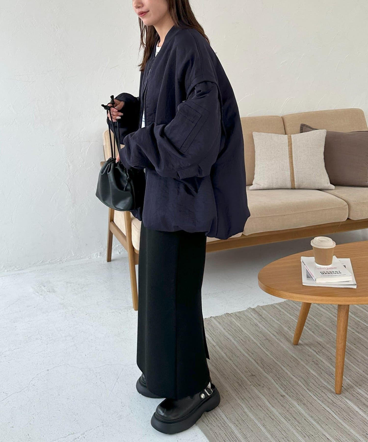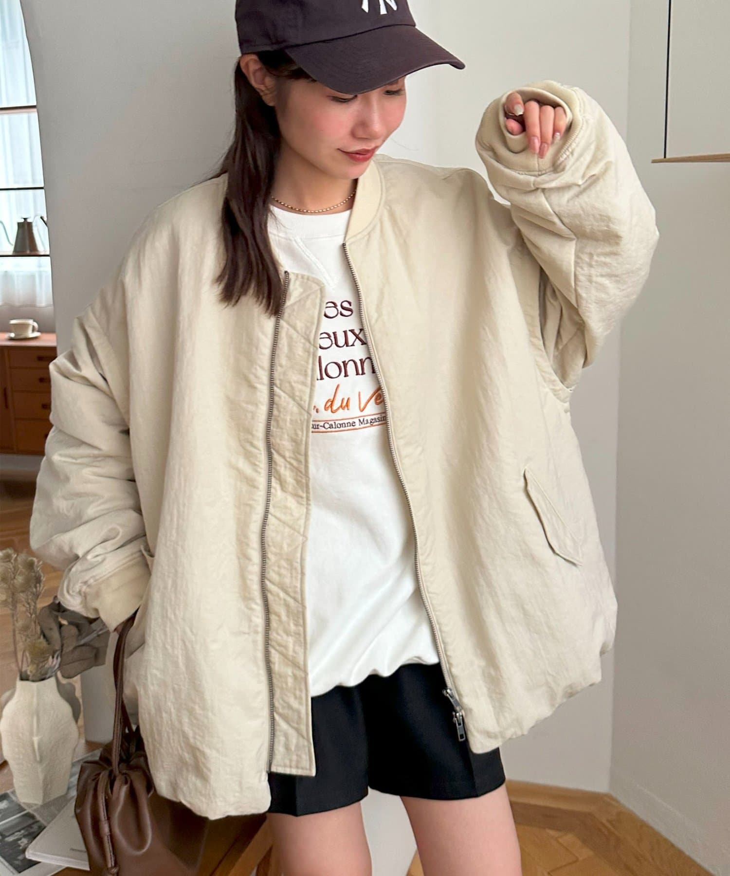 袖は取り外し可能で、ボンバーブルゾンとしてだけではなくベストとしても着まわしが可能!コーデの幅が広がります〇