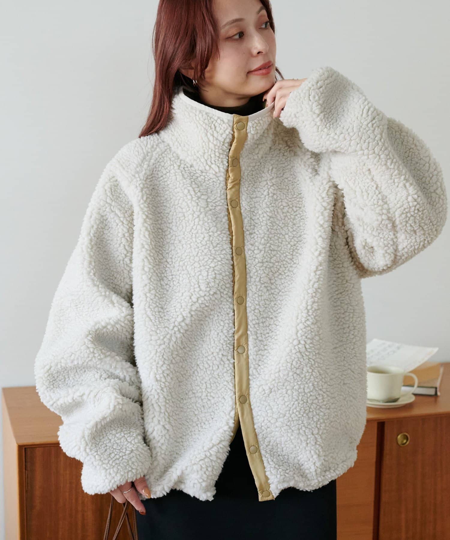 ・ボア面は柔らかく肌さわりの良い生地感、ナイロン面はさらっとしたカジュアルな素材感