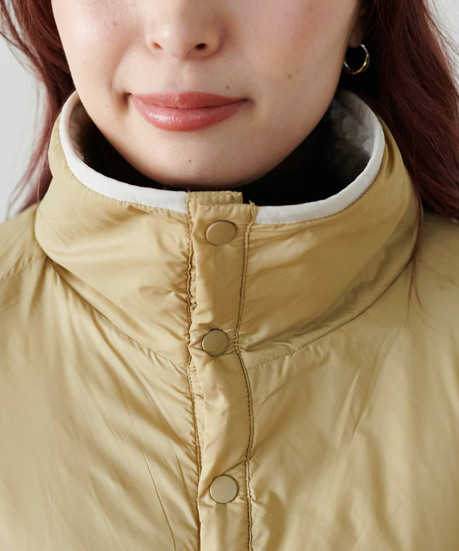 157cmレディーススタッフ:ボア素材の方を表で着ると柔らかな可愛らしさもある雰囲気になり、ナイロン側をメインに着るとカジュアル感が増します!