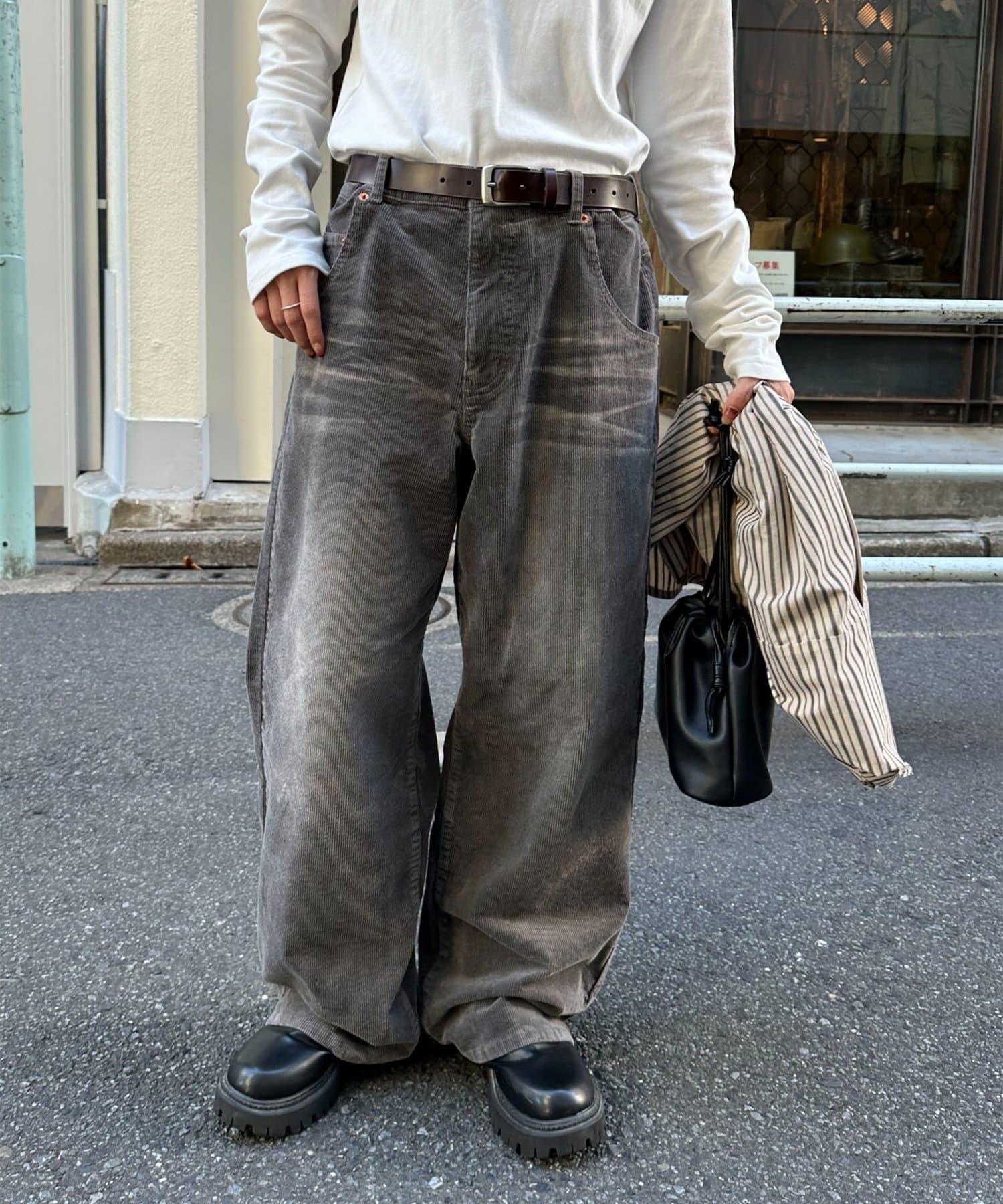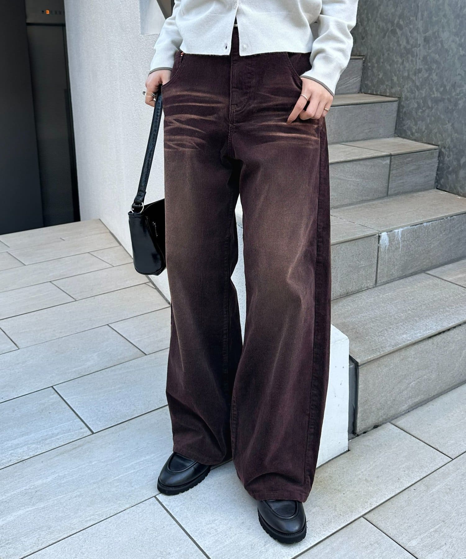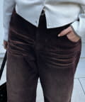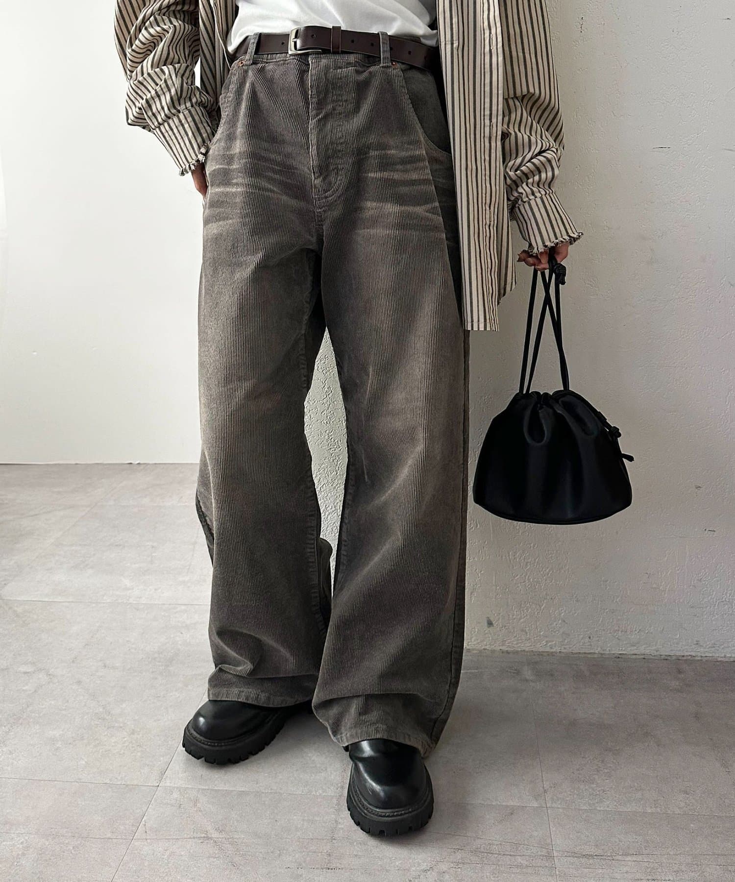 一見シンプルなデニムにも見えますが、コール生地で暖かみのある雰囲気の素材でさり気なくシーズンムードを高めてくれます◎