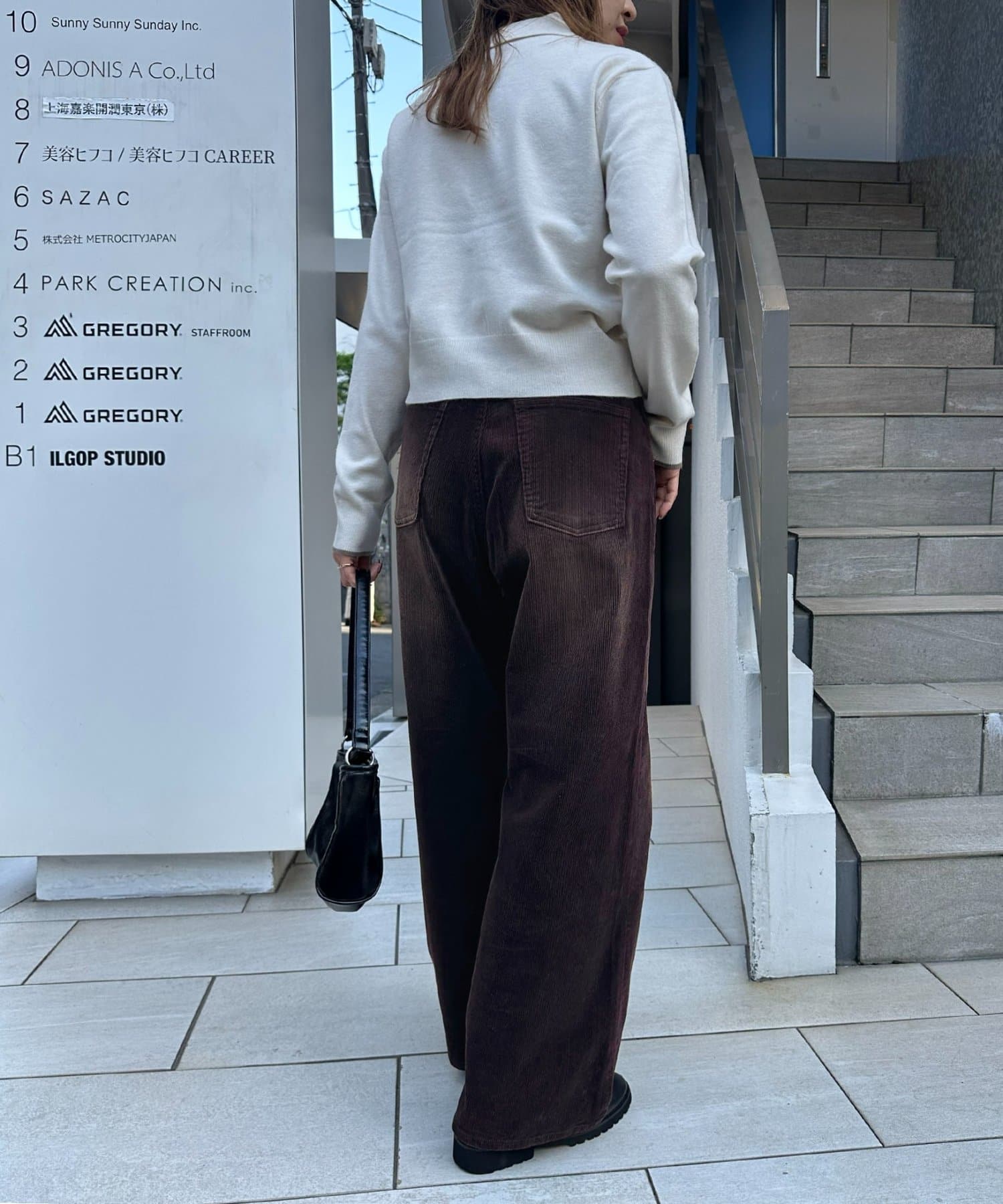 トップスはコンパクトな着丈のアイテムを合わせるのがおすすめ◎