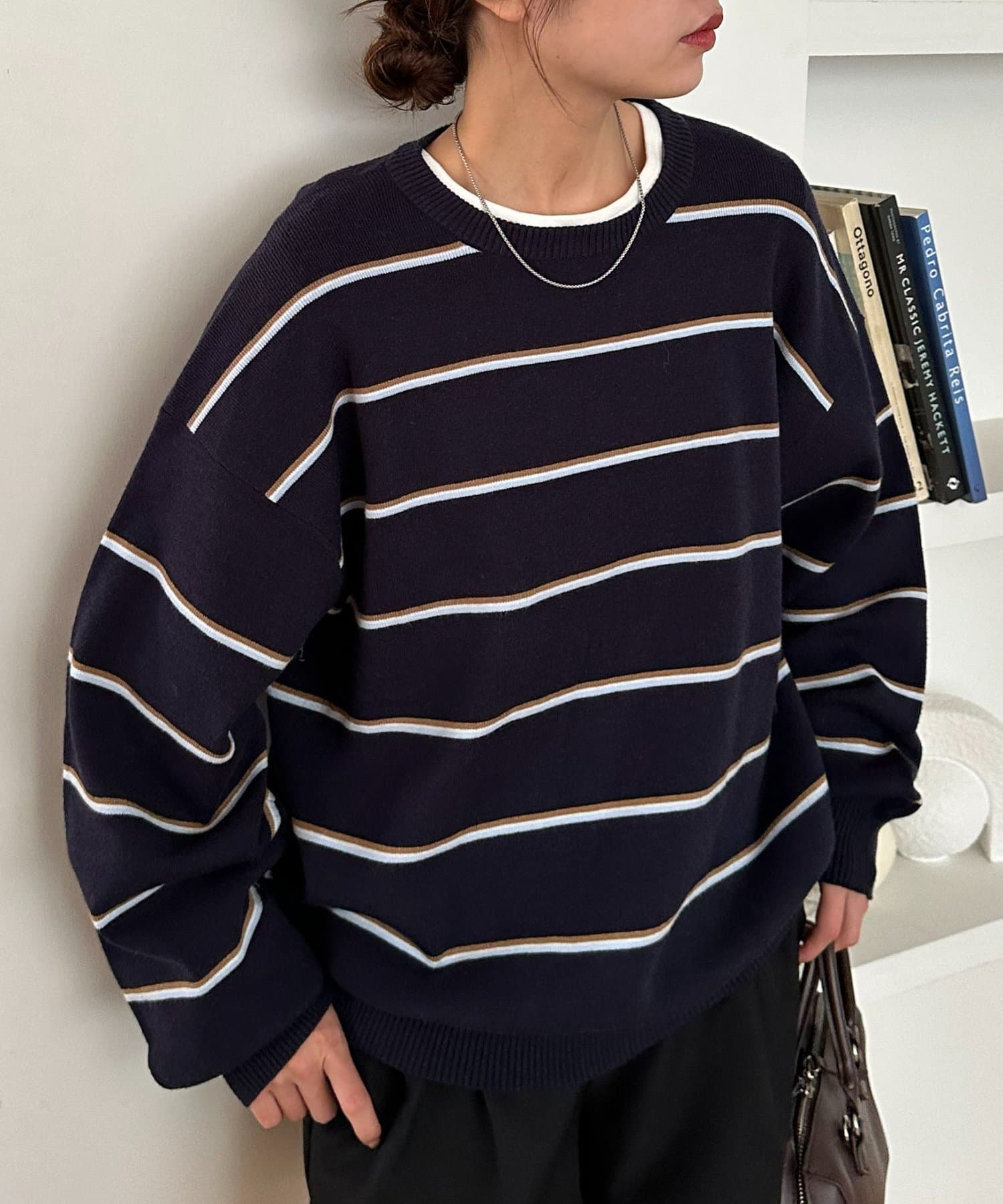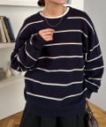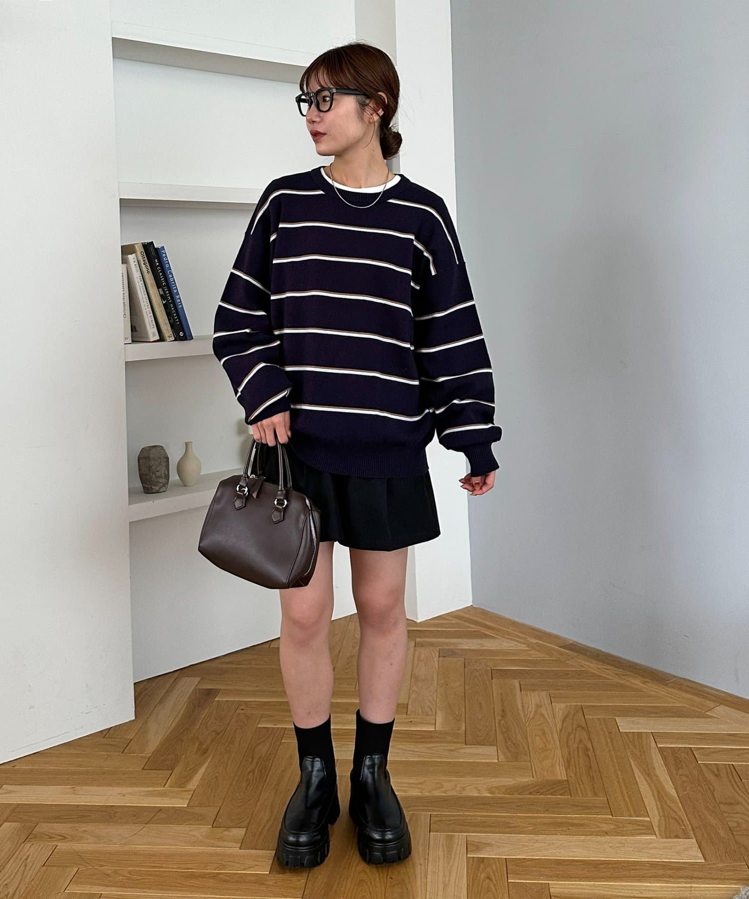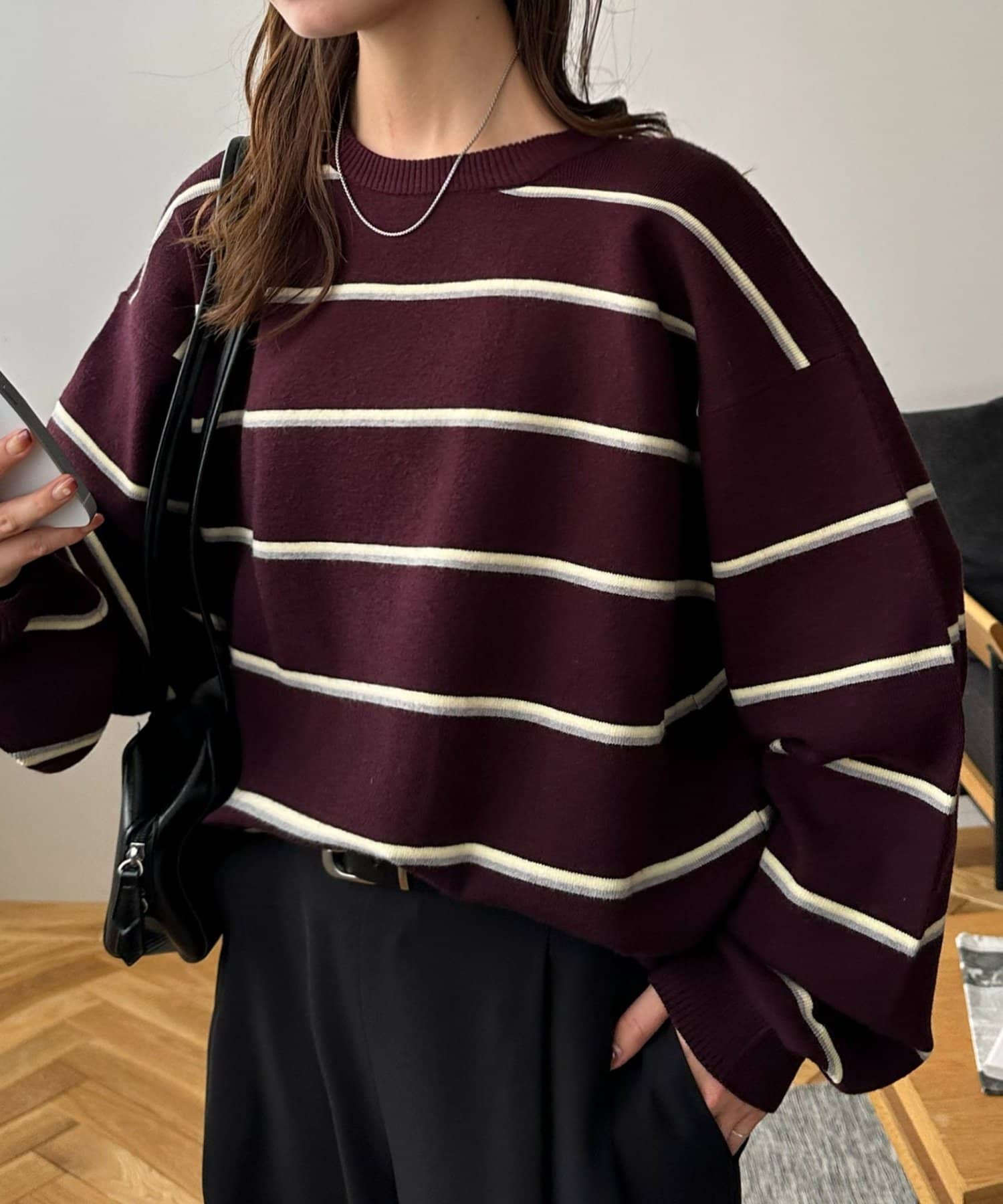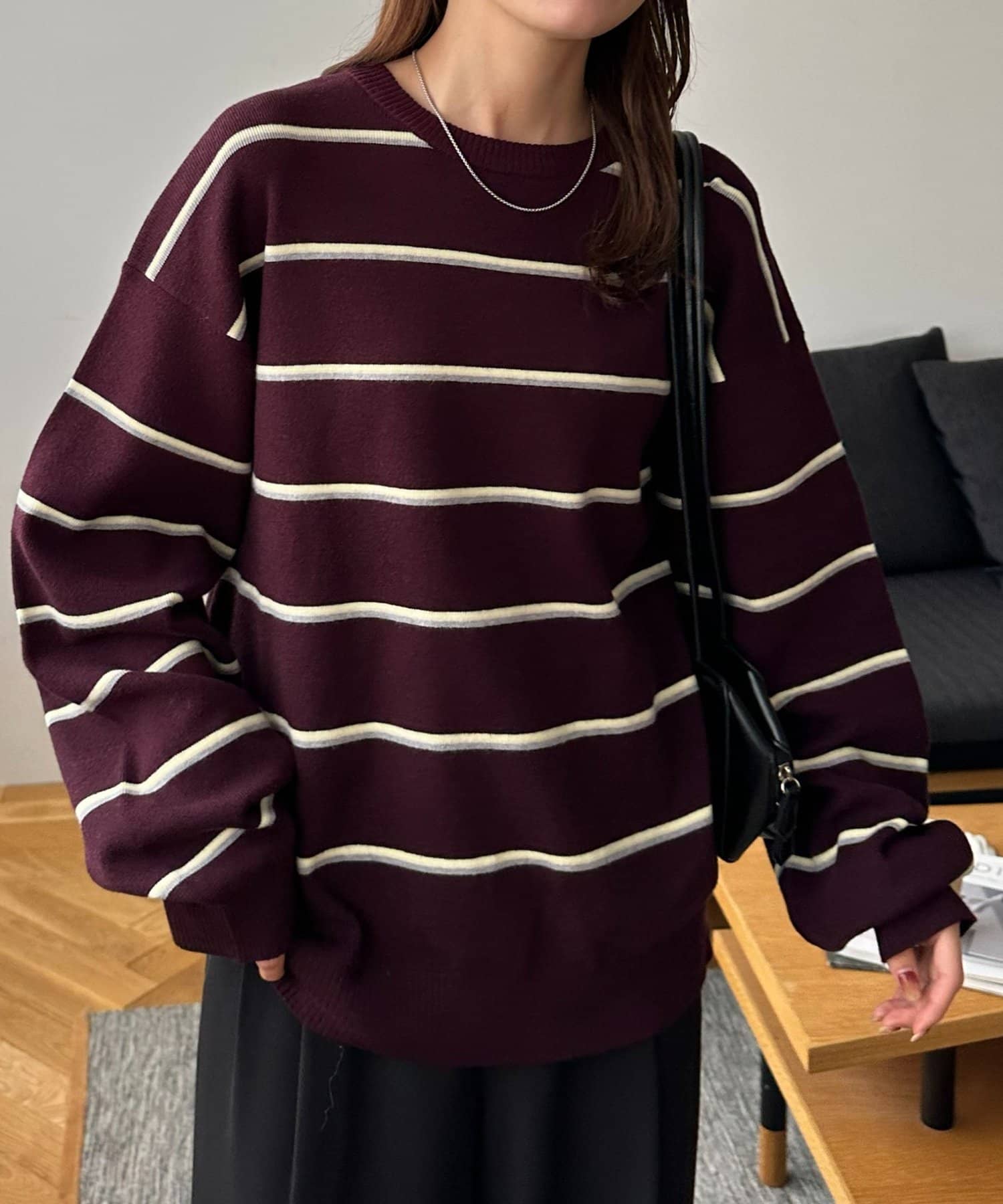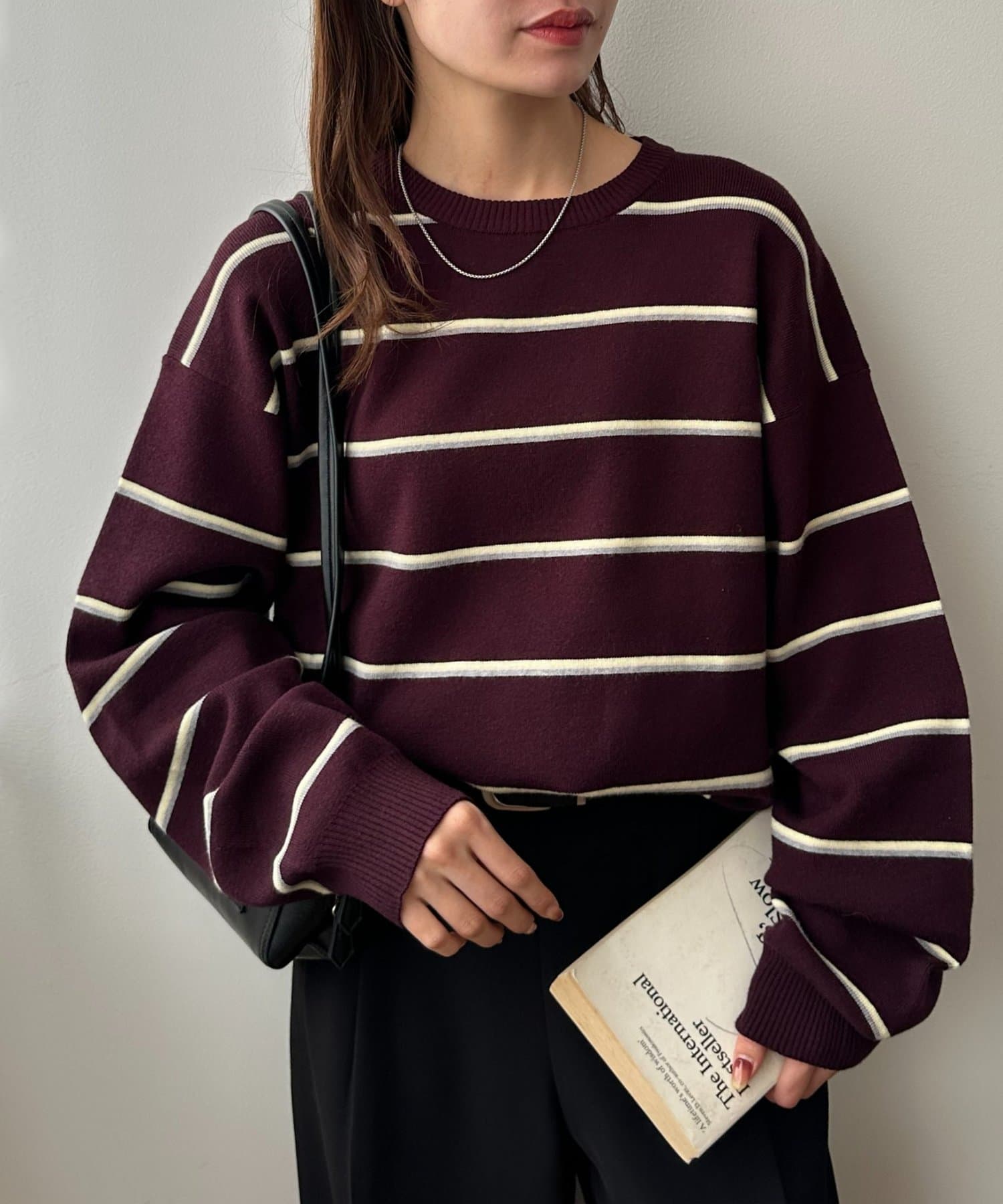目を惹くボーダーニットは、2色のラインでボーダーをデザインしたことでこなれたおしゃれな印象に!