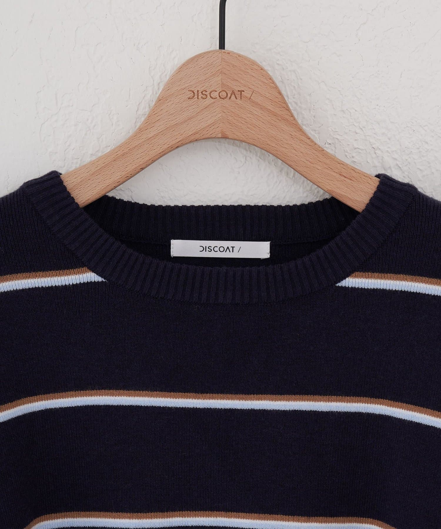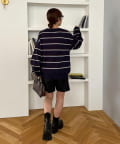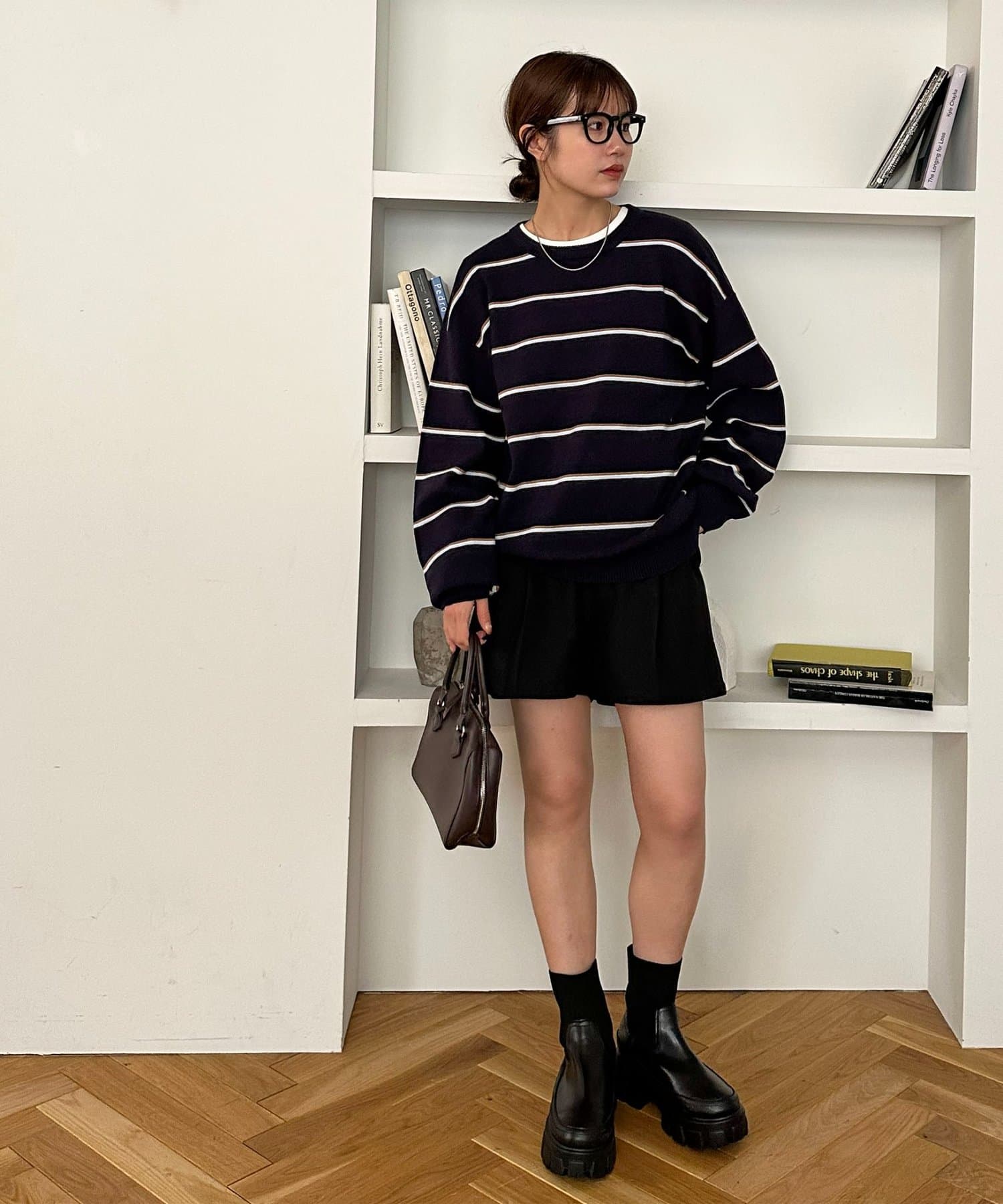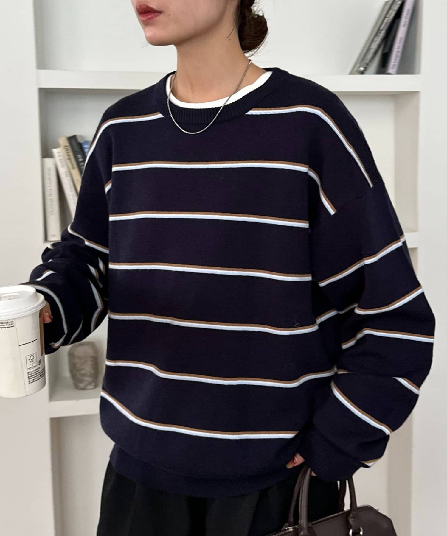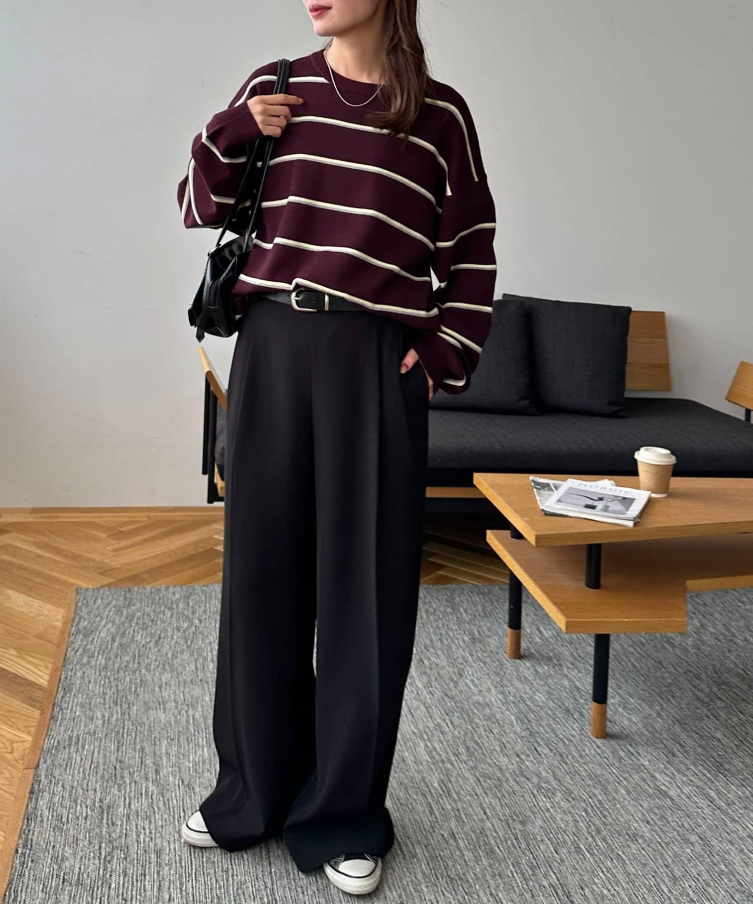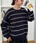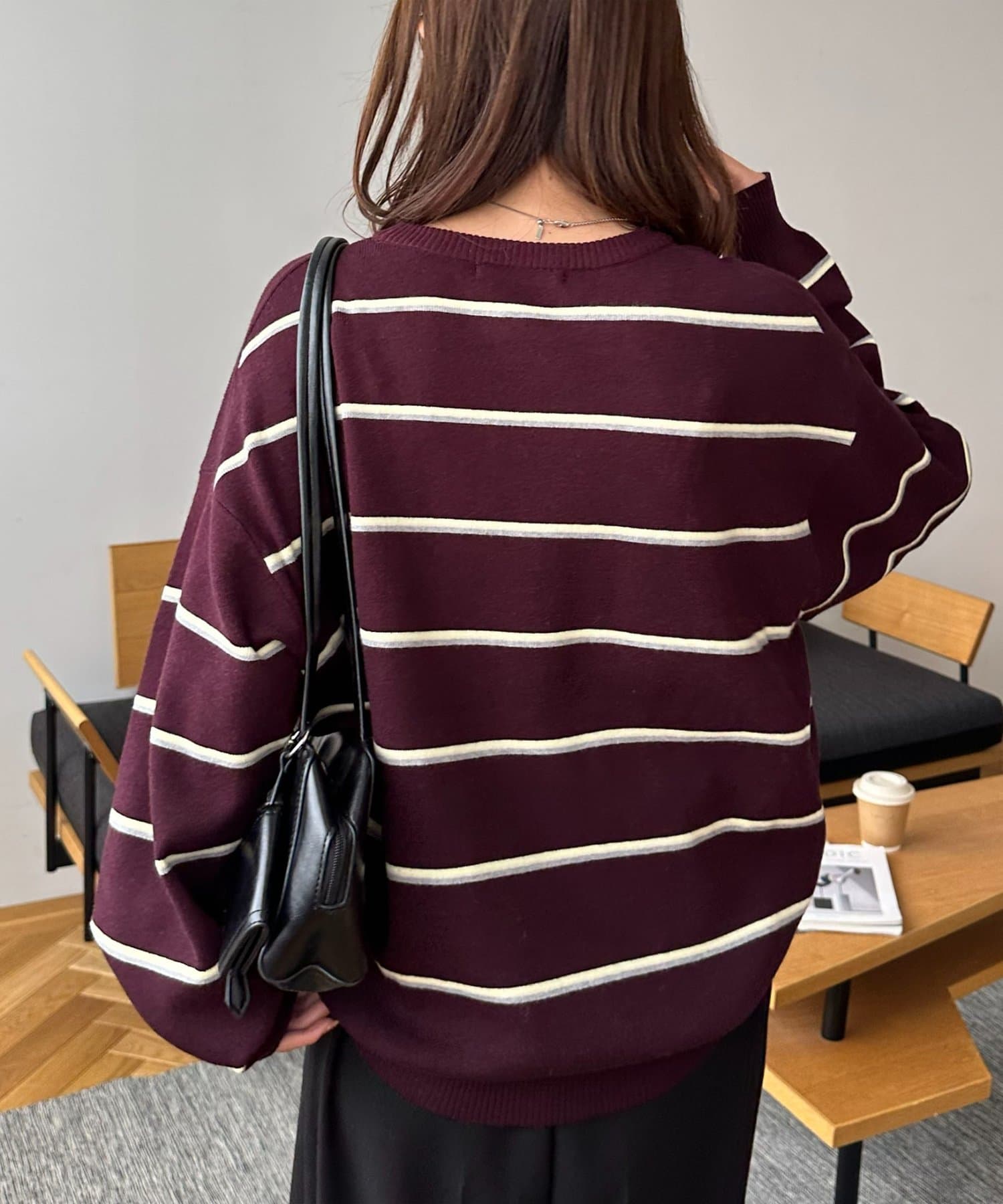 目を惹くボーダーニットは、2色のラインでボーダーをデザインしたことでこなれたおしゃれな印象に!