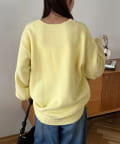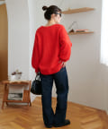 160cm レディーススタッフ:お尻が少し隠れるくらいの着丈で、オーバーすぎず程よいゆるさがあります。Vネックの開きが顔まわりをすっきり見せてくれるので、カジュアルでも大人っぽく着られます。デニムやスラックスでシンプルにまとめたり、シャツをレイヤードしてこなれ感を出すのも◎