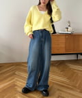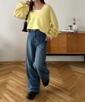 ボトムはワイドパンツやデニムでゆるっと合わせるのがおすすめ♪1枚で主役になる存在感ながら、レイヤード次第でロングシーズン着回せます◎