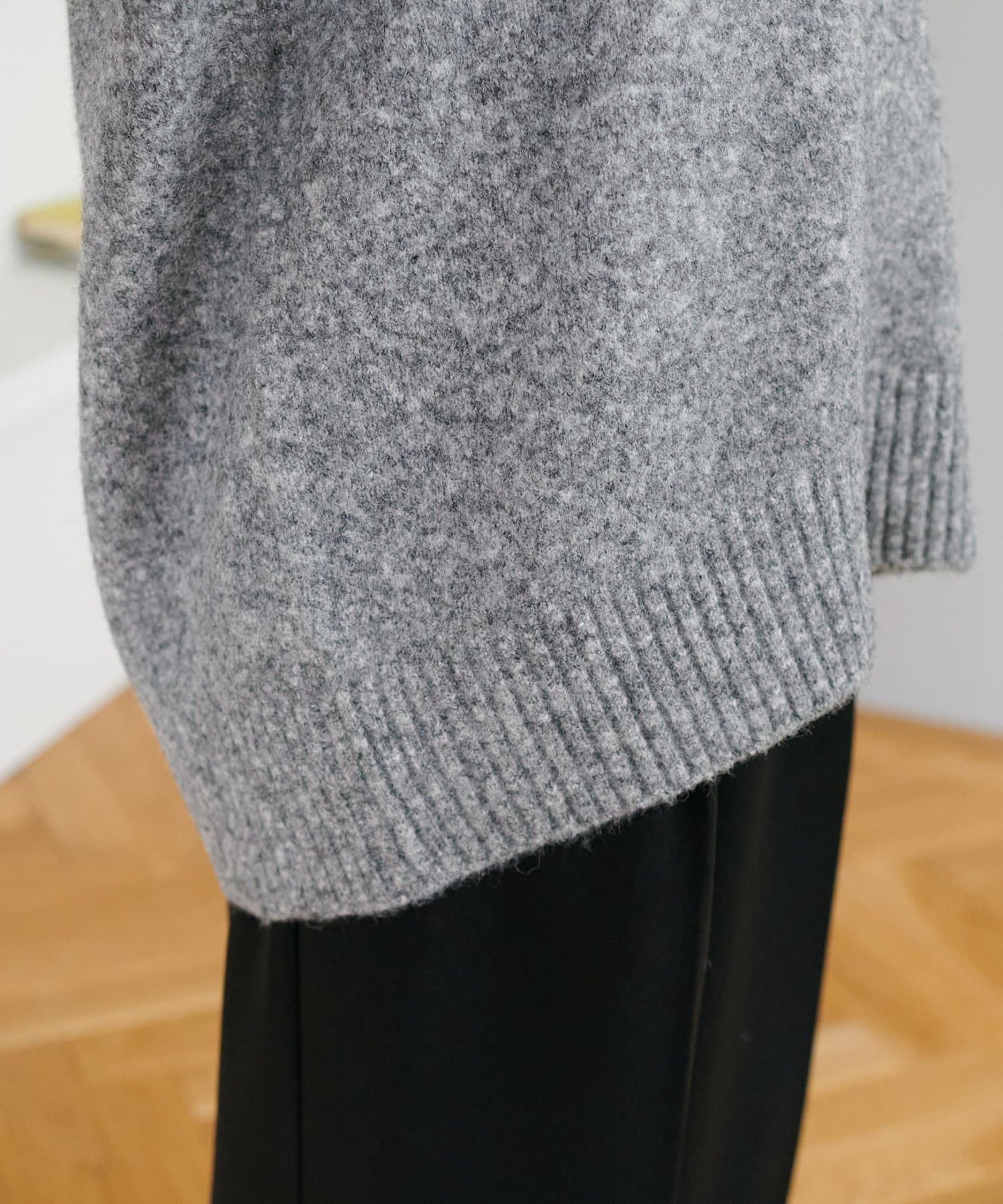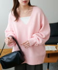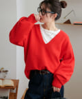 毛足のあるシャギー素材が柔らかく、シンプルながら存在感のあるVネックニット。