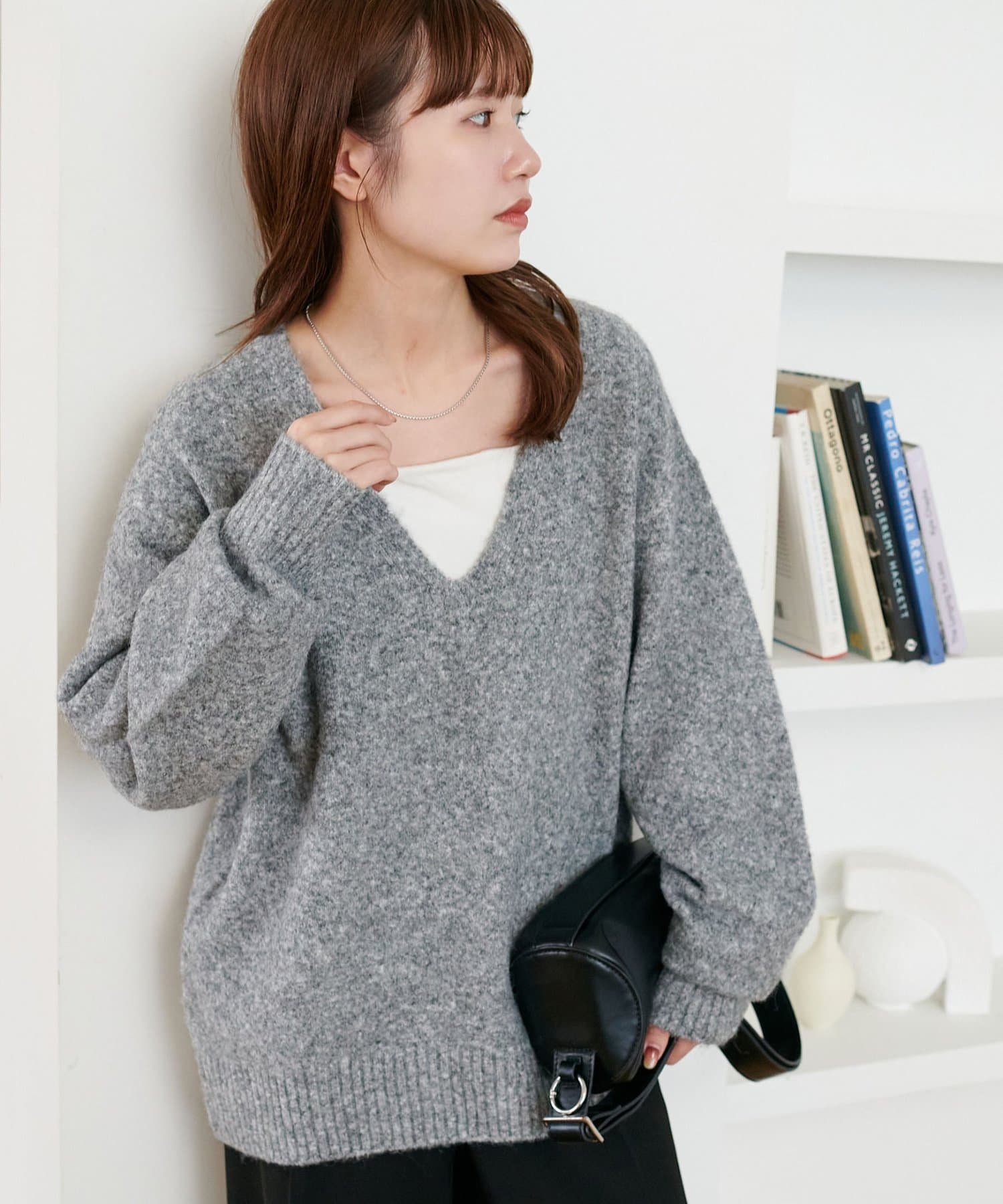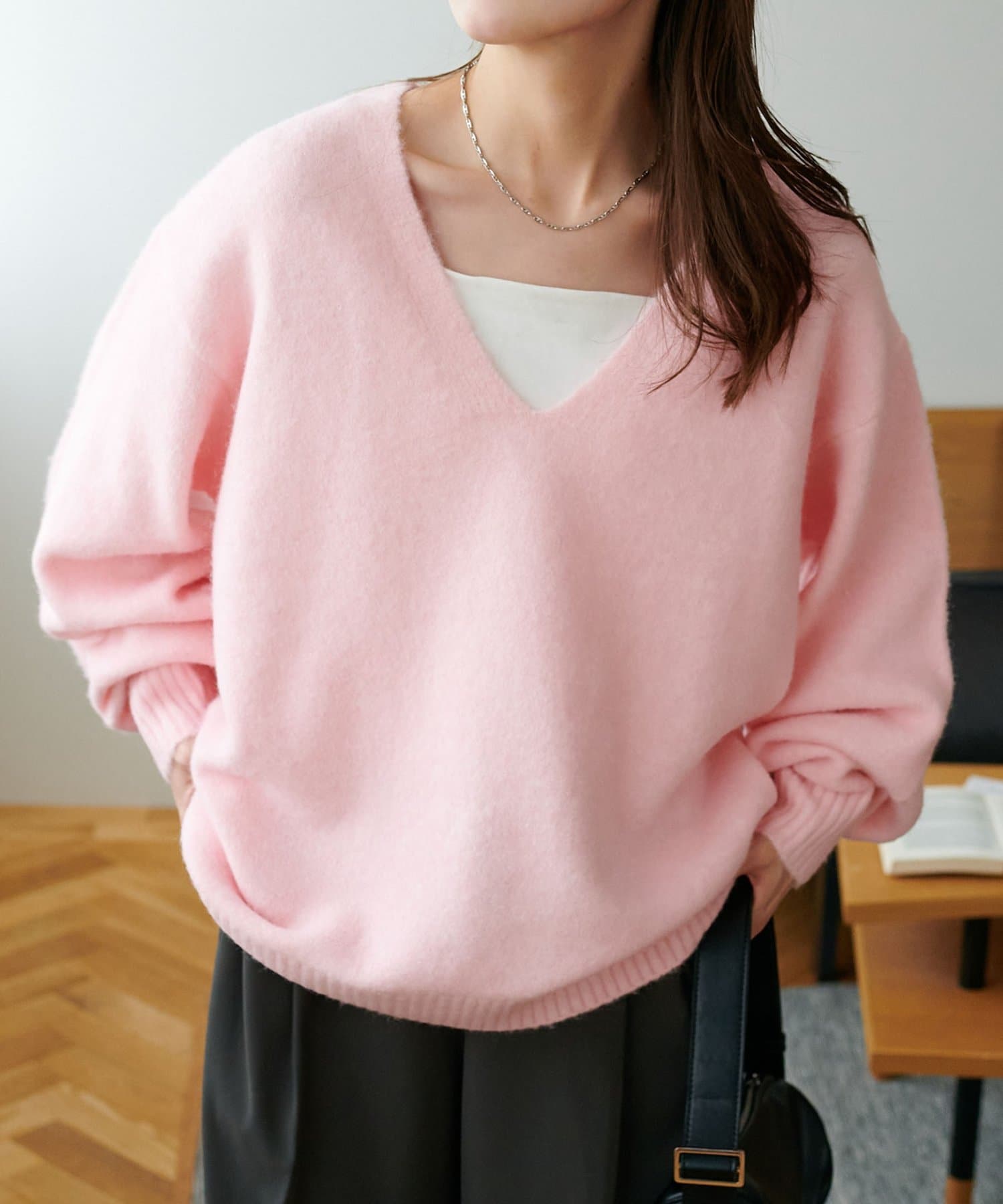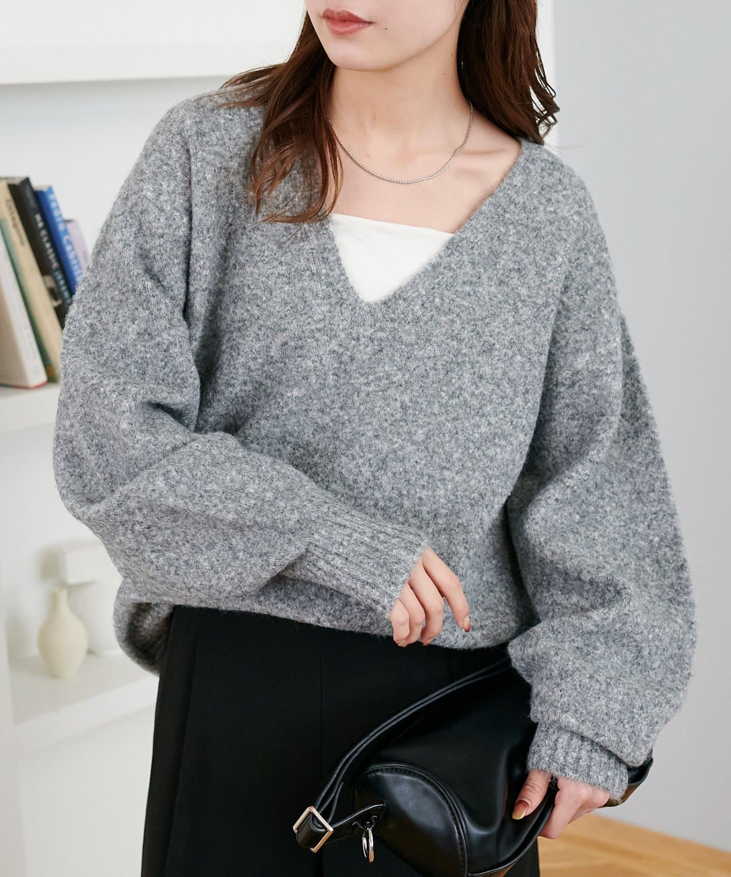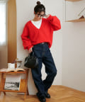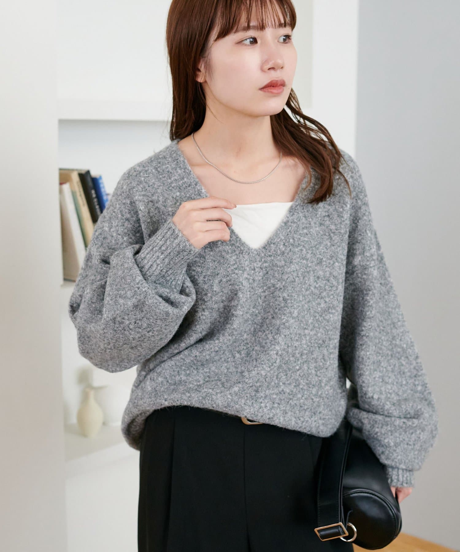 ふんわりシャギーが包み込む、抜け感たっぷりの深Vシャギーニット