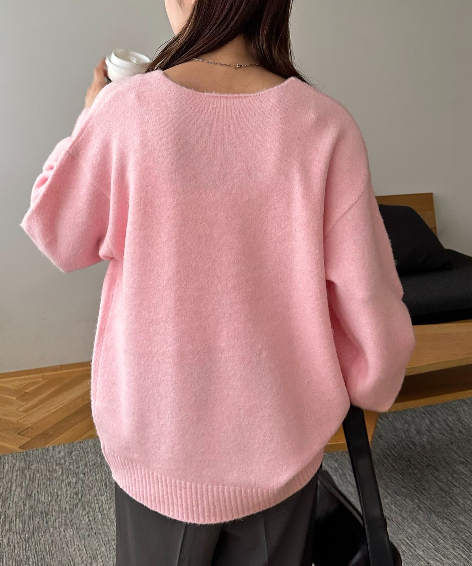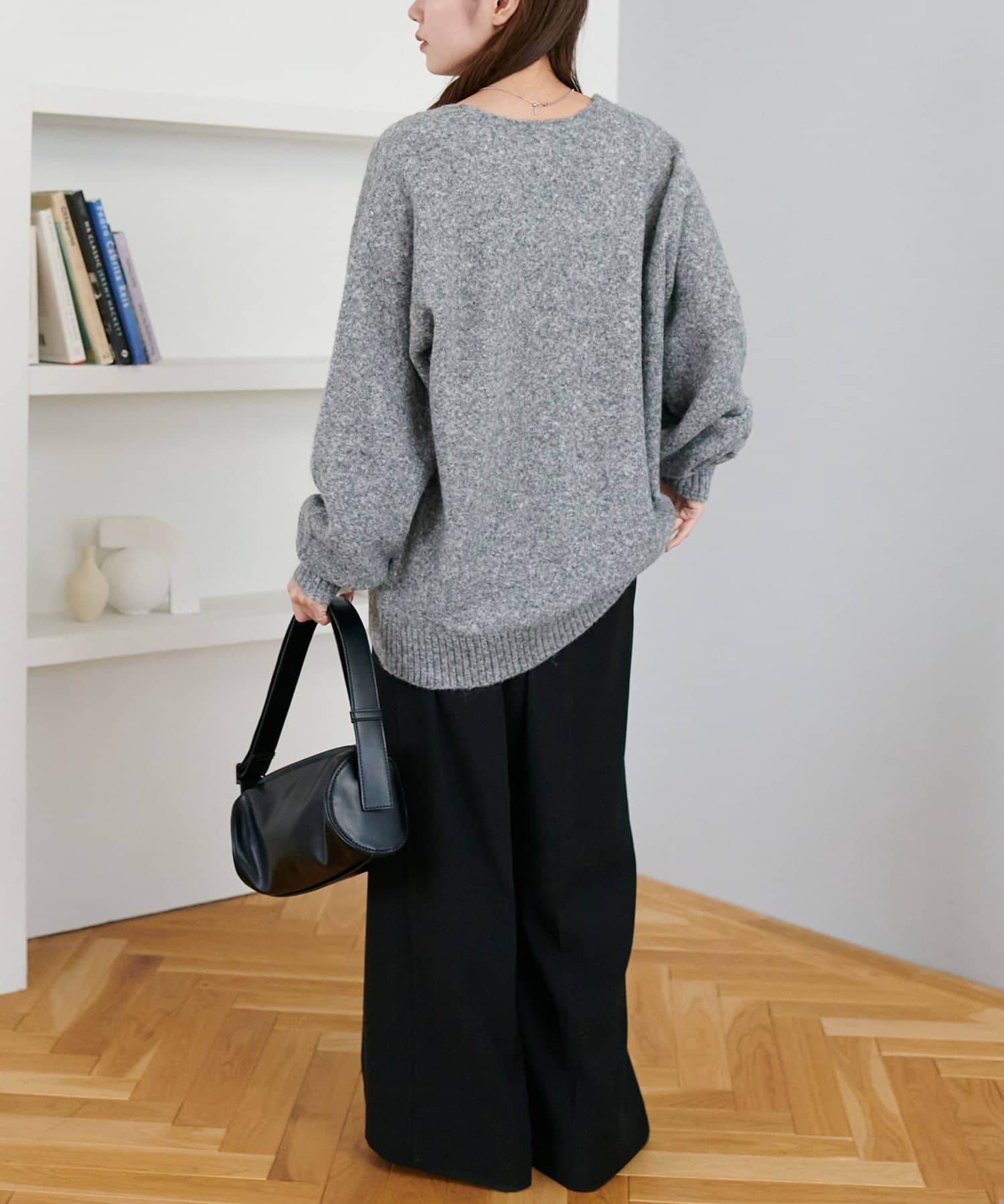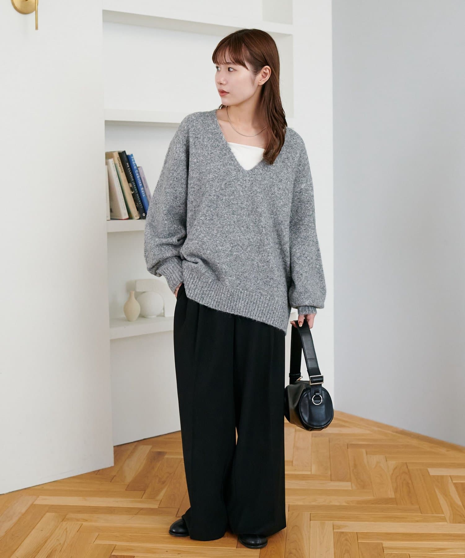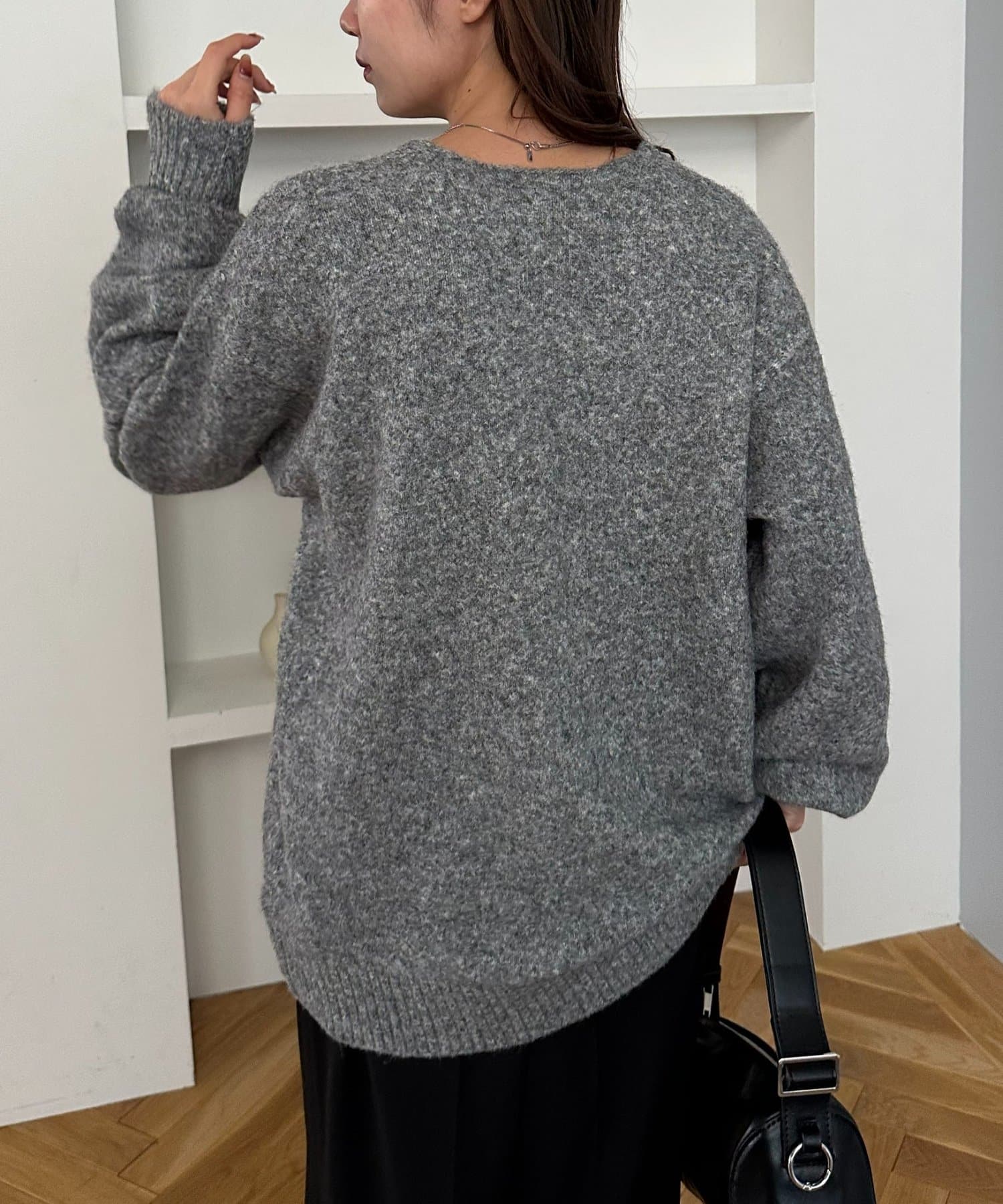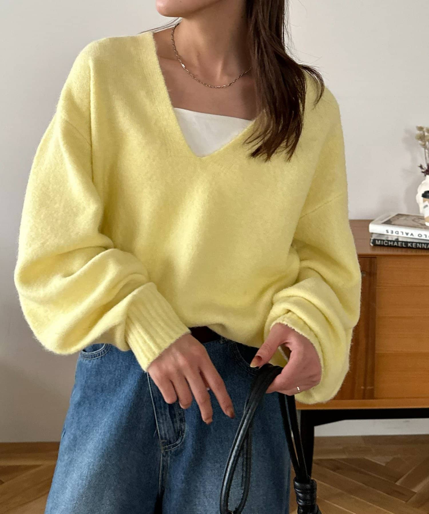 ふんわりシャギーが包み込む、抜け感たっぷりの深Vシャギーニット