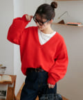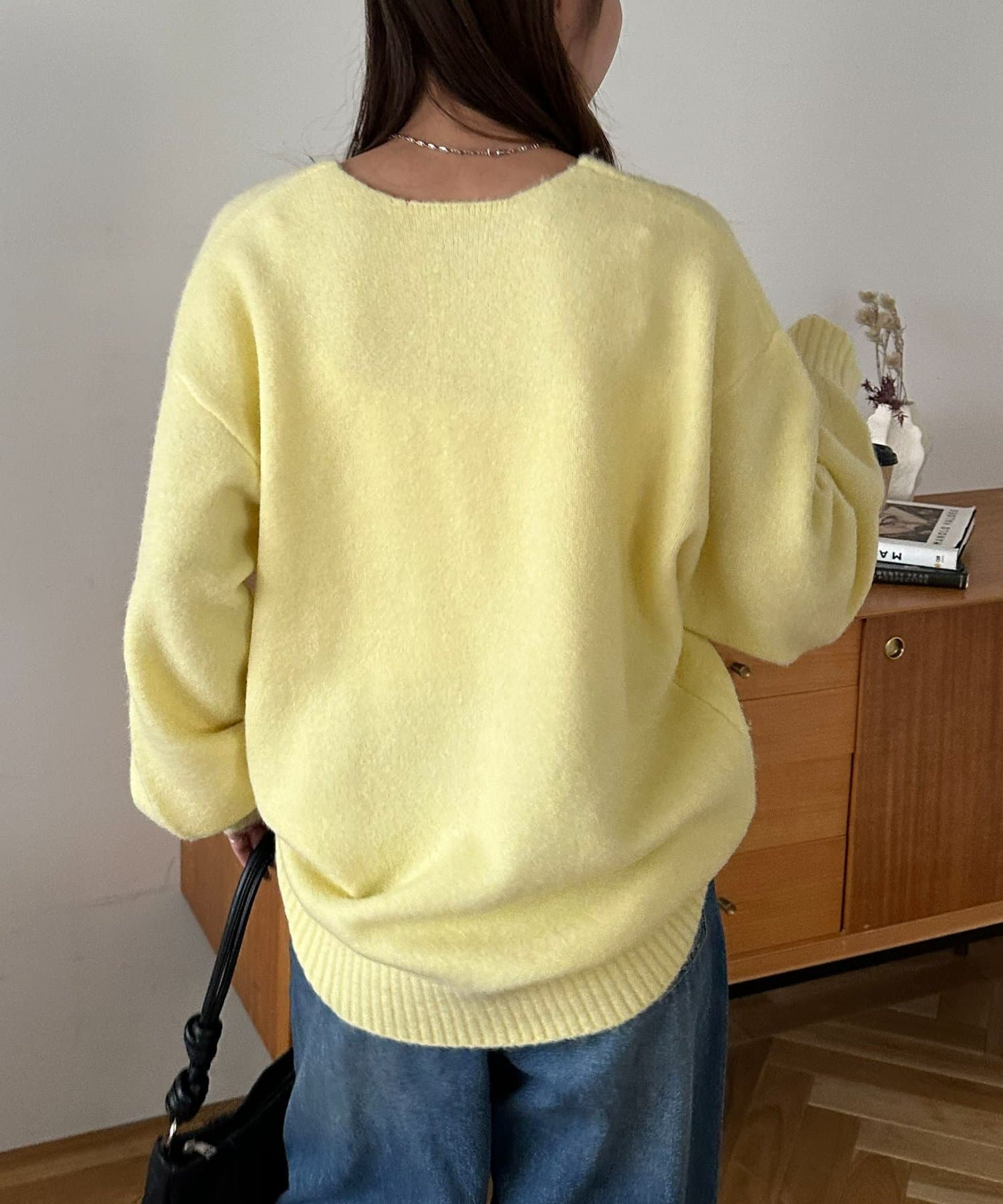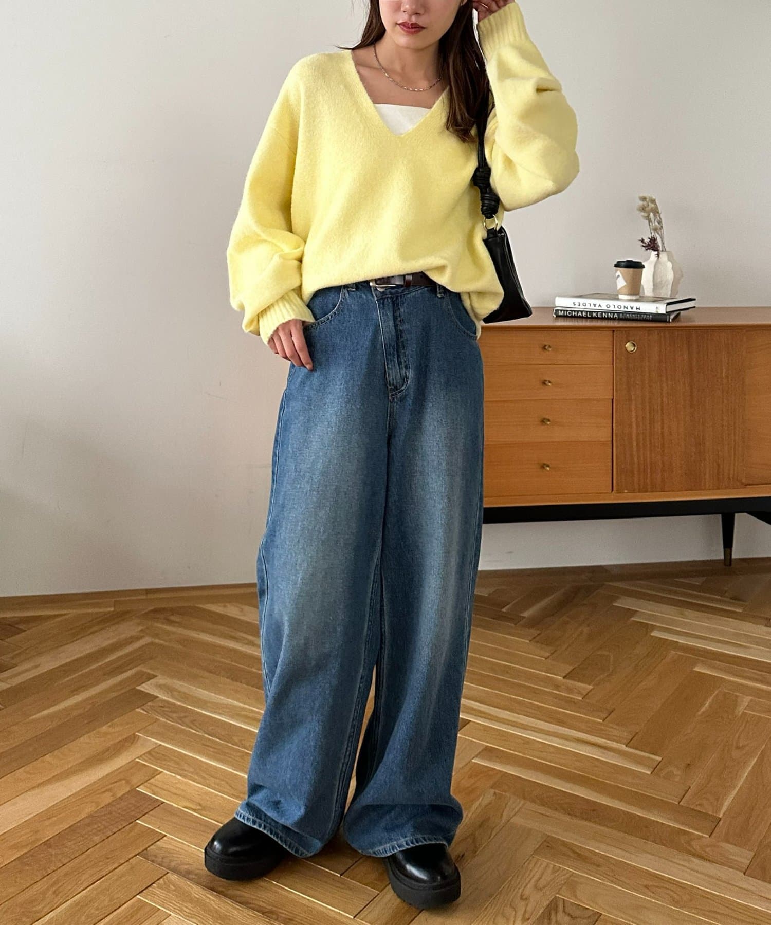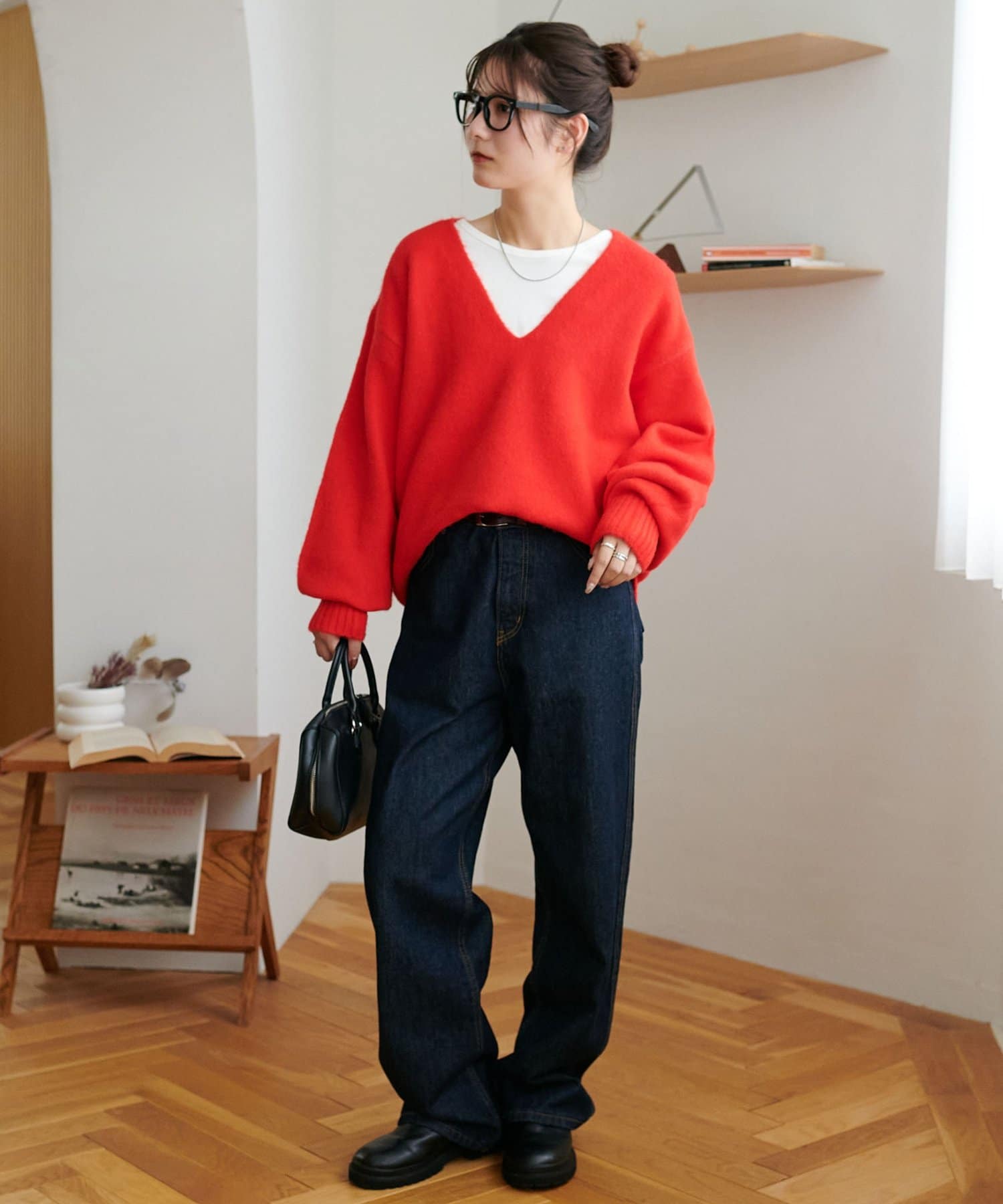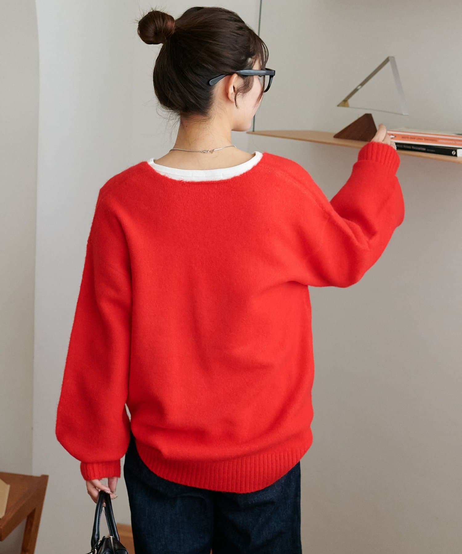 ふんわりシャギーが包み込む、抜け感たっぷりの深Vシャギーニット