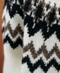 ・顔周りに施された求心柄がシーズンムードを高める求心柄ニット
