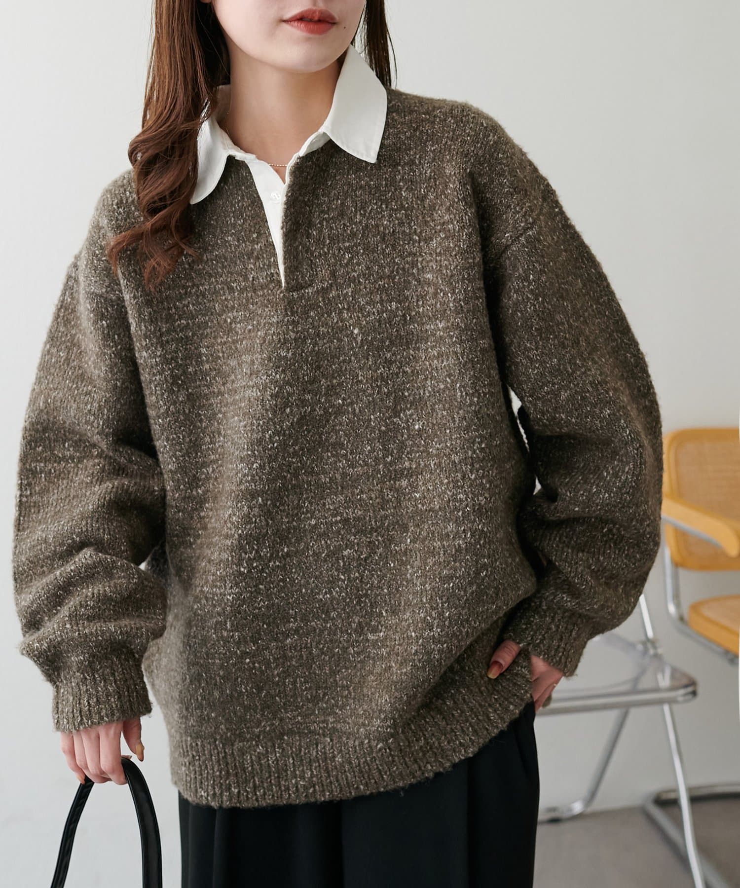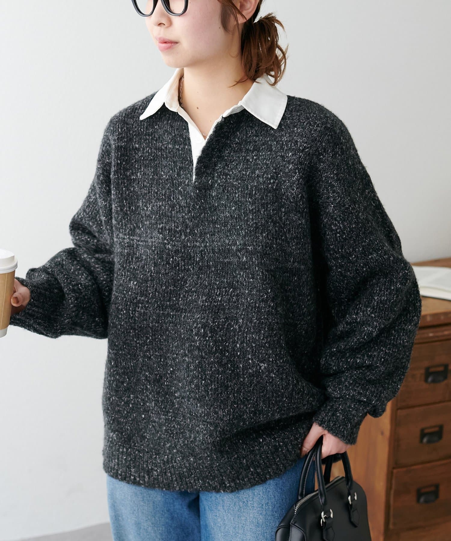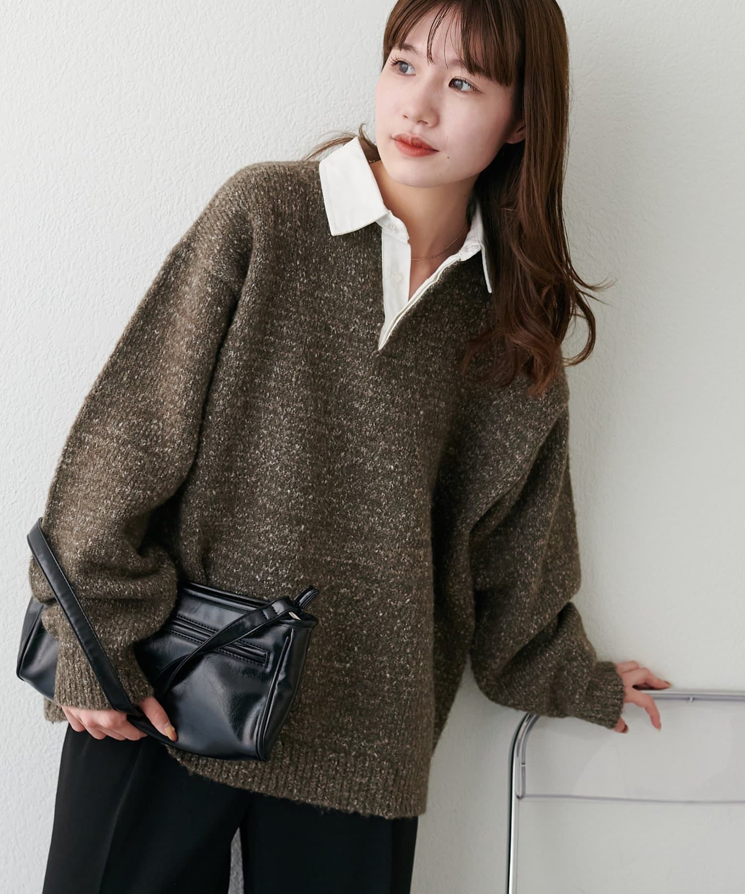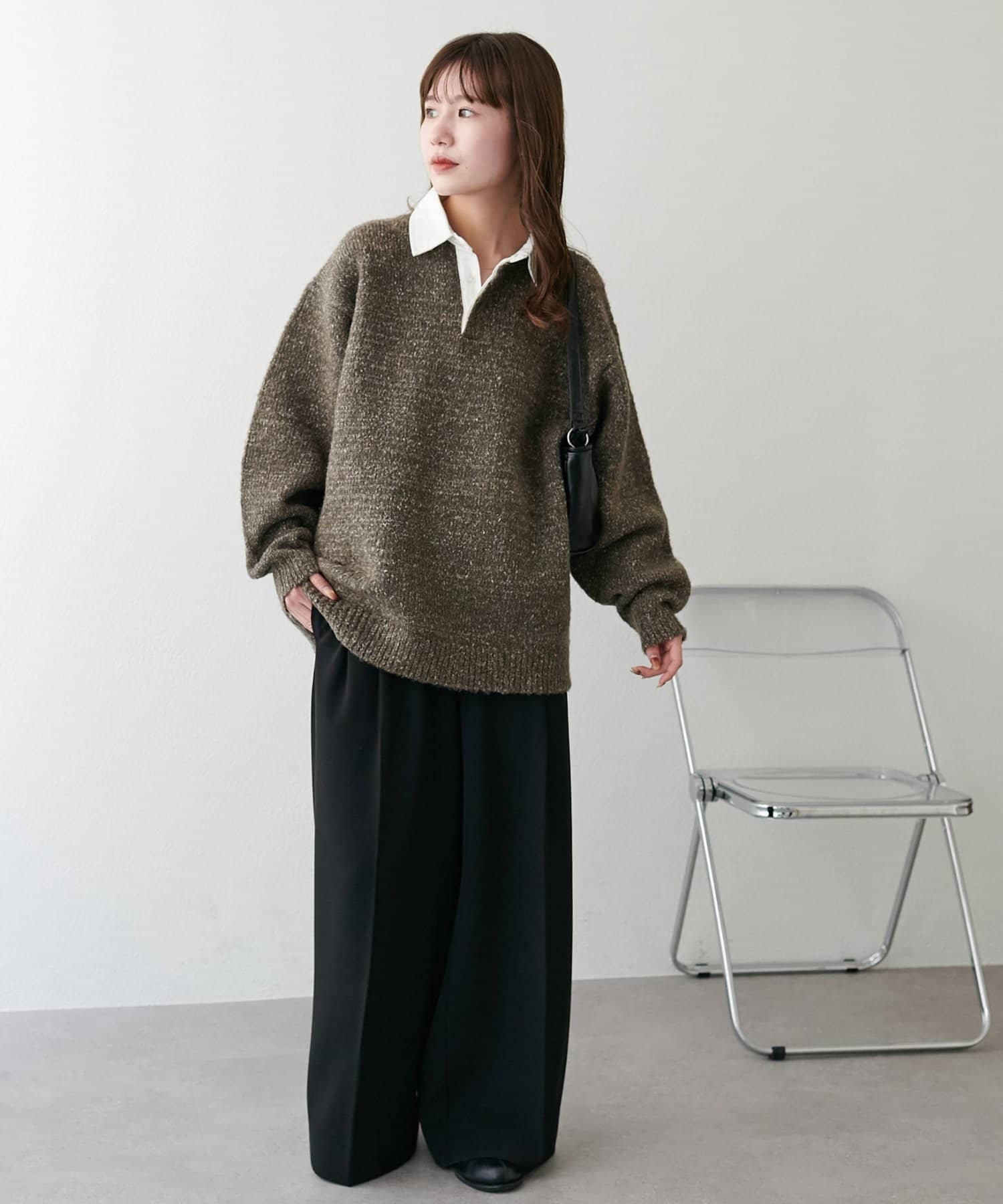 ラガーシャツ風の襟で差がつく、一枚で決まる旬ニット。