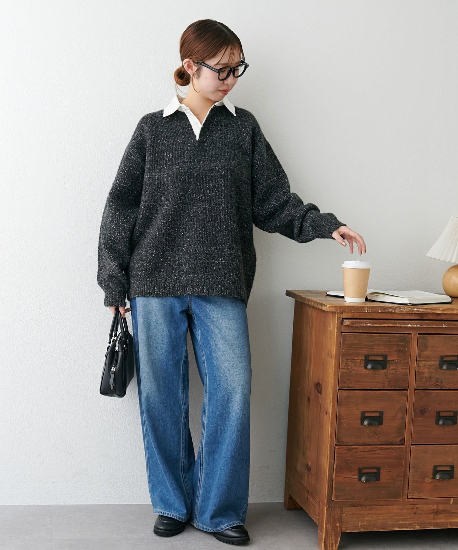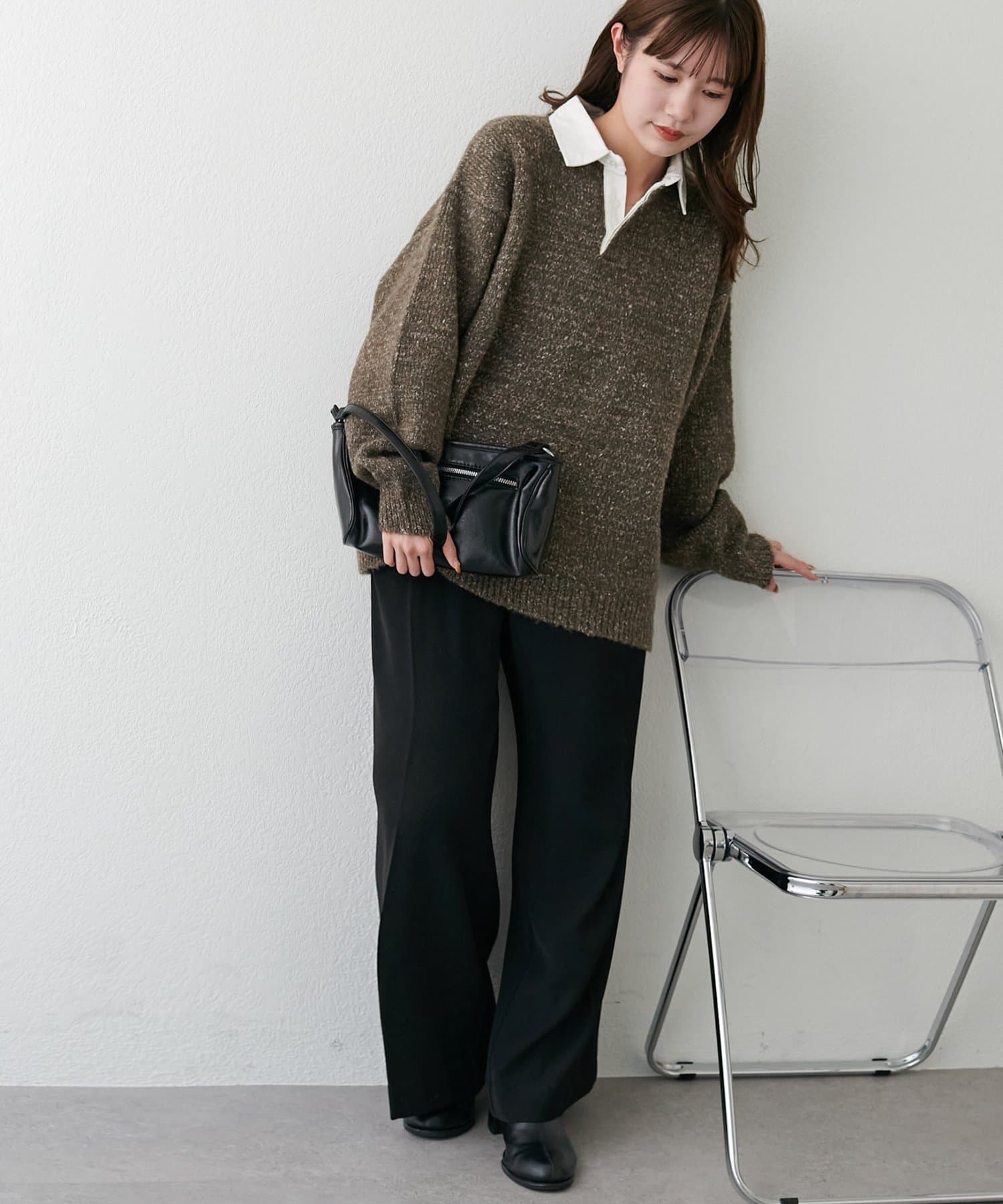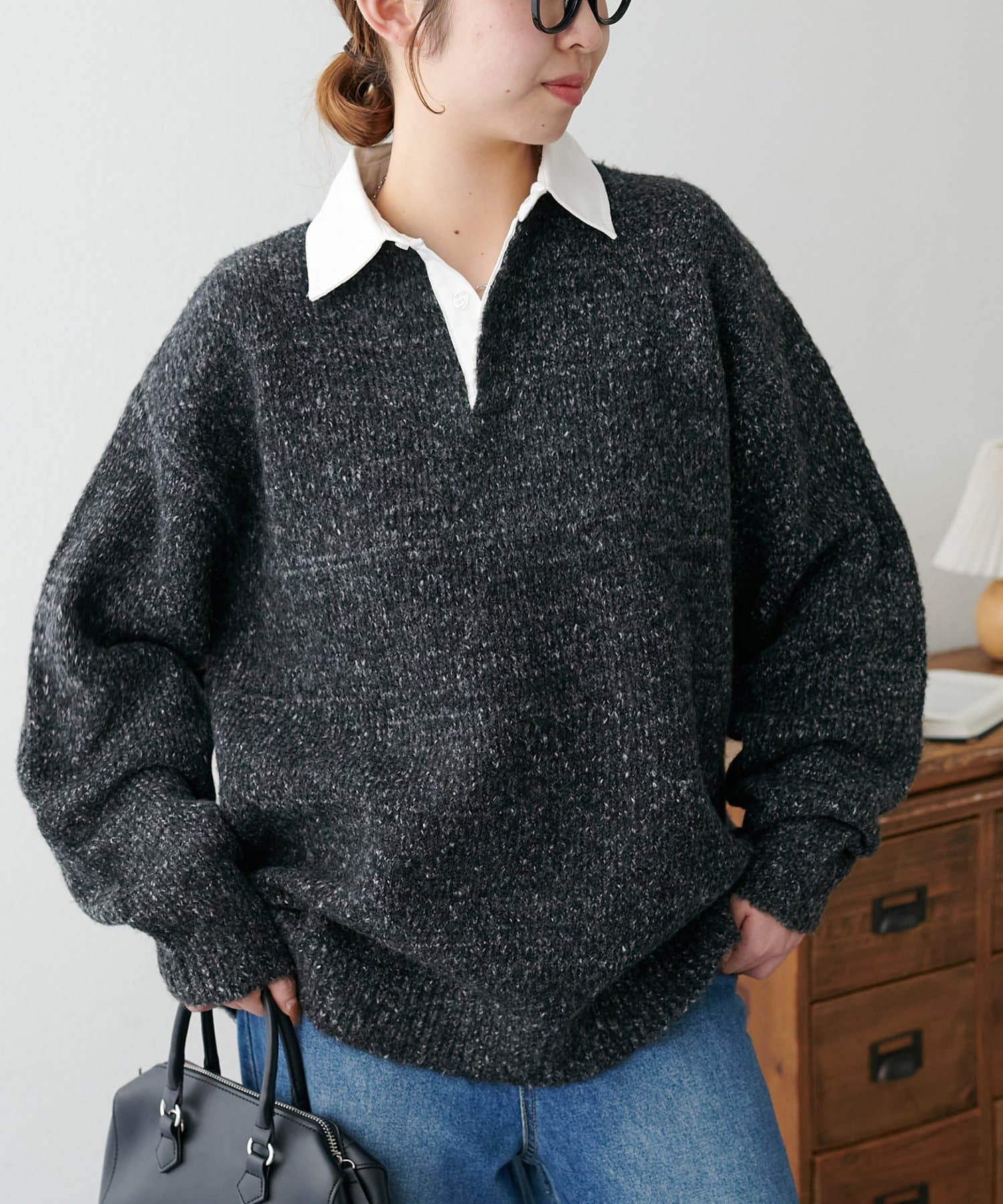 ラガーシャツ風の襟で差がつく、一枚で決まる旬ニット。