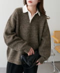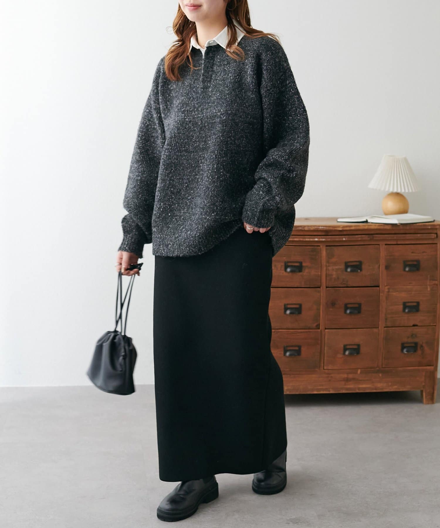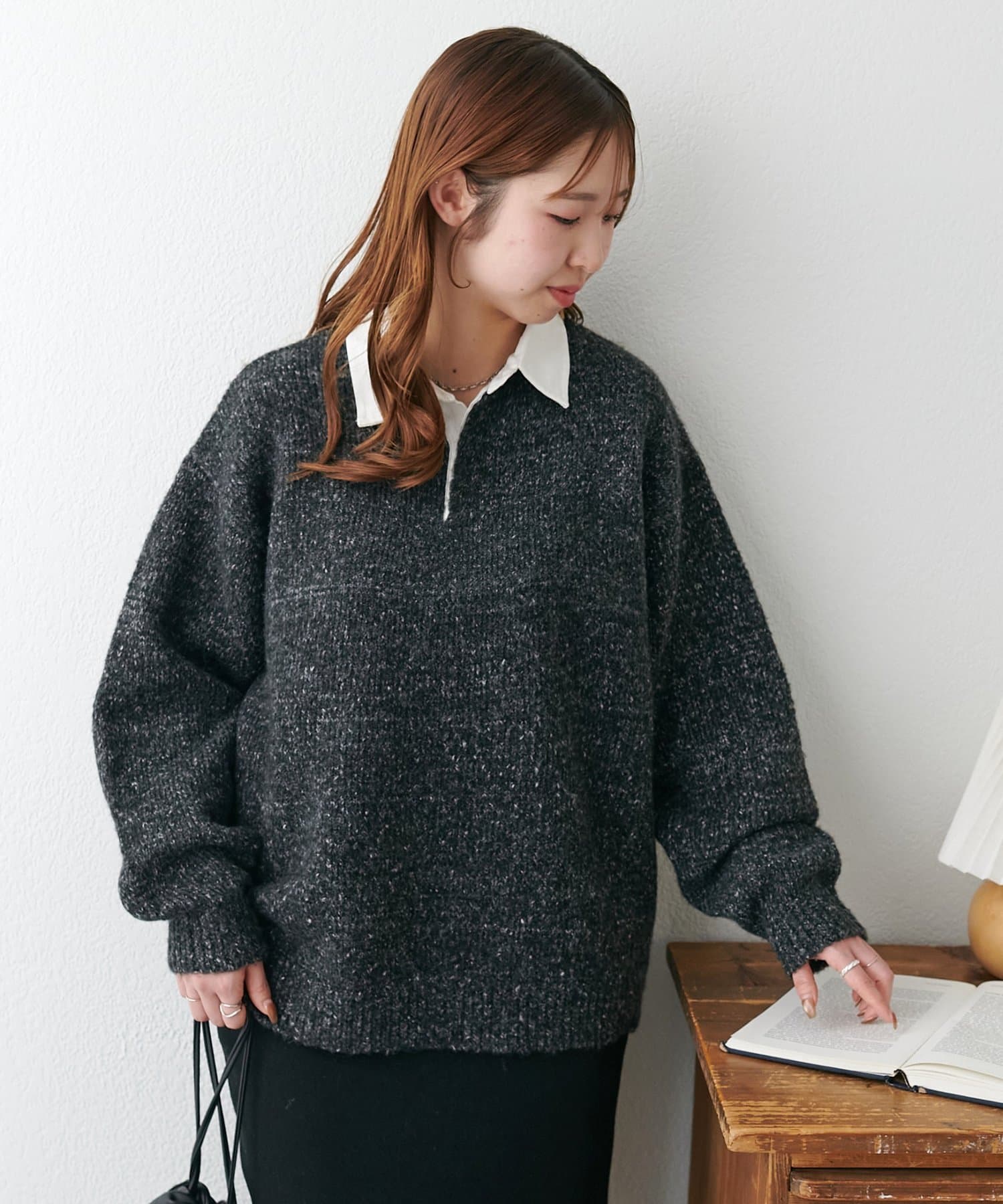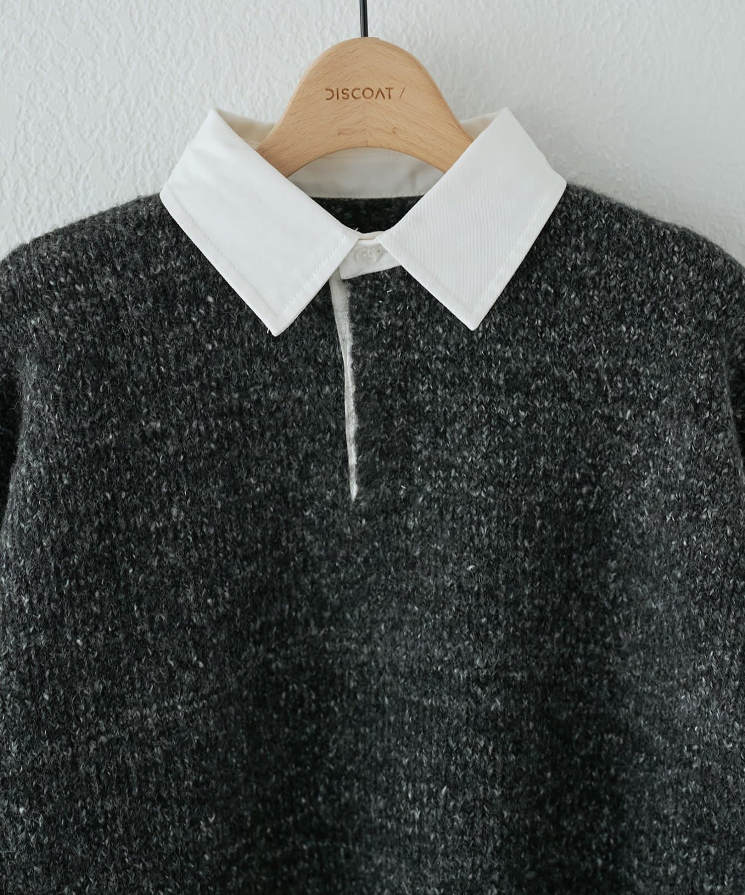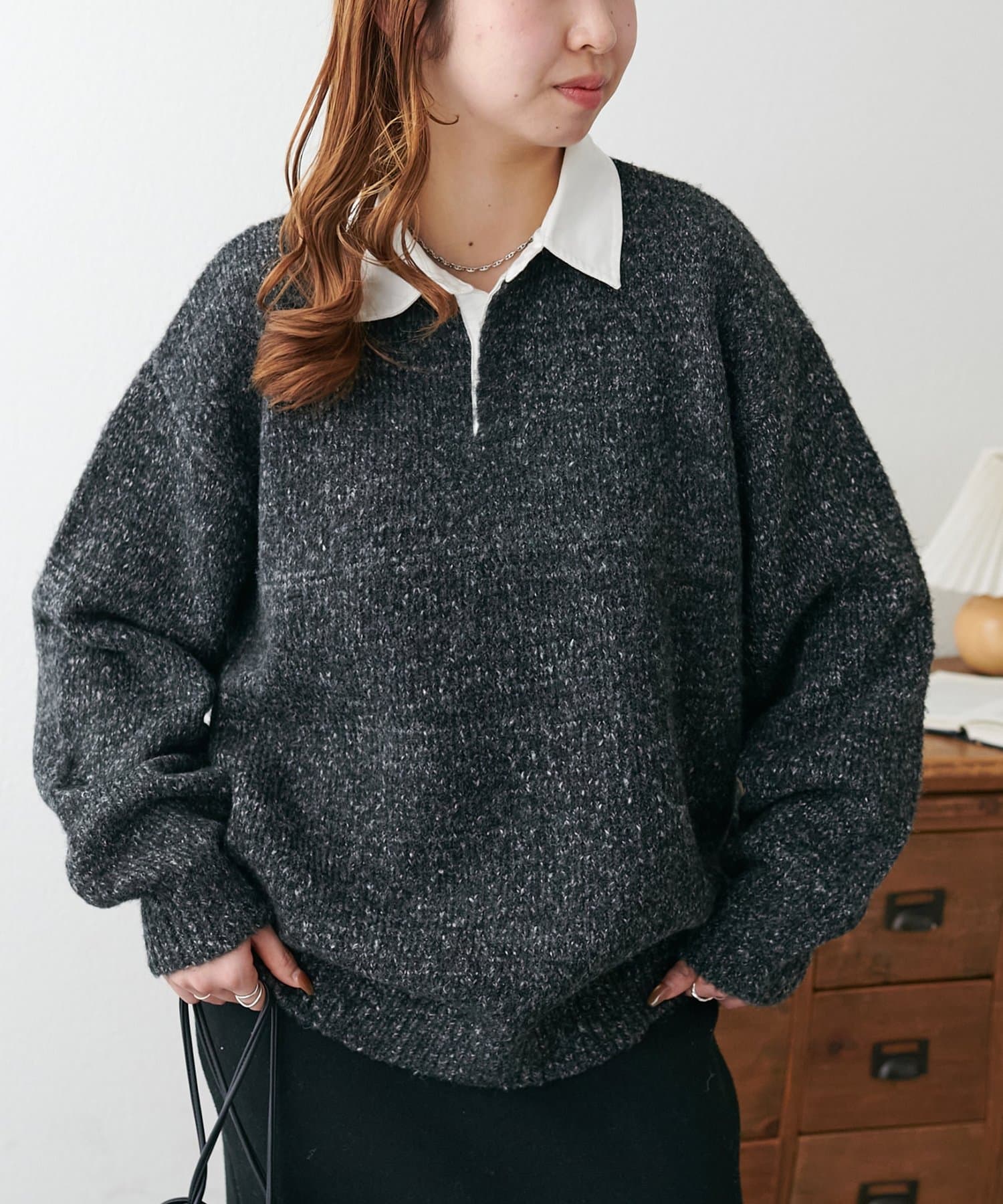 ラガーシャツ風の襟で差がつく、一枚で決まる旬ニット。