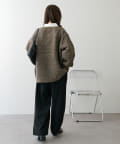 襟と前立て部分を布帛素材で切り替え、カジュアルな中にもきちんと感のある印象に仕上げました。