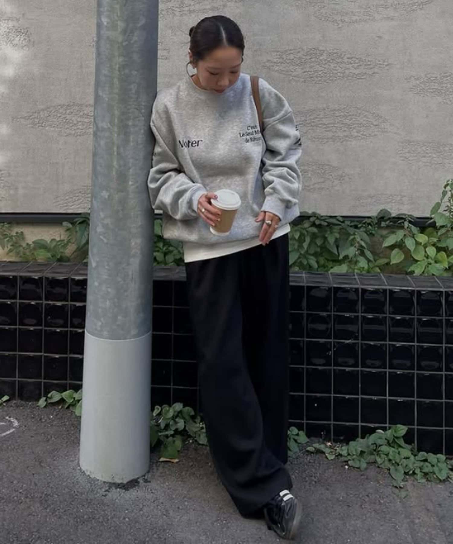 胸元のさりげないロゴ刺繍やロゴプリントがアクセントになり、シンプルながらもこなれ感をプラス。