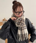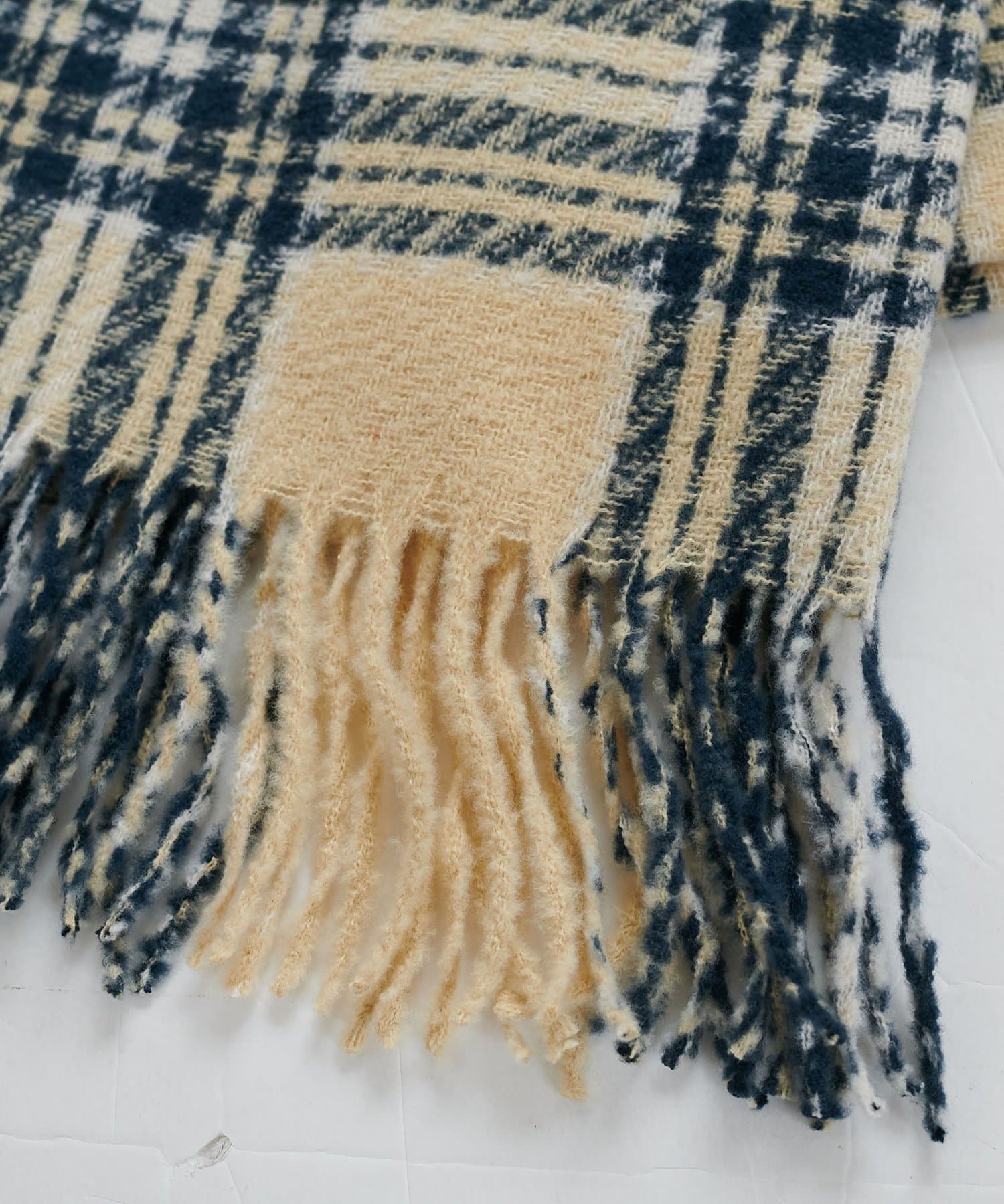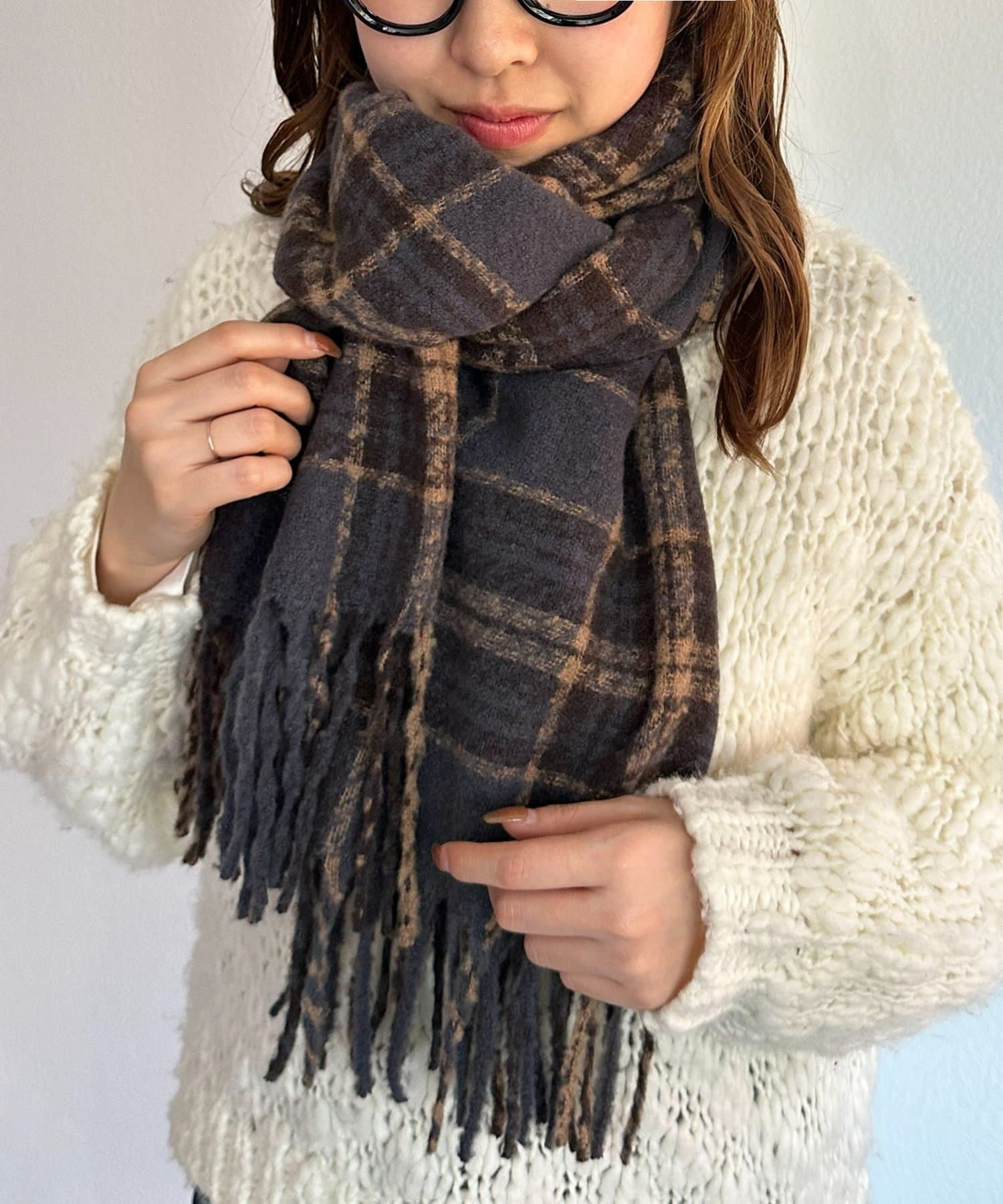 【ユニセックス】ループヤーン縮絨チェックマフラー
