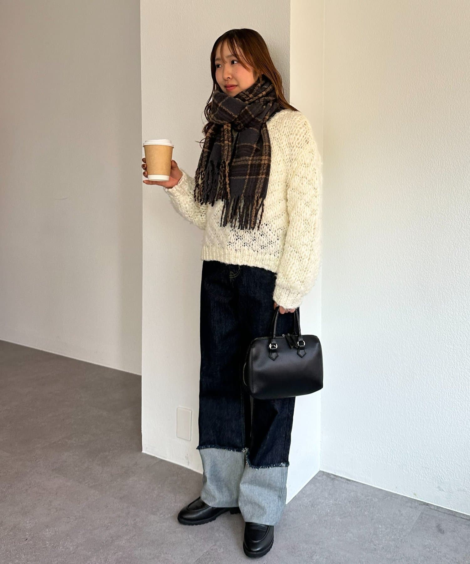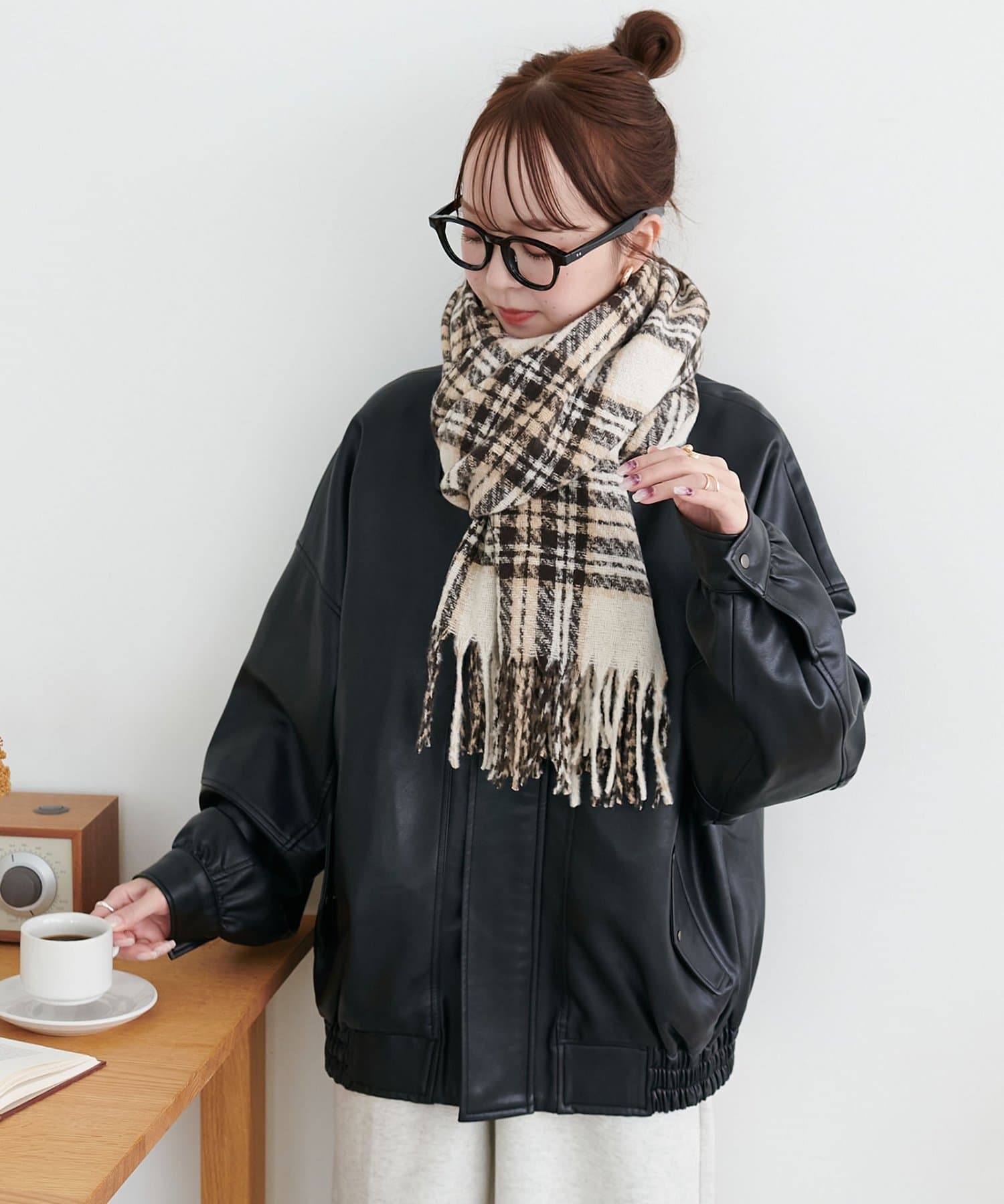 DISCOAT(ディスコート) 【ユニセックス】ループヤーン縮絨チェックマフラー