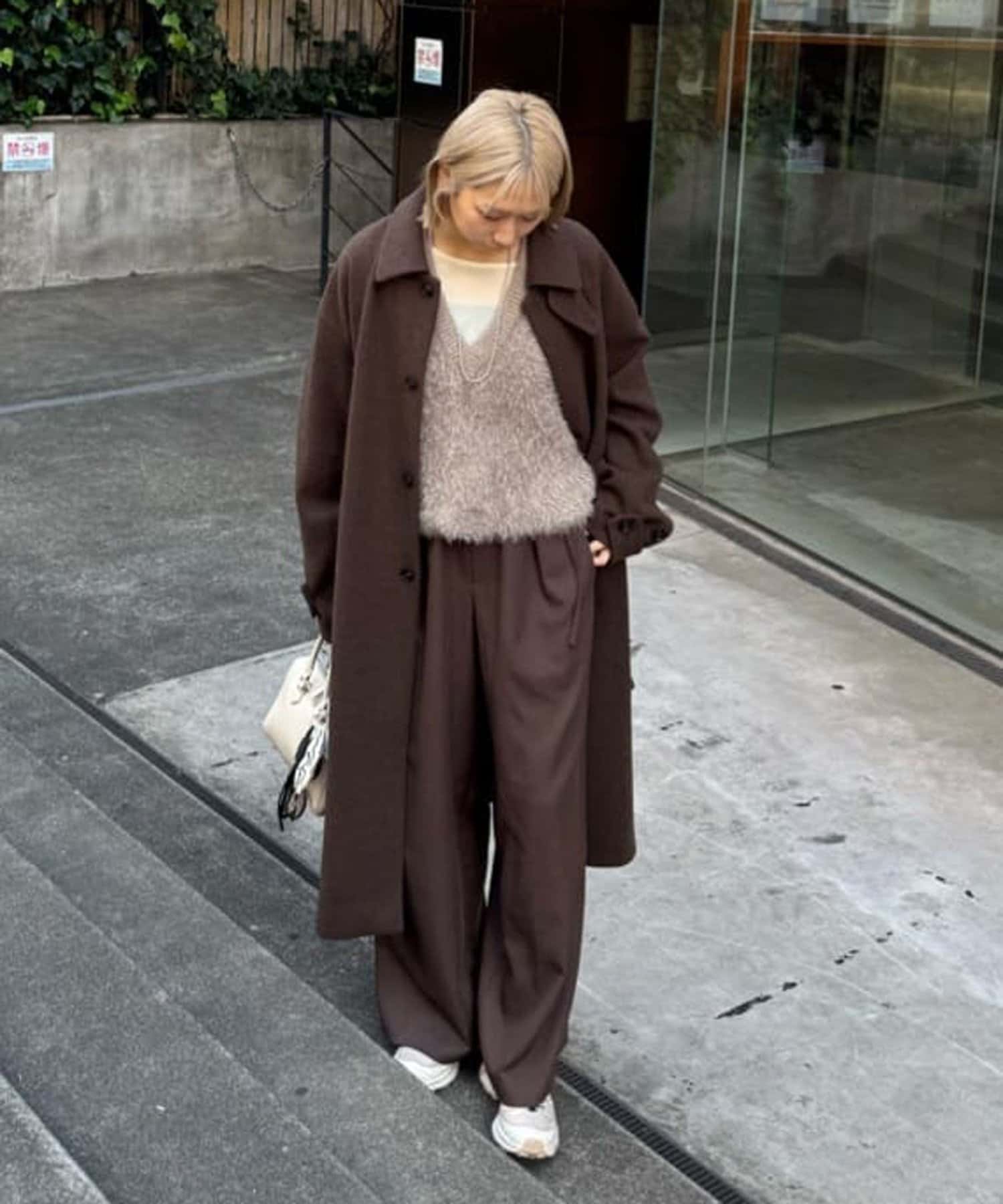158cm レディーススタッフ(Mサイズ着用):やや高さのある靴を合わせるのがおすすめです!落ち感のあるシルエットなので、スタイルアップが叶うのも嬉しいポイント。トップスはコンパクトな着丈のアイテムを合わせるとバランスよくまとまります♪