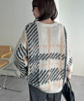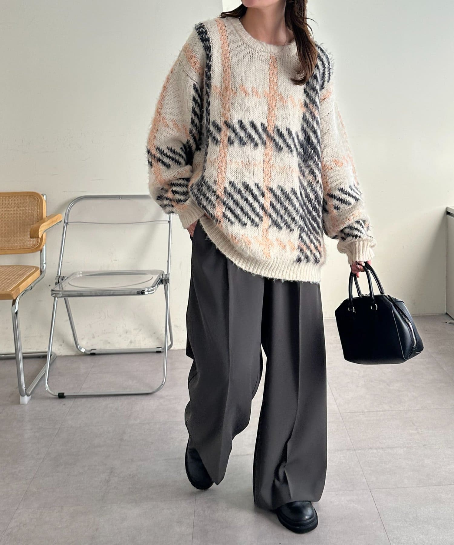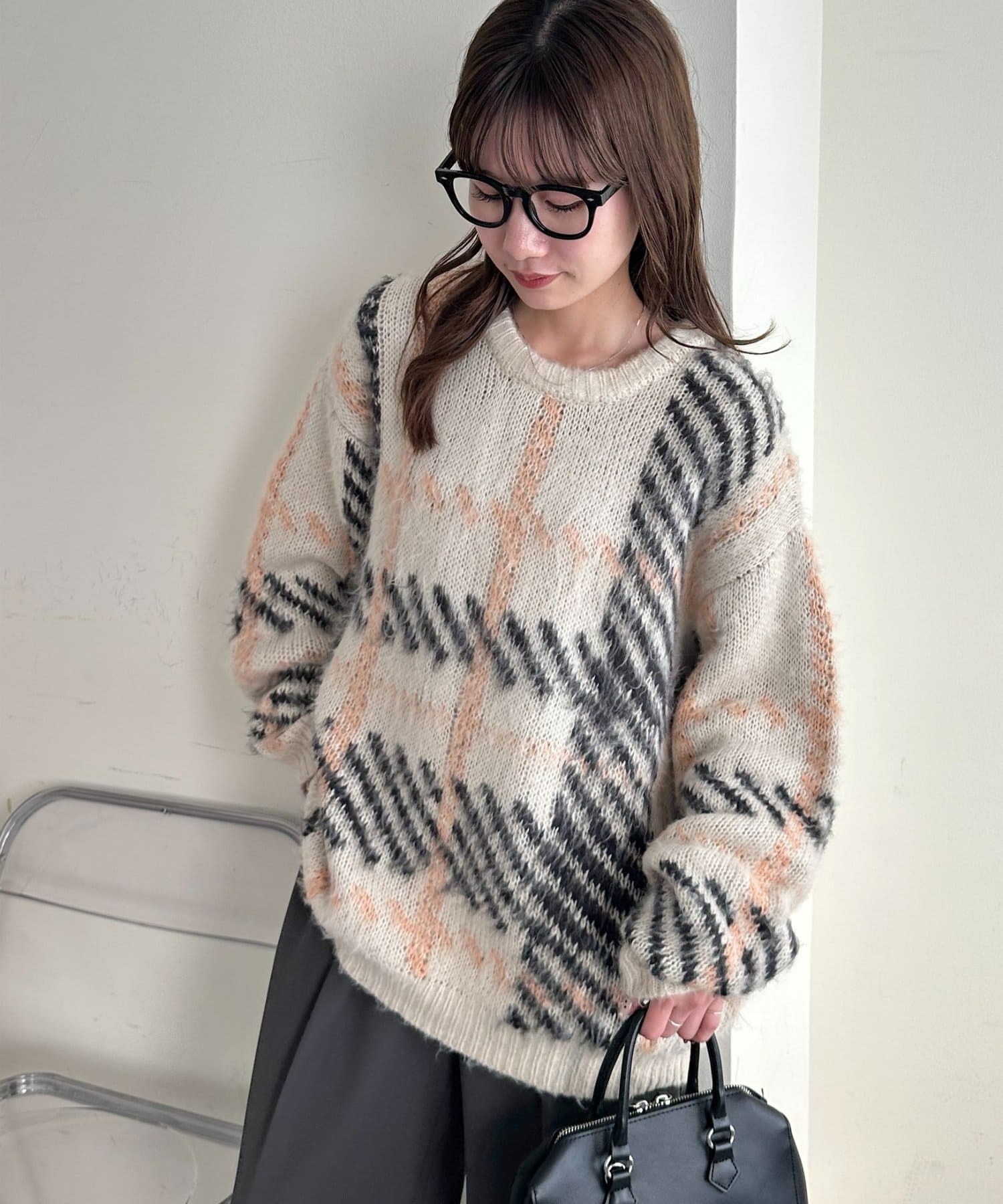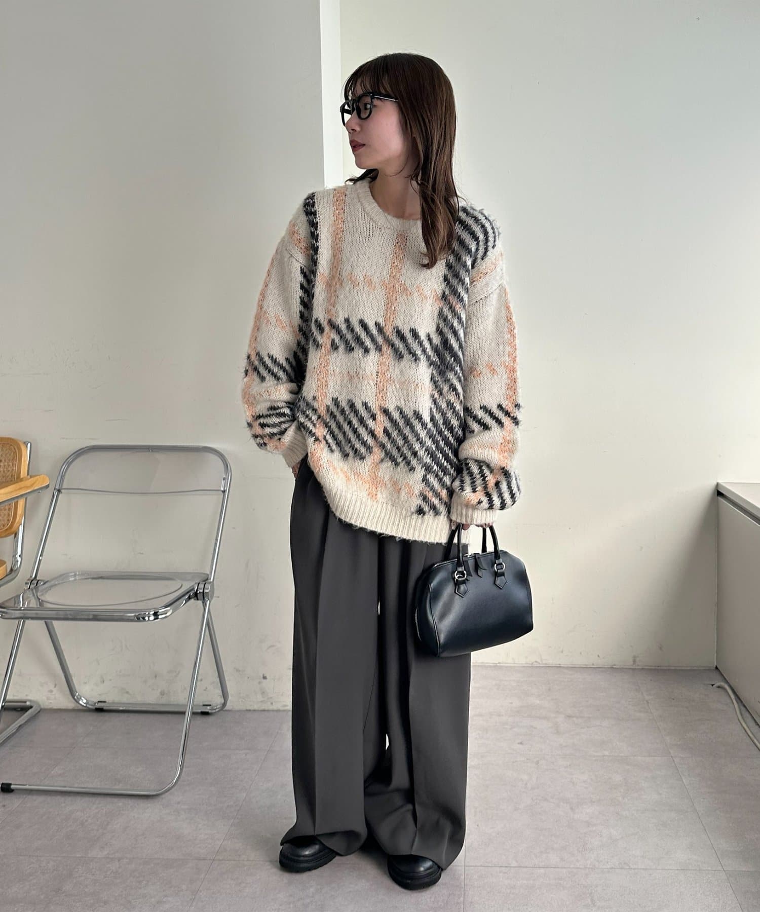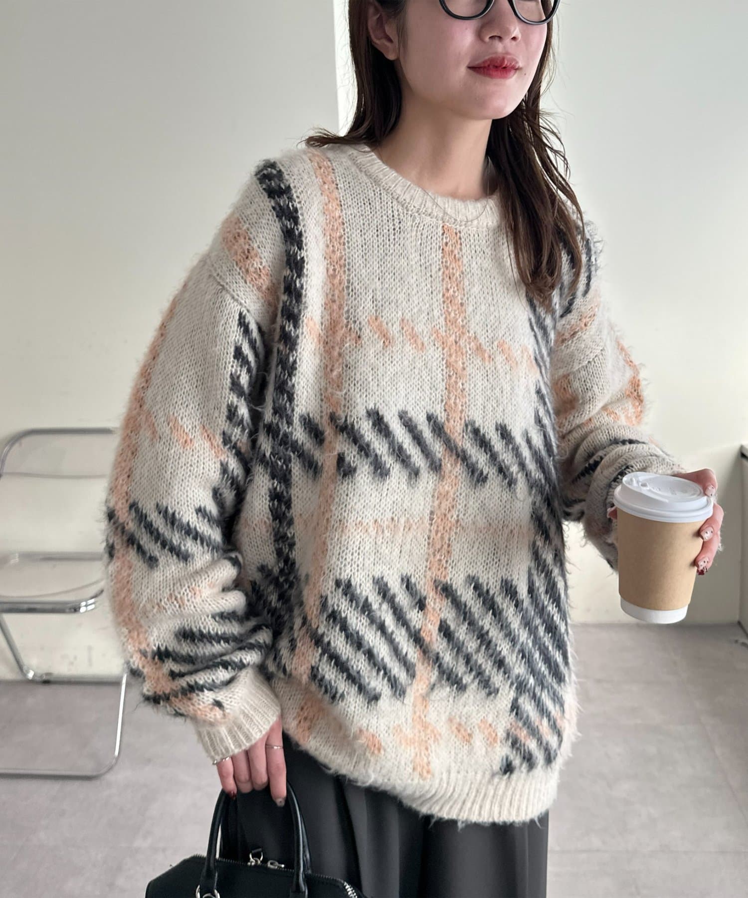 【ゆるっとこなれ感/1枚でコーデが仕上がる♪】チェックガラオーバーニット