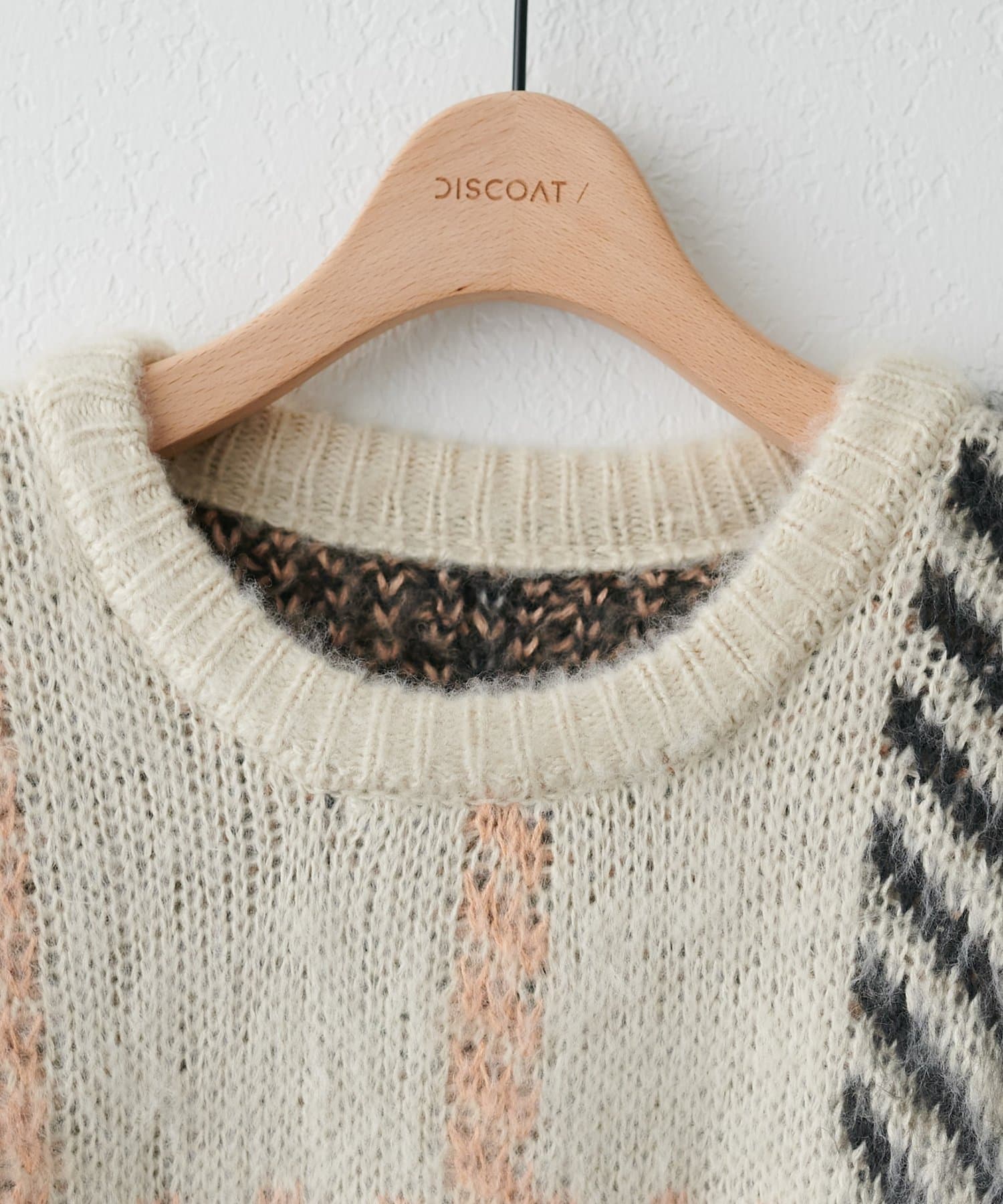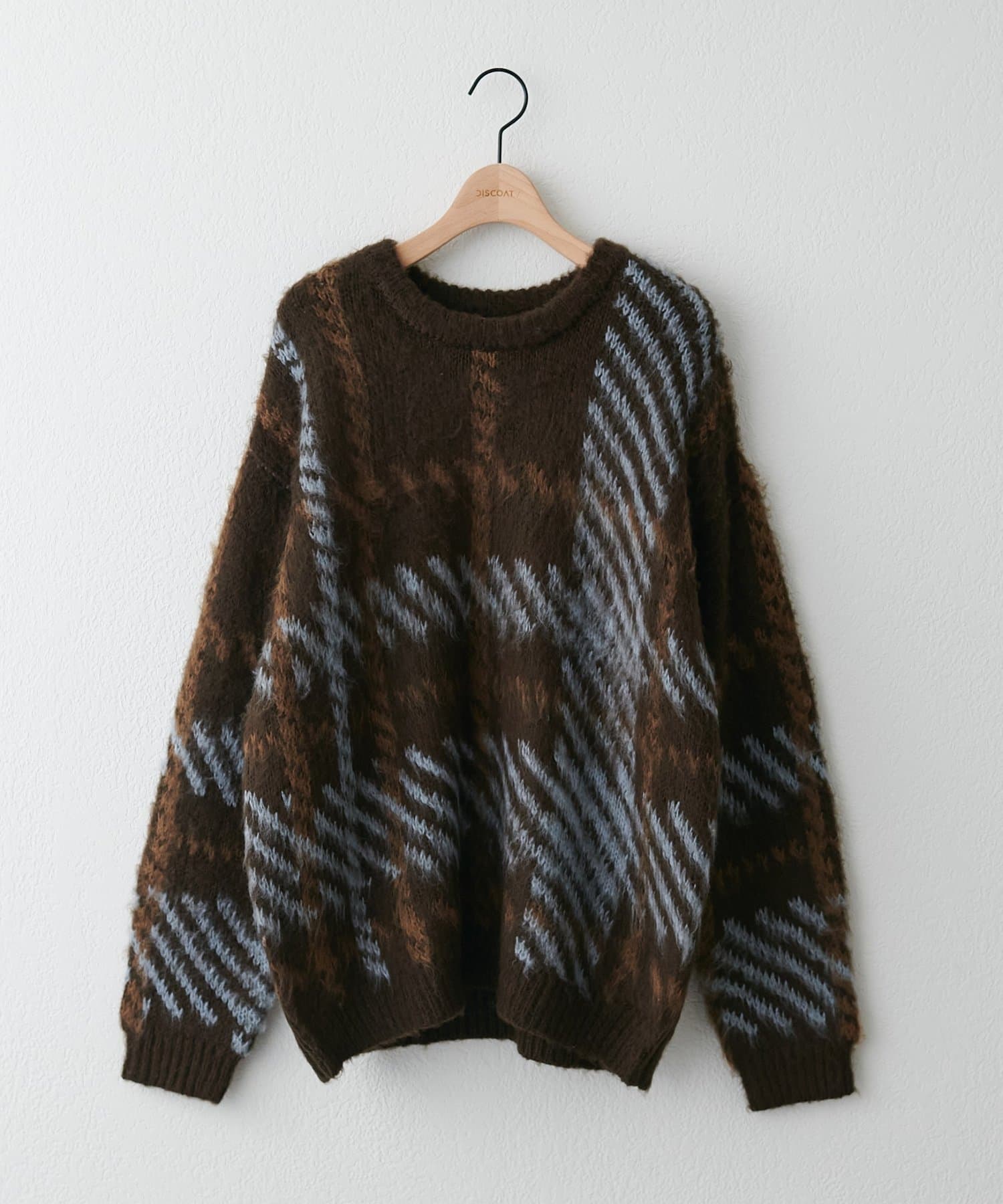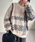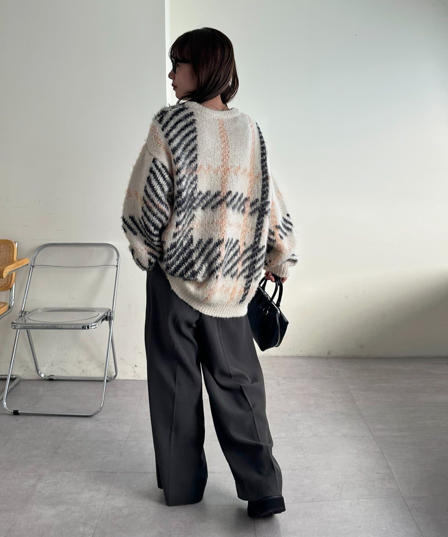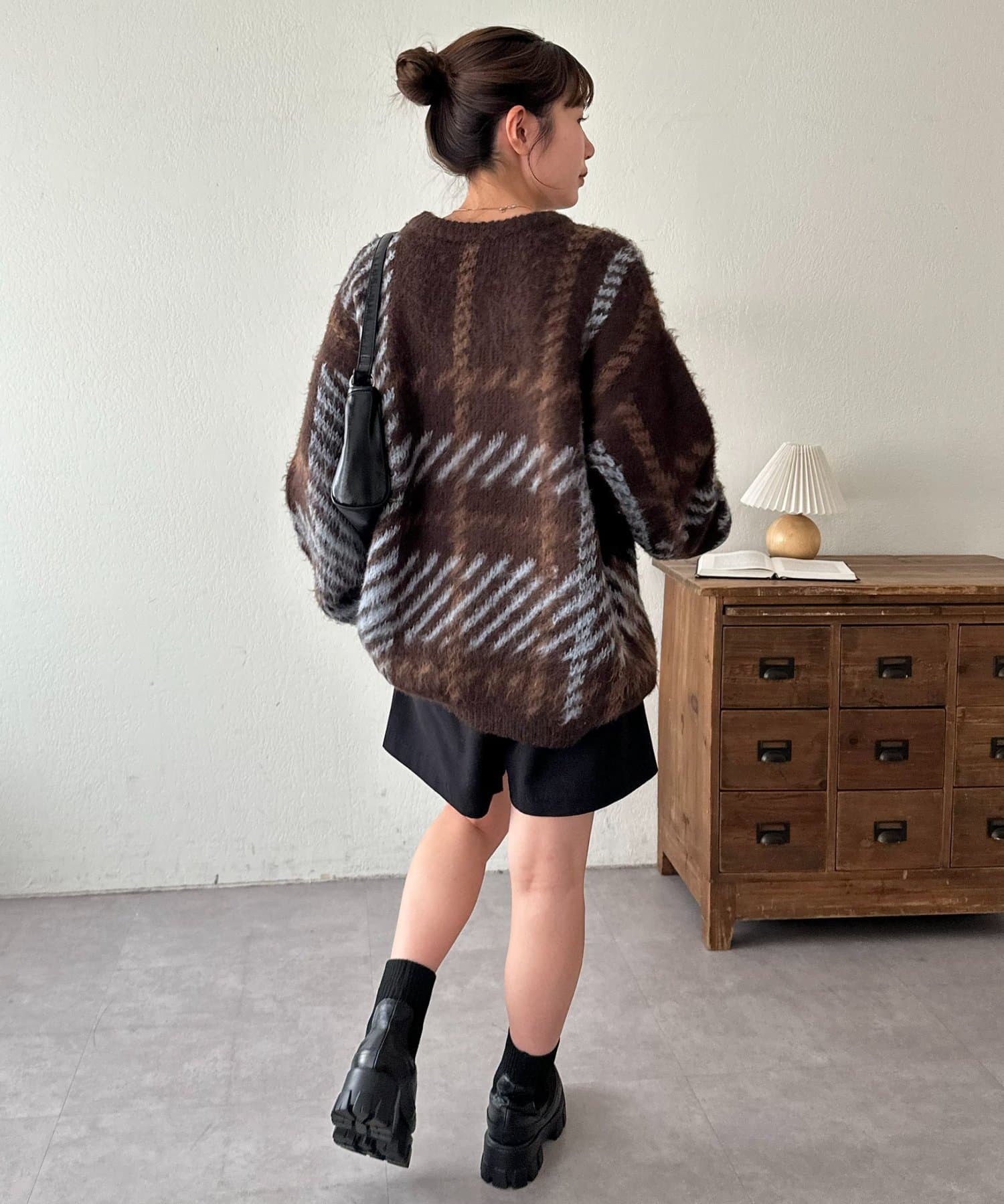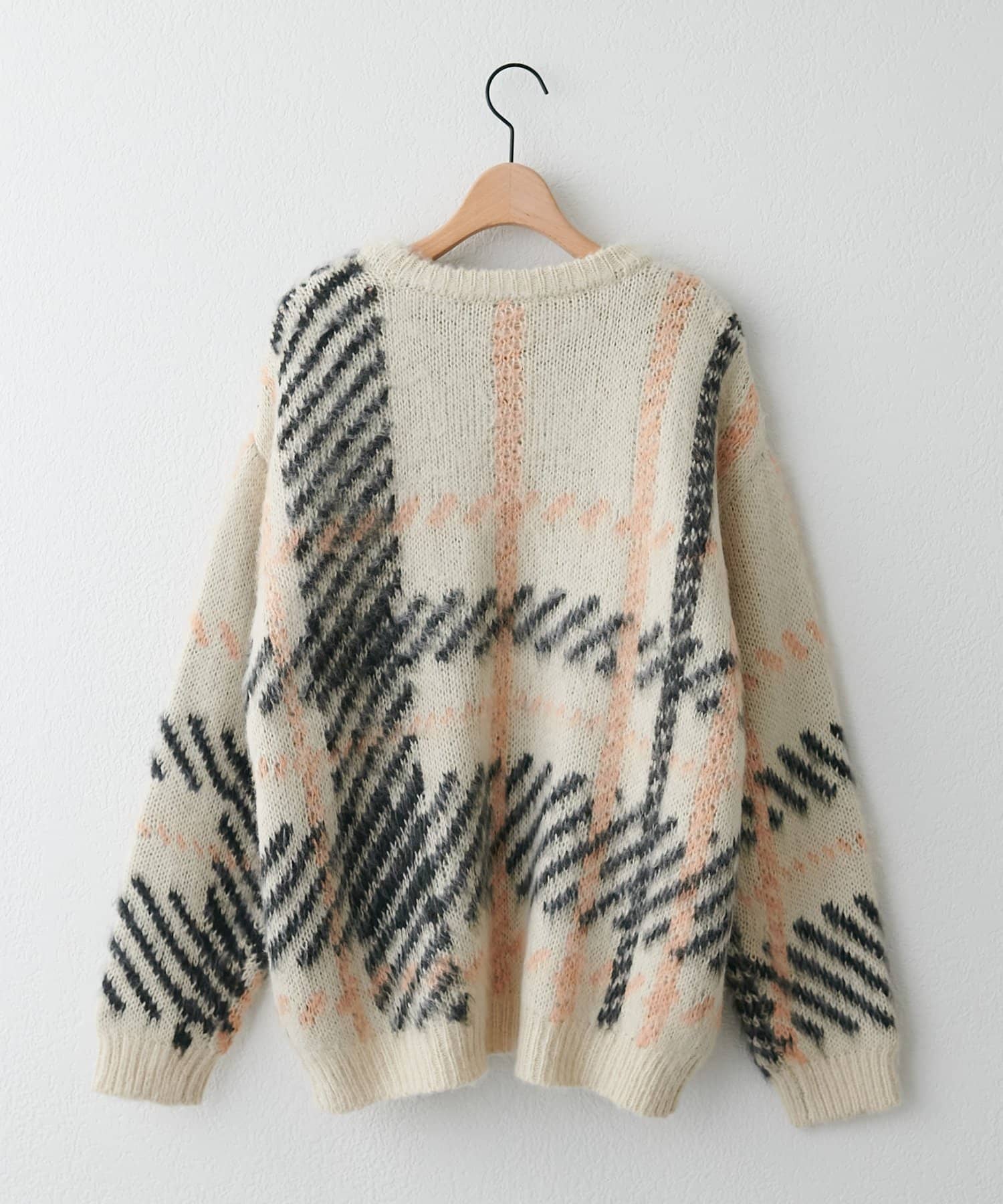 【ゆるっとこなれ感/1枚でコーデが仕上がる♪】チェックガラオーバーニット