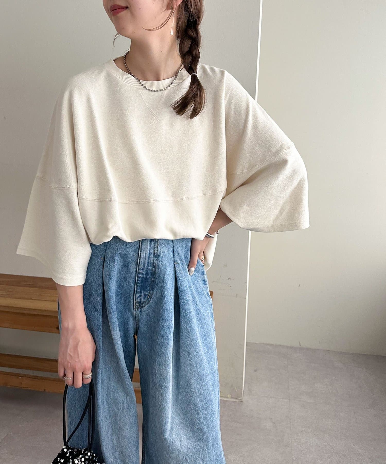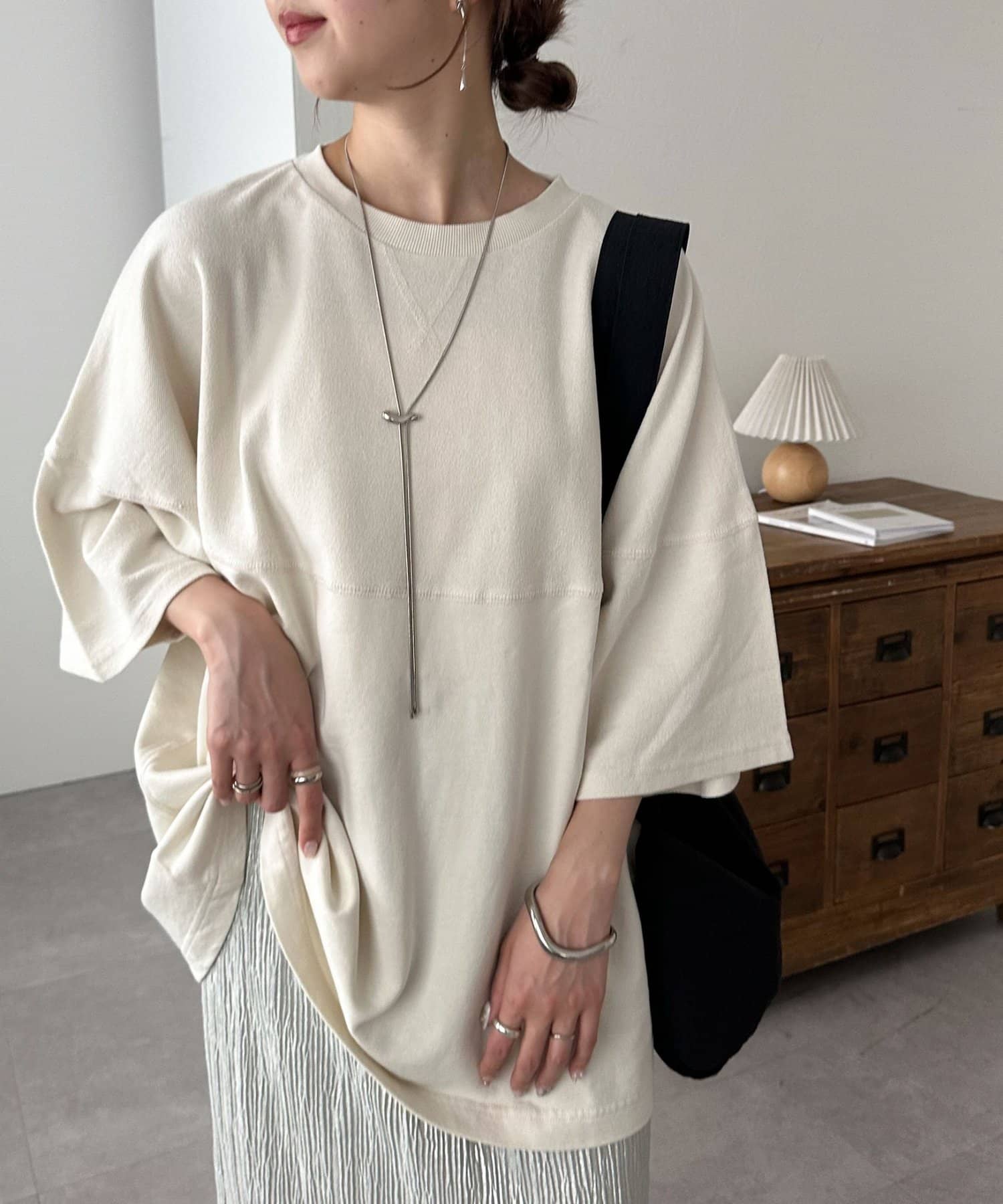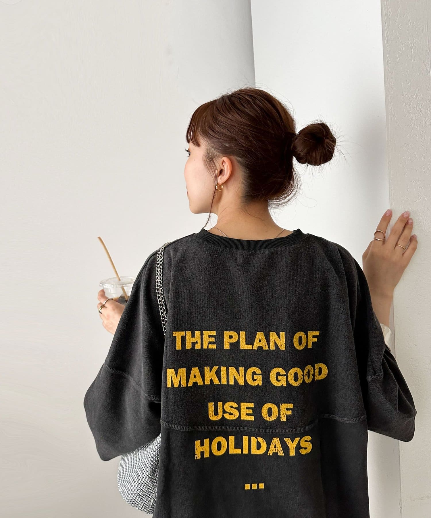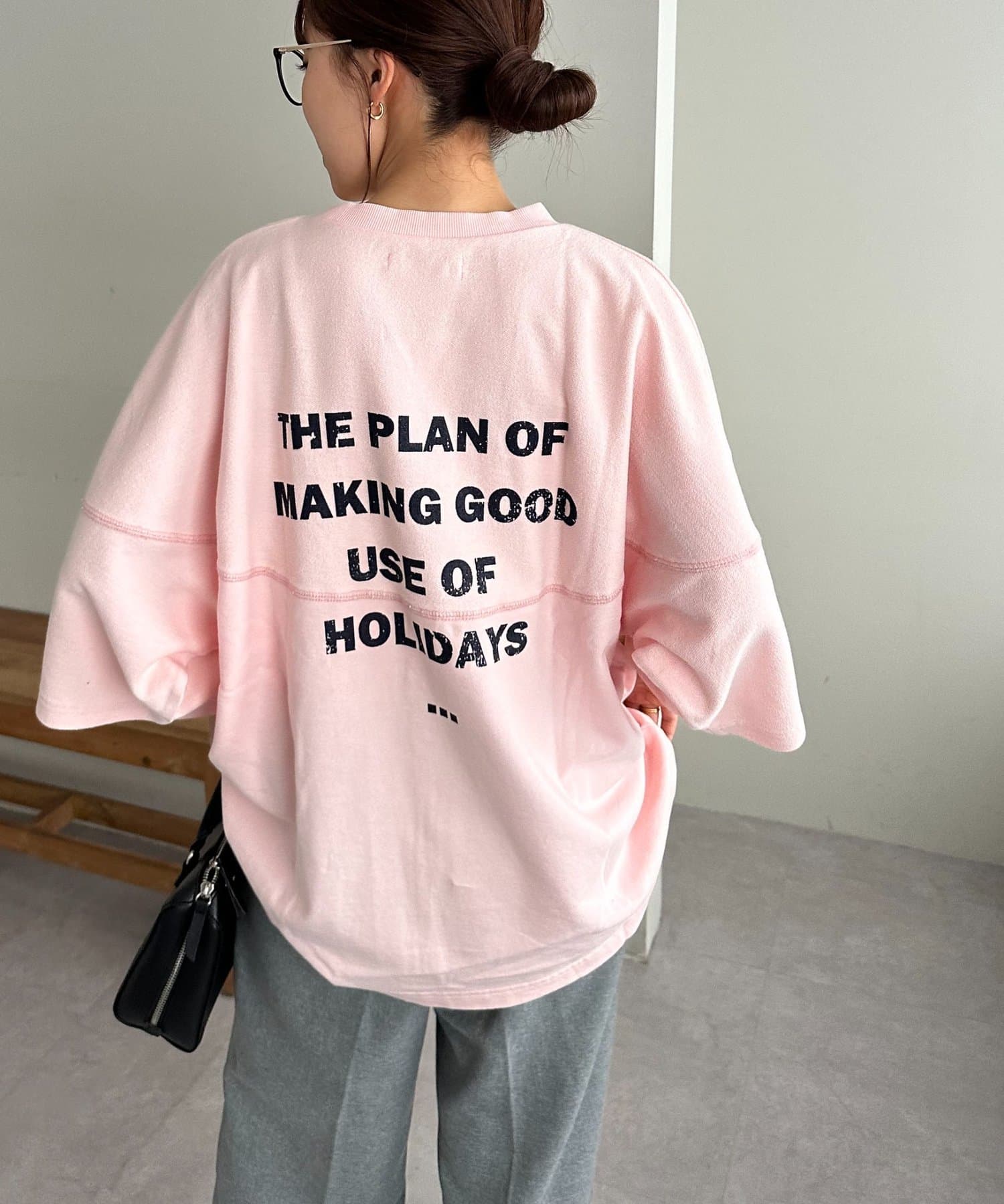 スウェットの表地と裏地を組み合わせたデザイン性のあるTシャツ。フロスト加工を施しヴィンテージ感のある一枚に仕上げました♪バックロゴがコーデのポイントに◎ビックシルエットで、二の腕やお尻まで隠れる丈感なので体型カバーもできます。男女問わずに楽しめるユニセックスアイテムです。