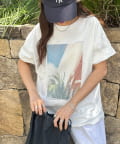 落ち着いた色味のフォトプリントが魅力のTシャツ。