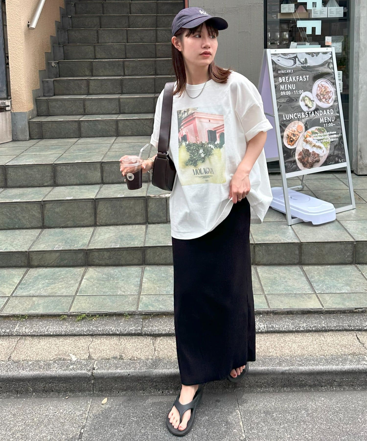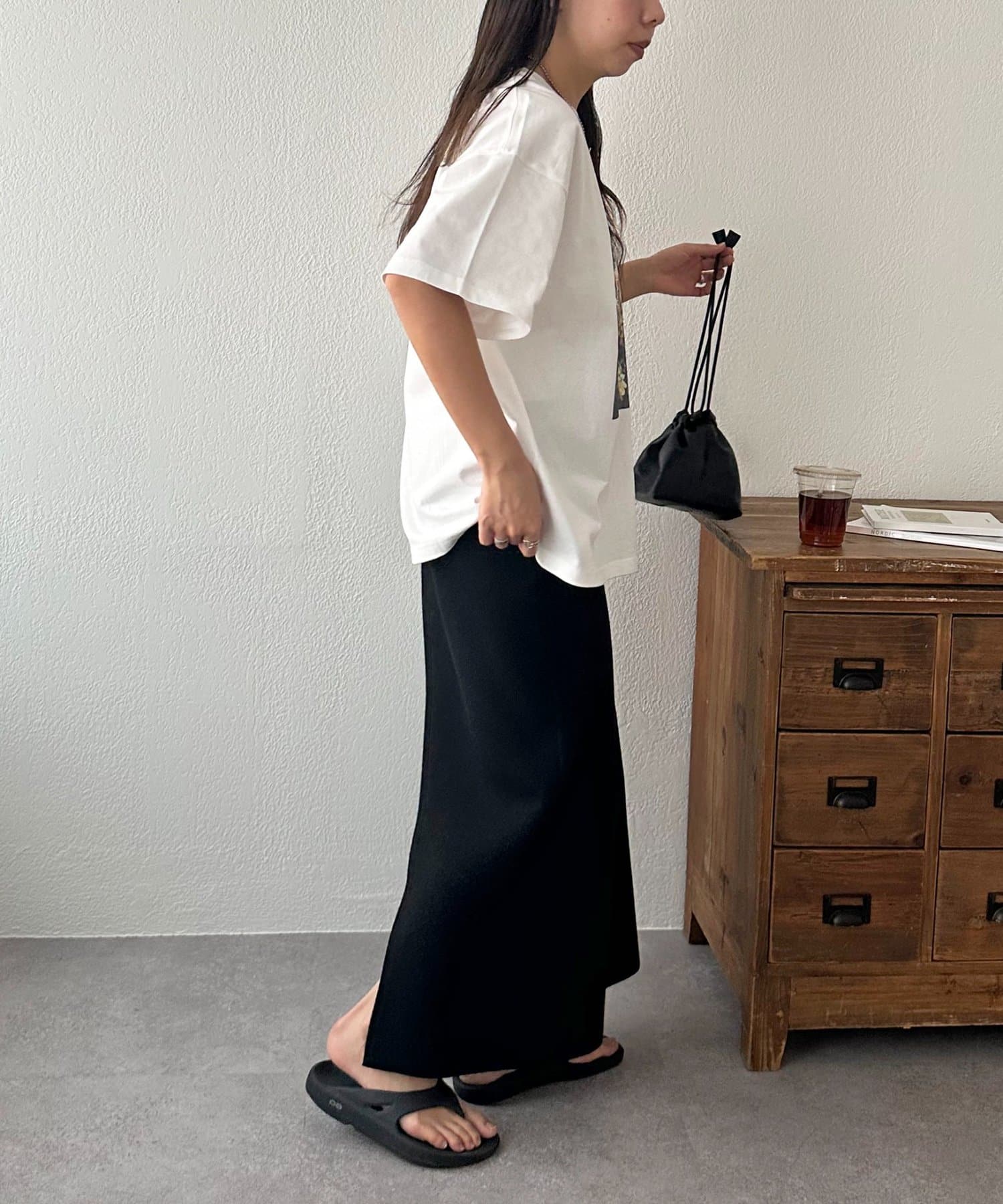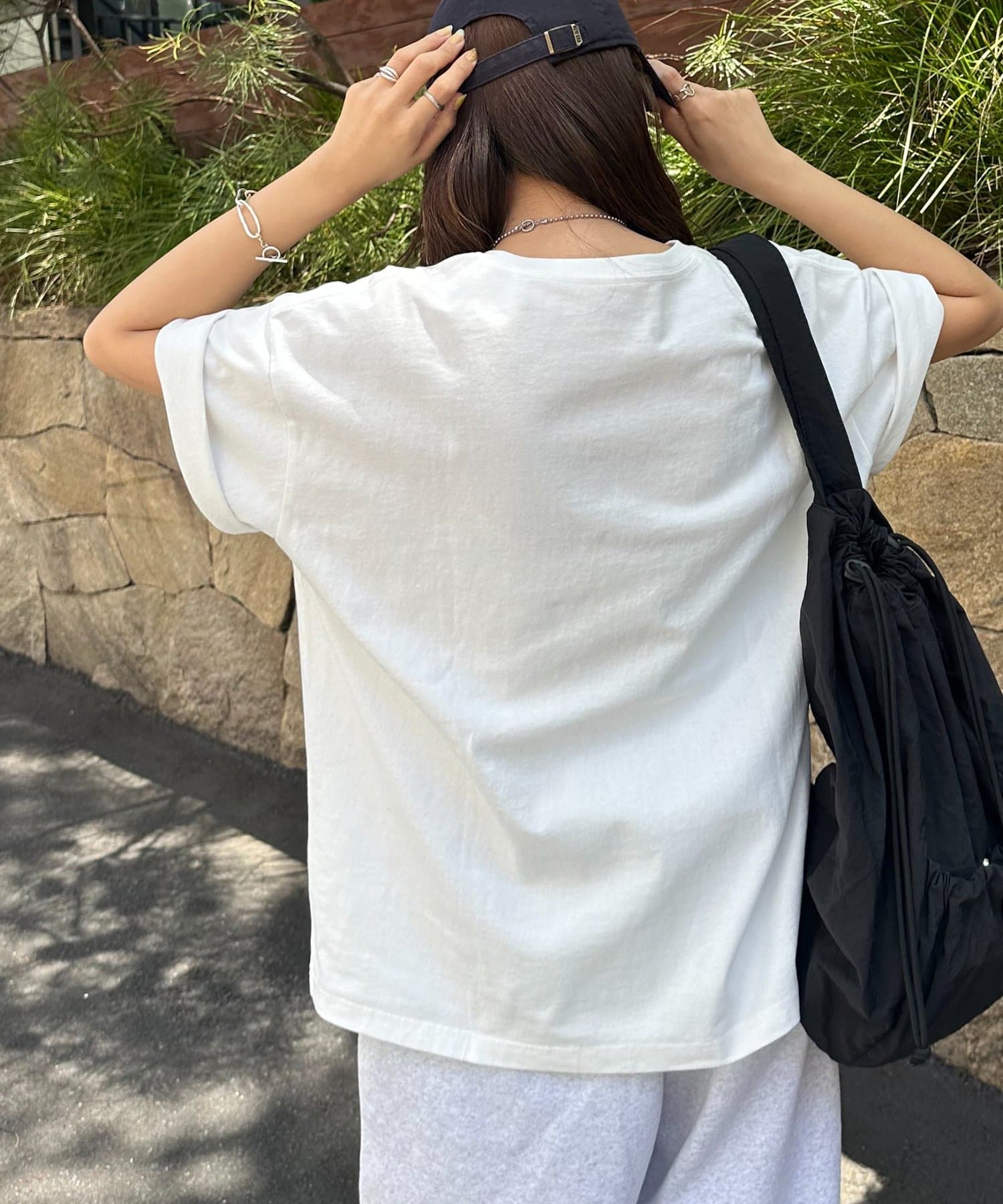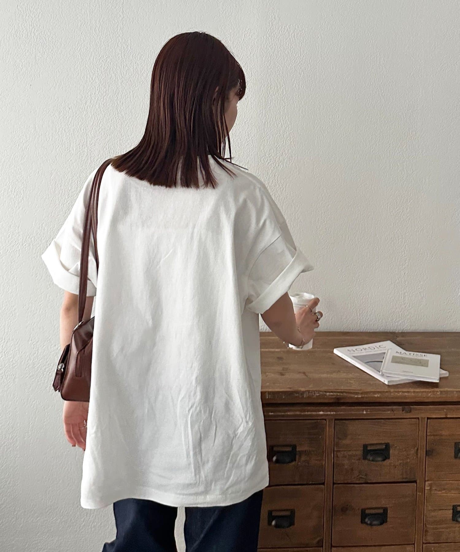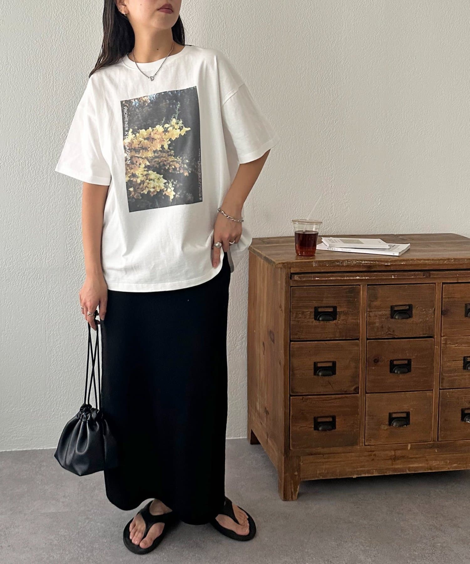 158cmレディーススタッフ:ゆったりとしたシルエットでリラックス感がありながら、フォトプリントで大人っぽさも演出できます!合わせるボトムスを選ばないのも嬉しいポイントです♩