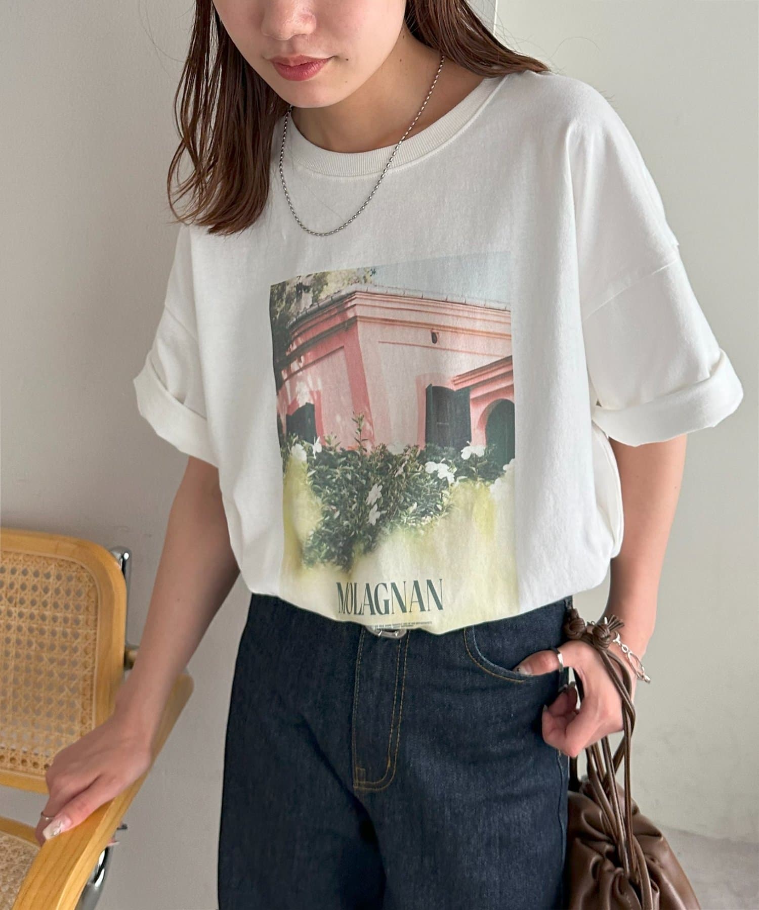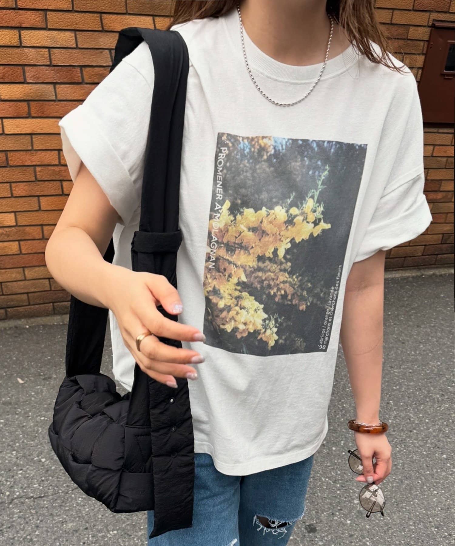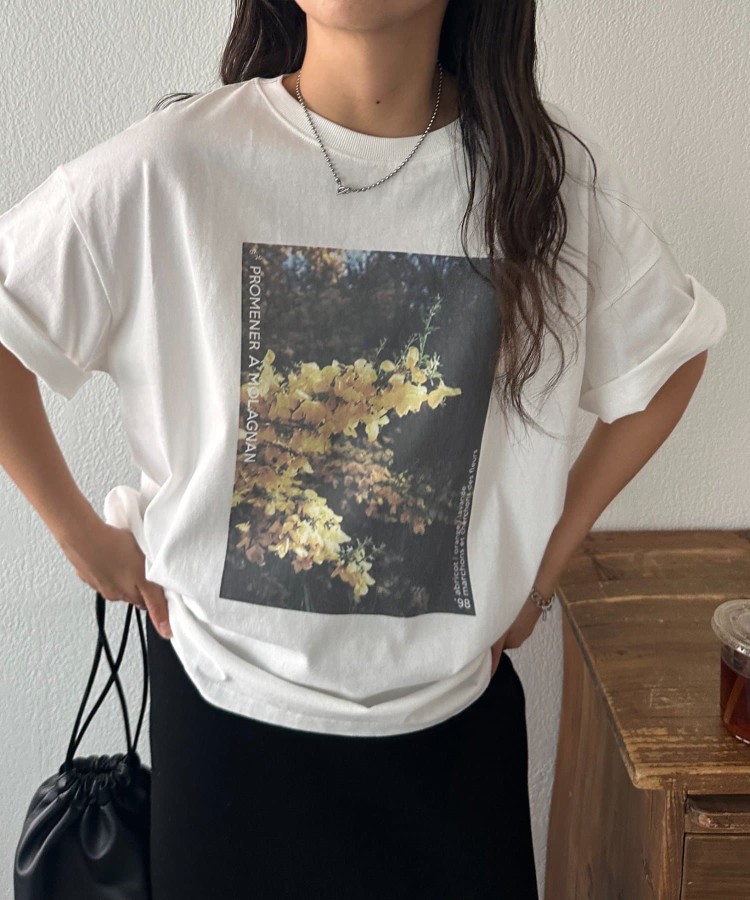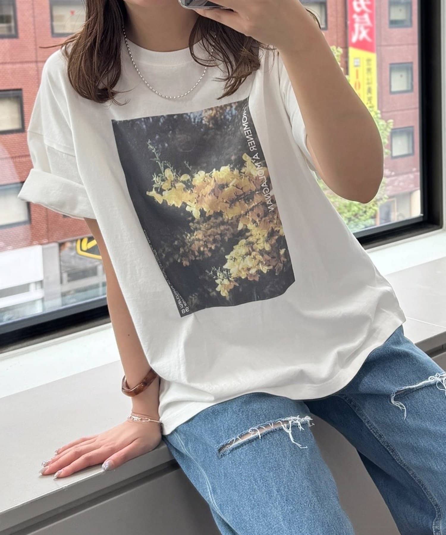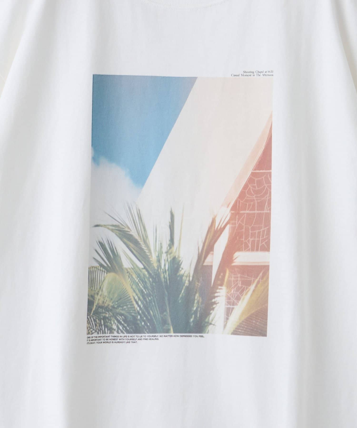 フロントに大胆に配置されたフォトプリントが目を惹くTシャツ