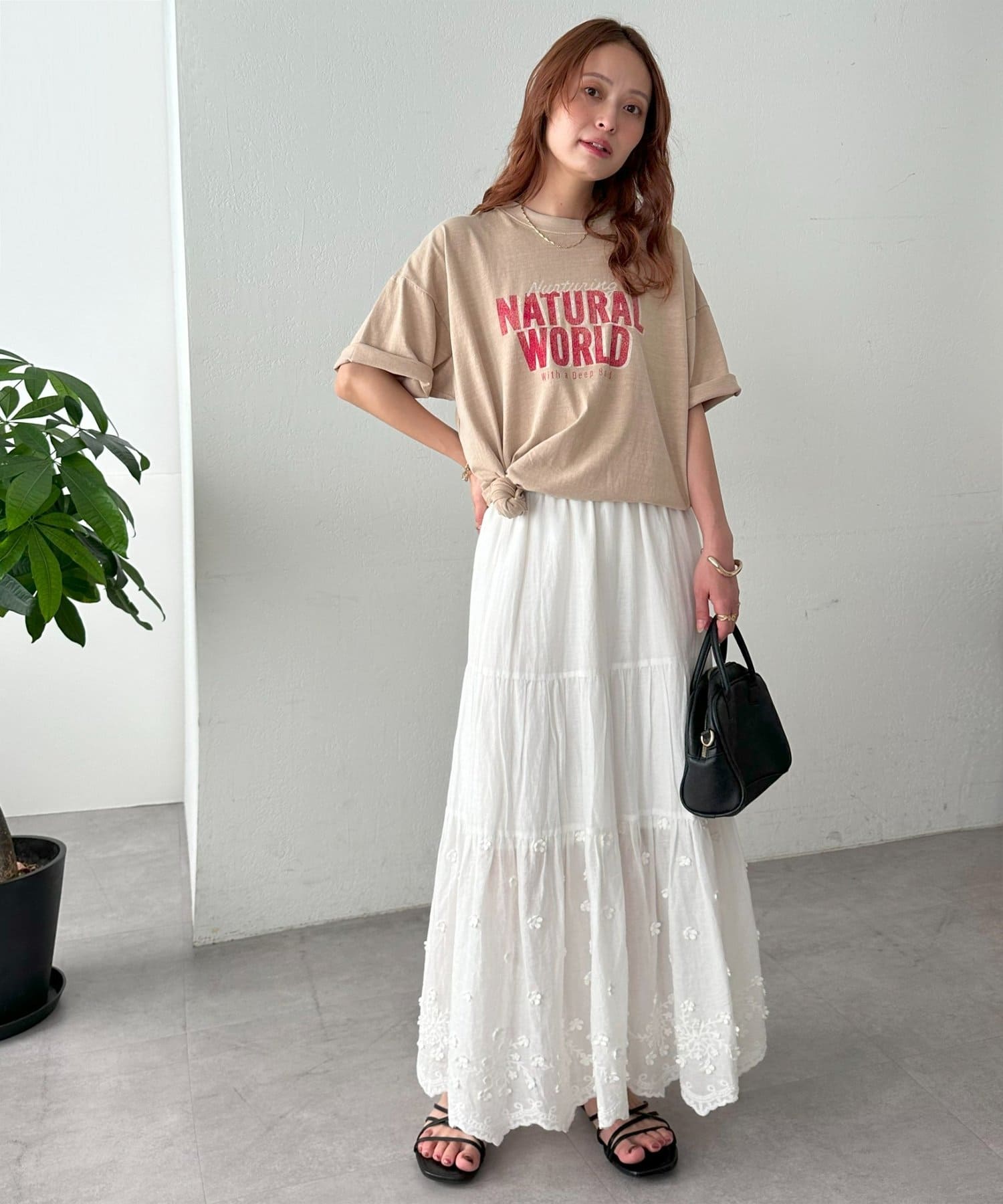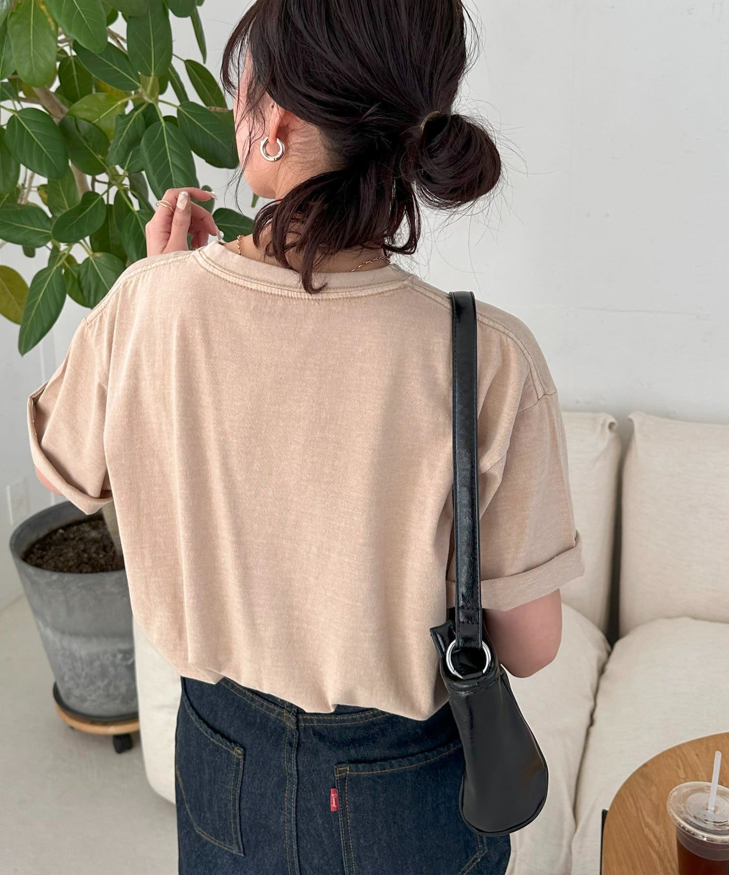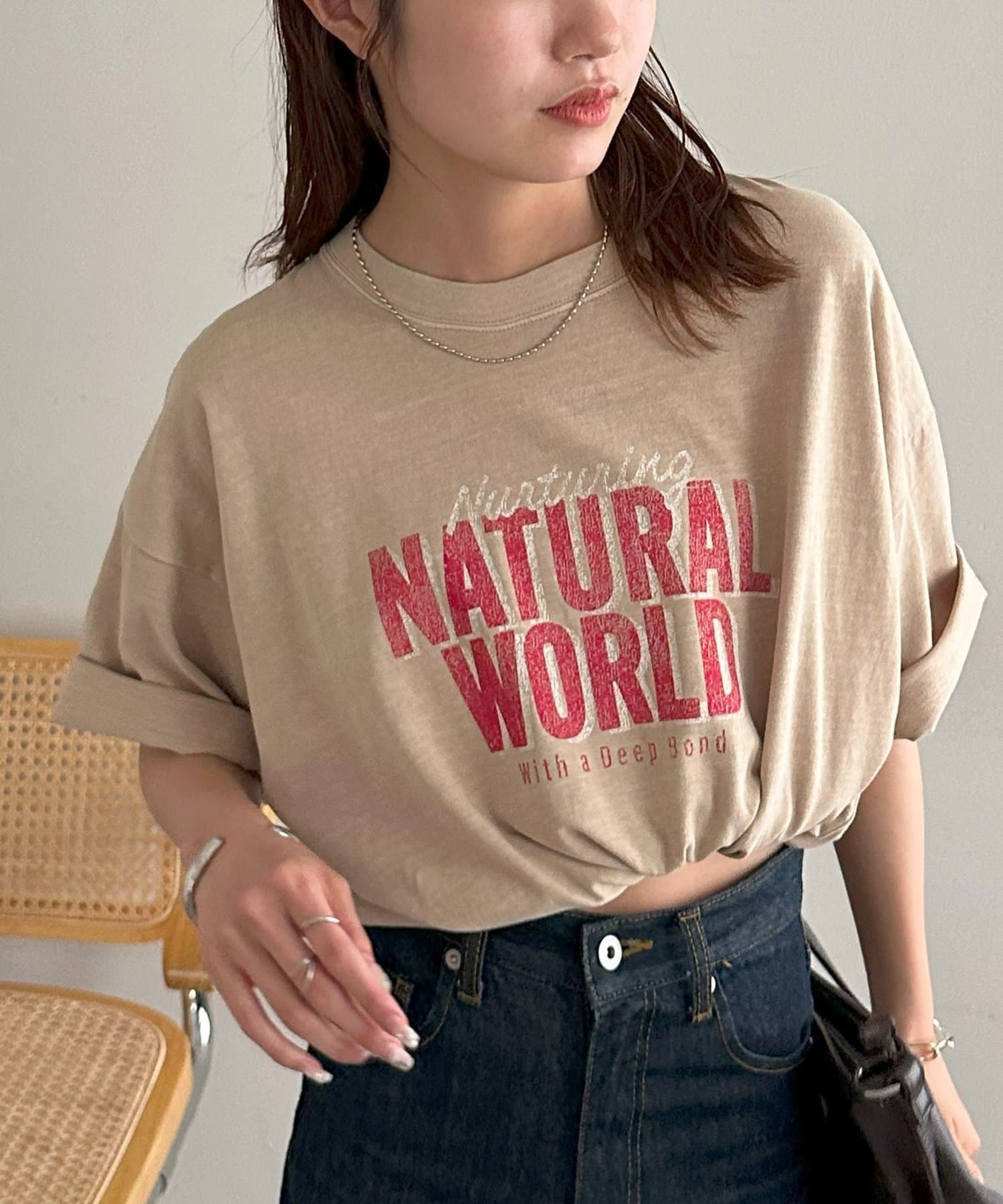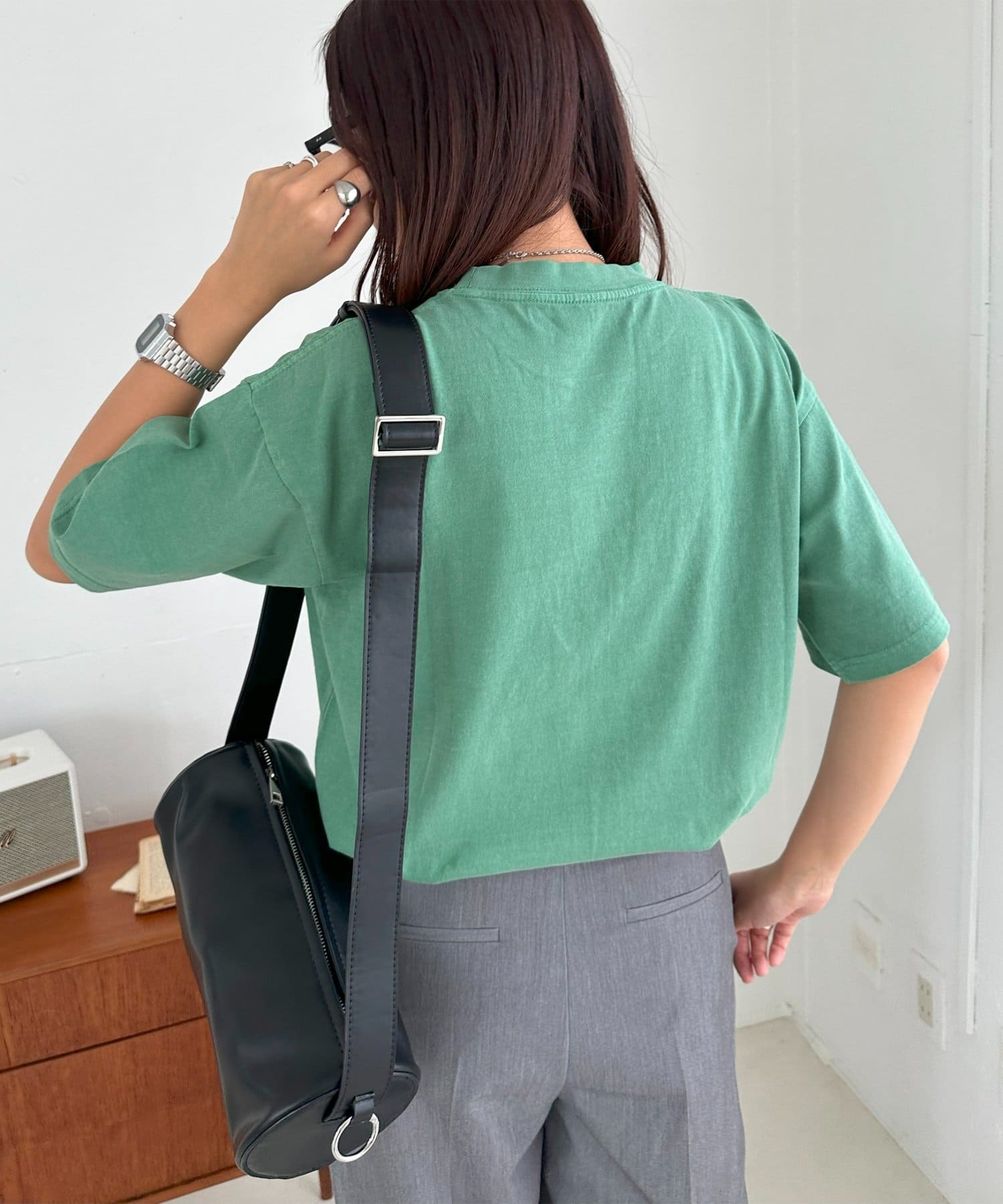 さらっとした夏にも着やすい生地感で、肌触りも良いので、ボトムスにインして肌に直接触れても違和感なく着れます〇