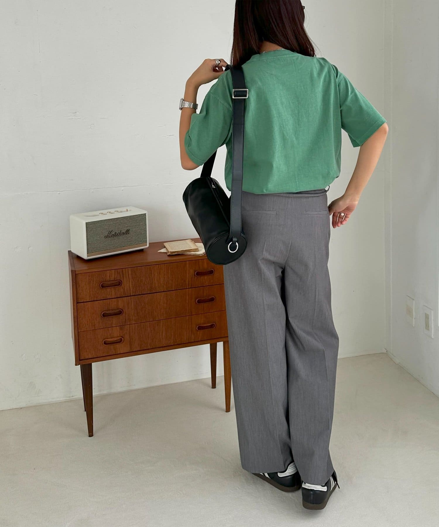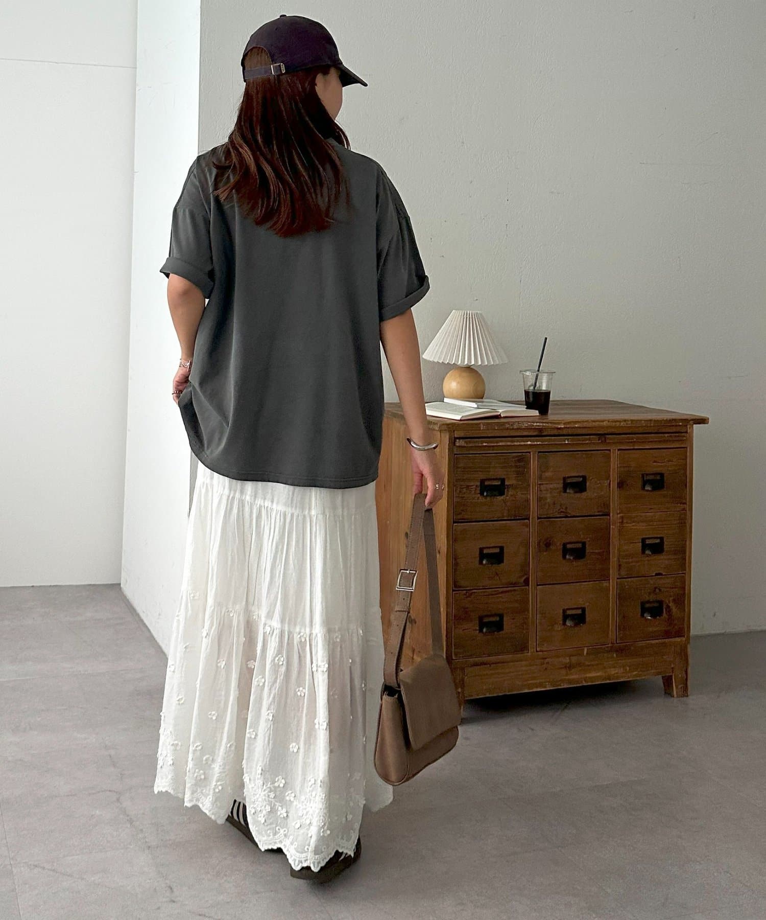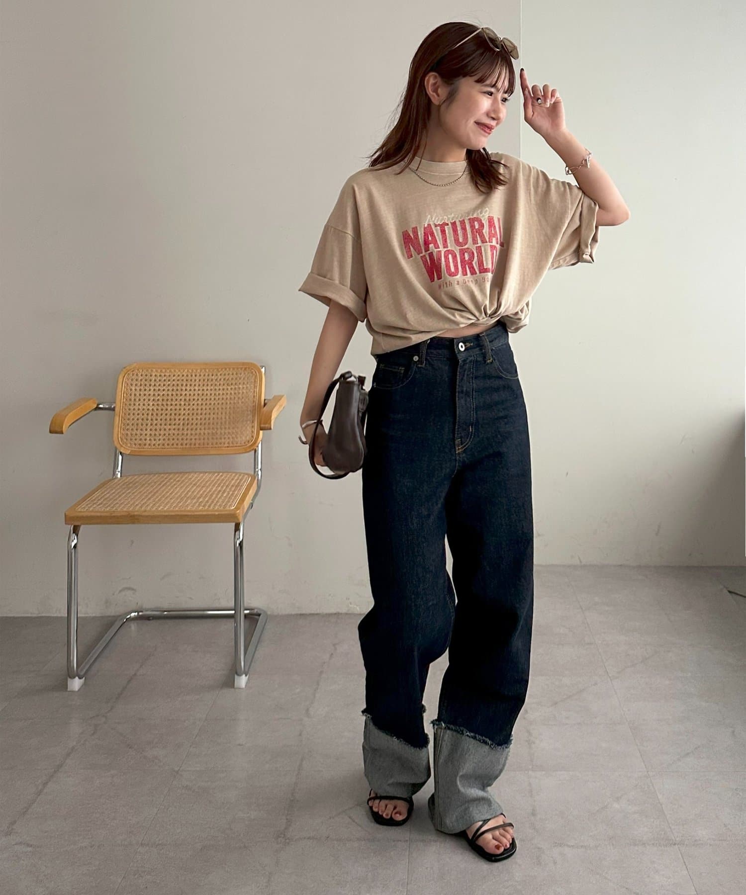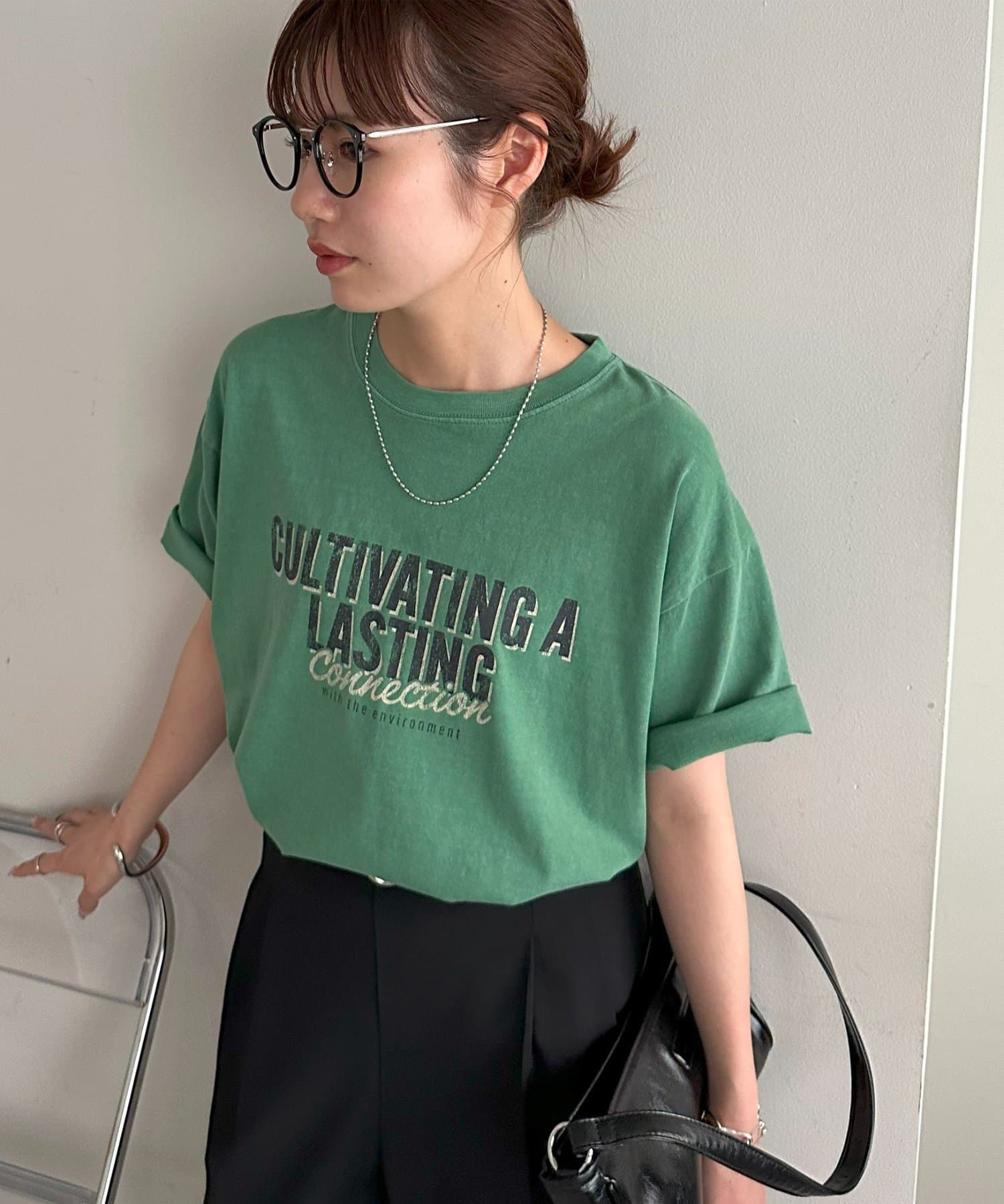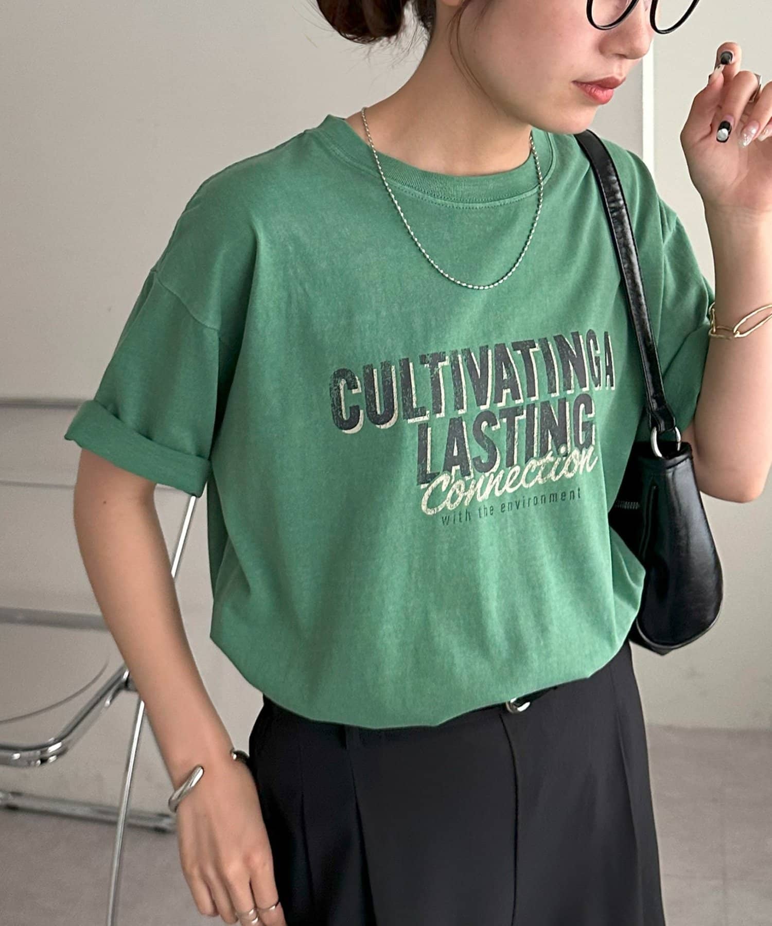 さらっとした夏にも着やすい生地感で、肌触りも良いので、ボトムスにインして肌に直接触れても違和感なく着れます〇