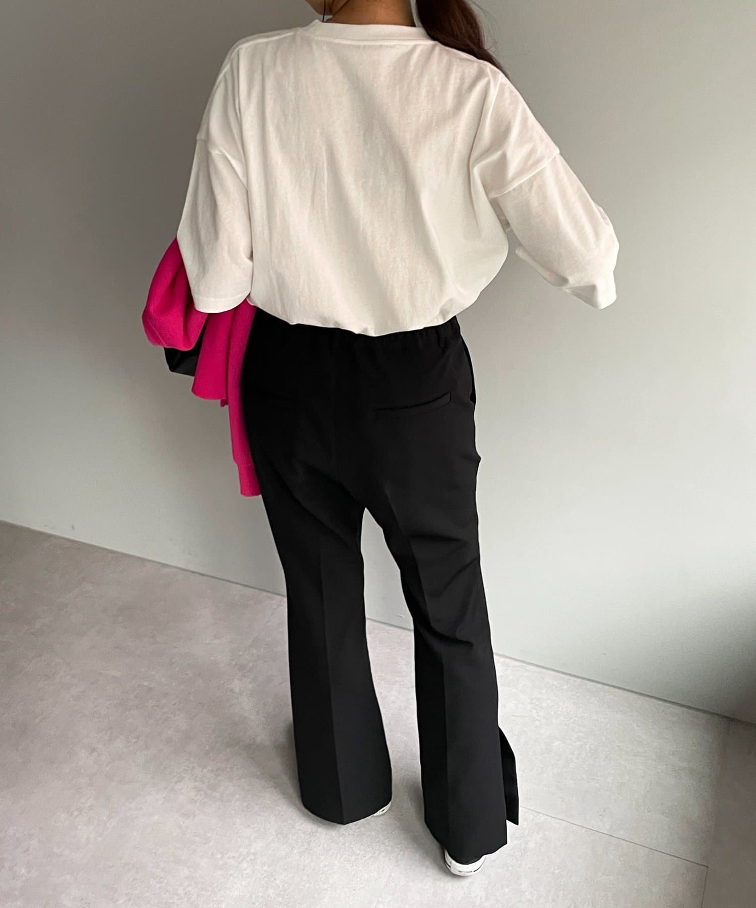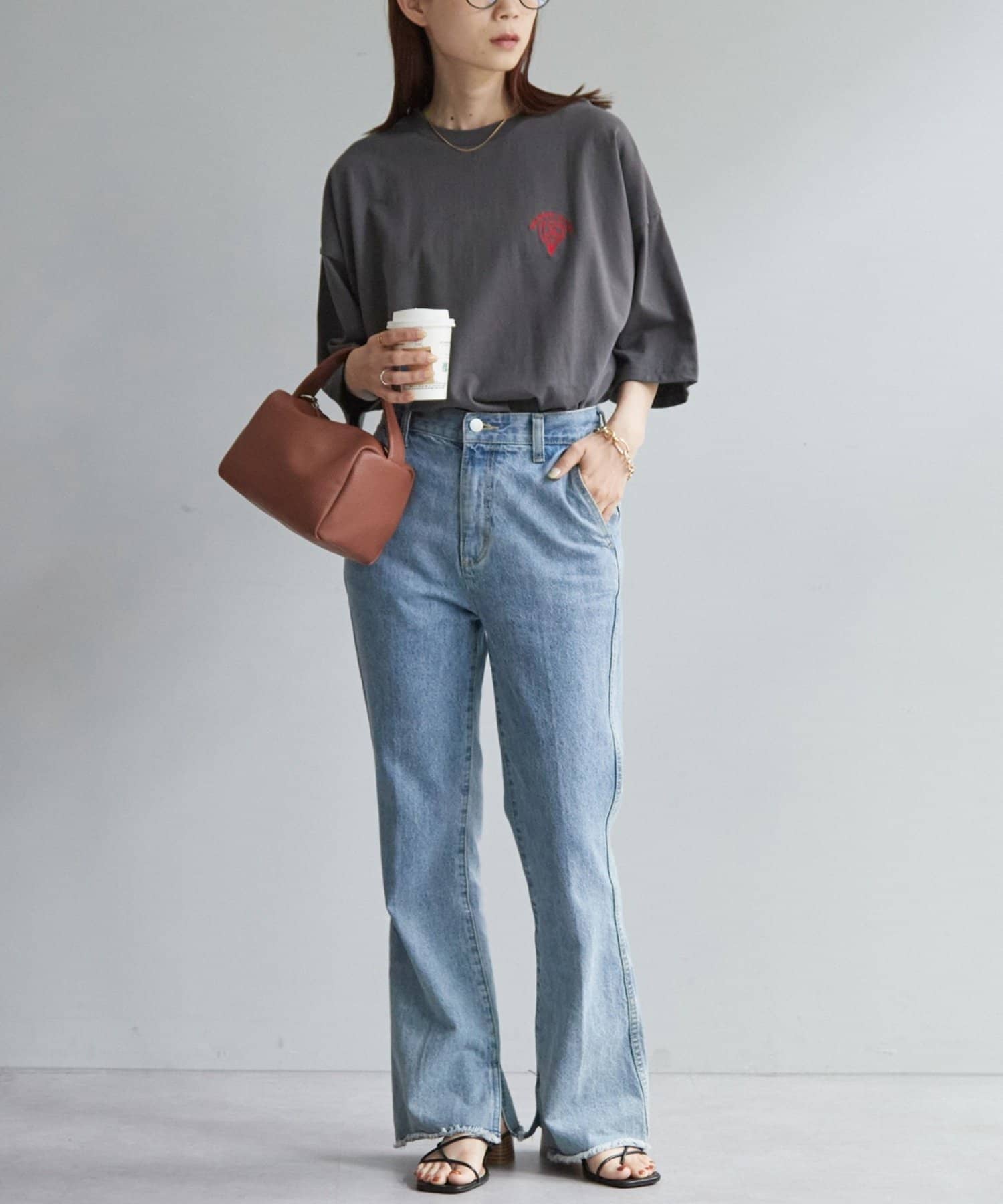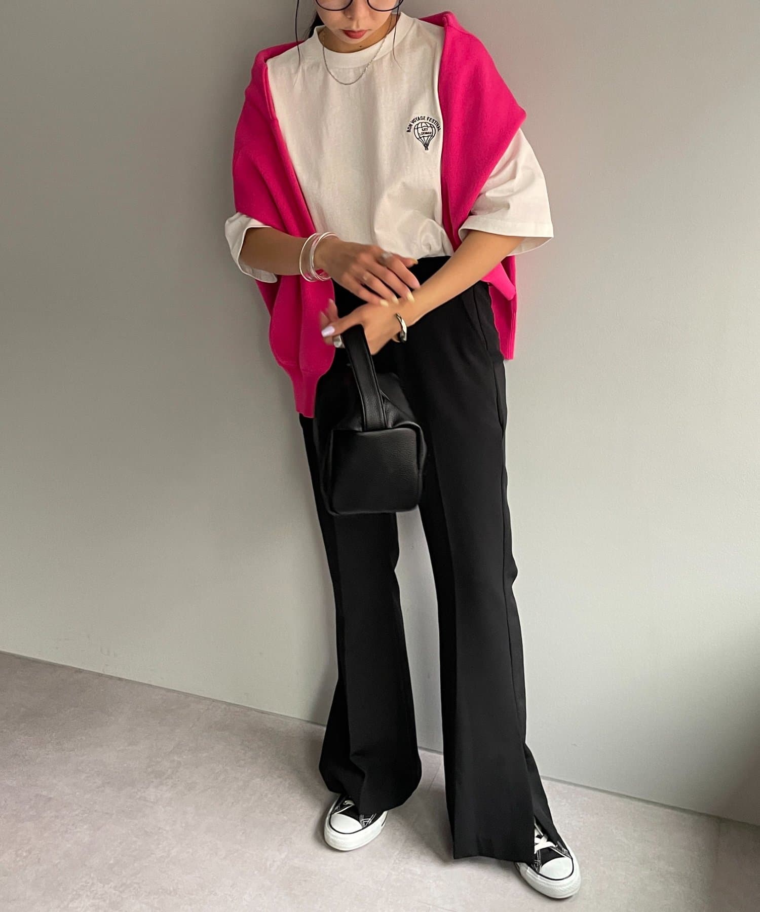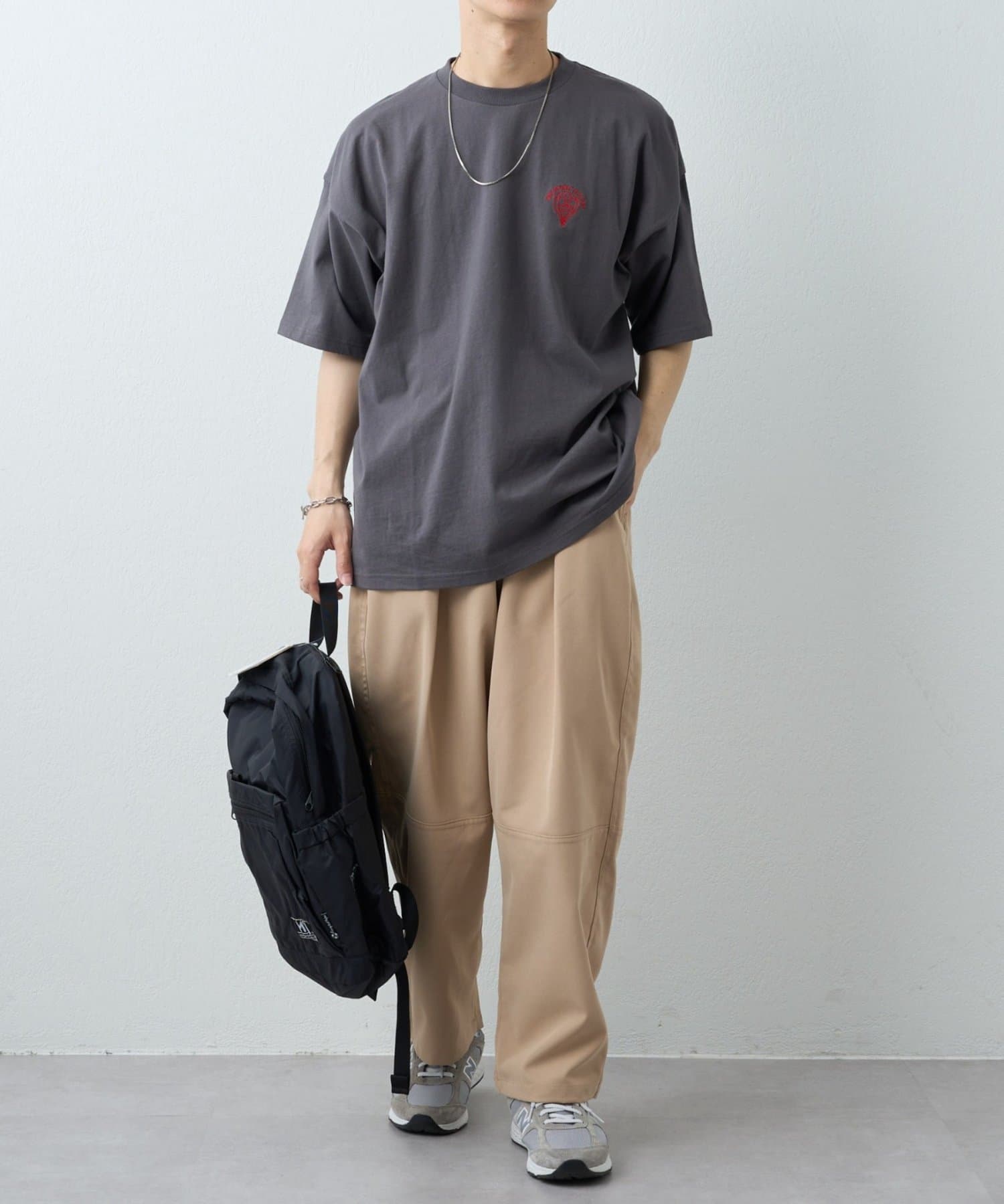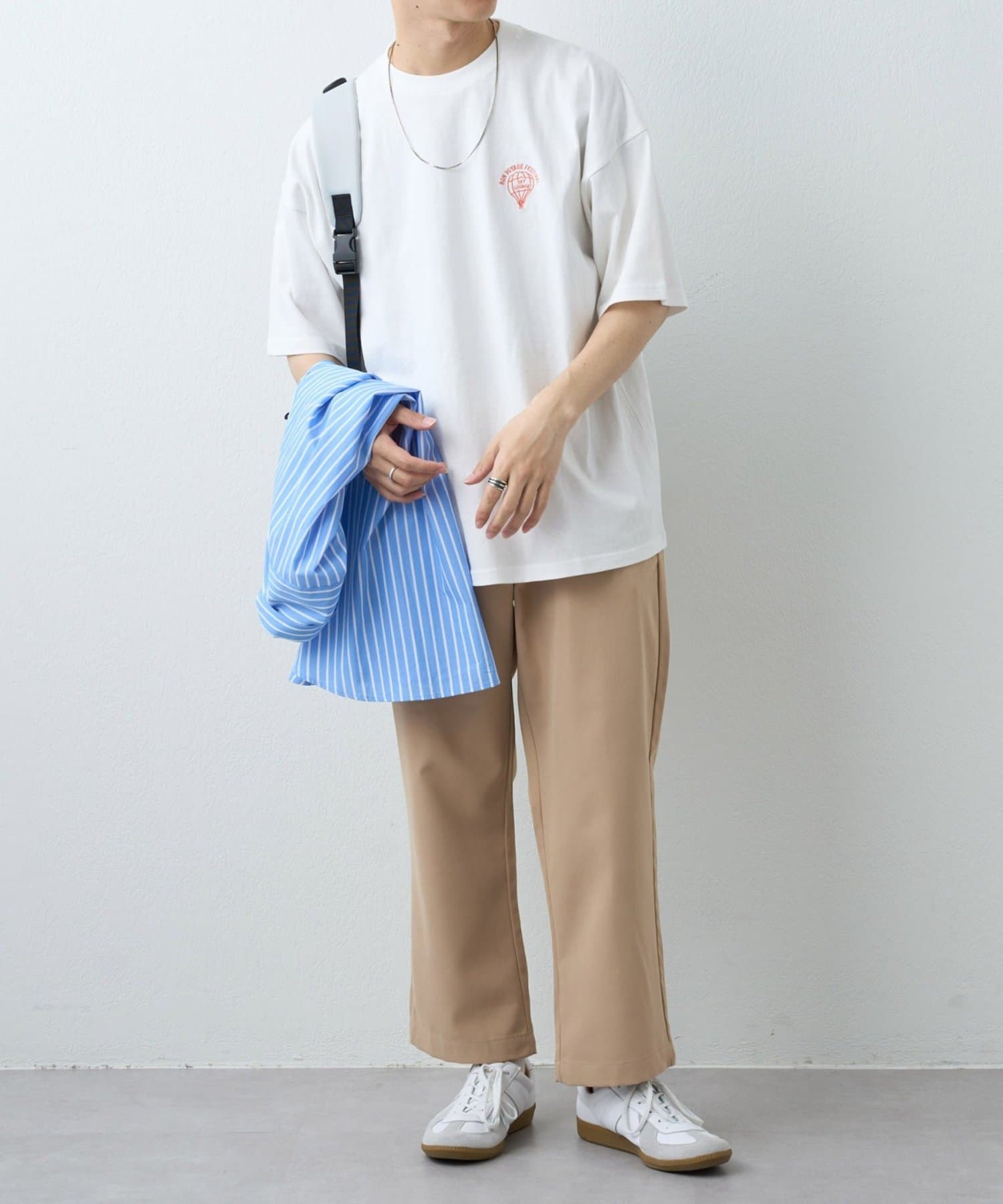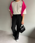ビッグシルエットなので、ボトムスはワイドパンツなどゆったりしたパンツを合わせてストリートに仕上げてもおすすめ。