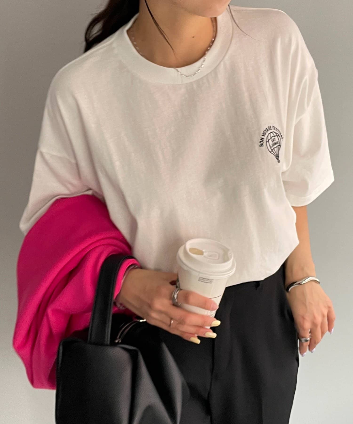 シンプルなのにトレンド感をプラスしてくれる、ワンポイント刺繍Tシャツ。