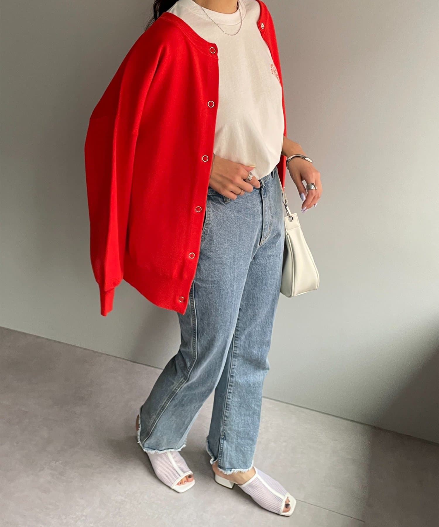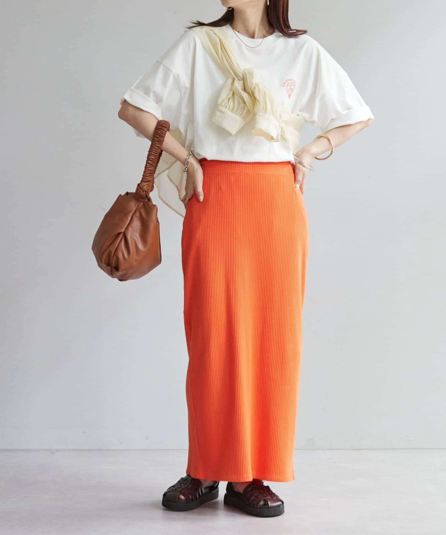 定番のタックインスタイルもパンツ、スカートを選ばず合わせやすいのが魅力です。