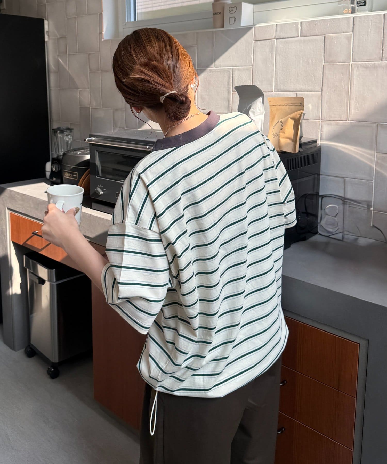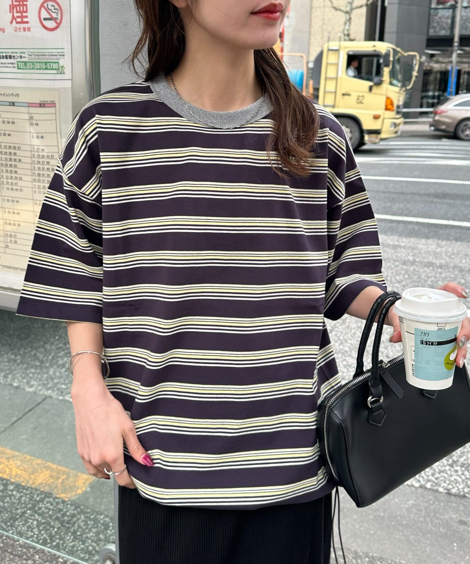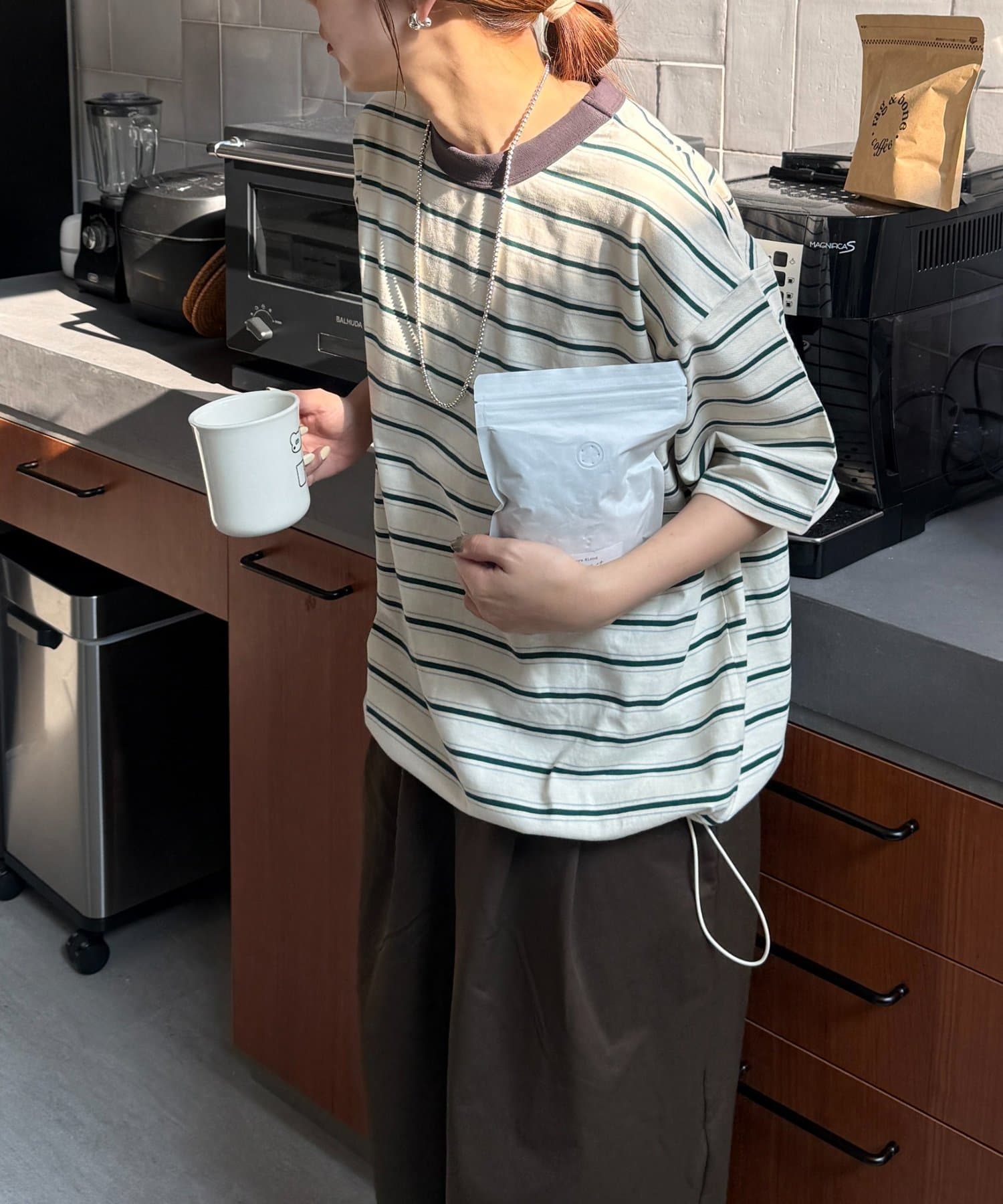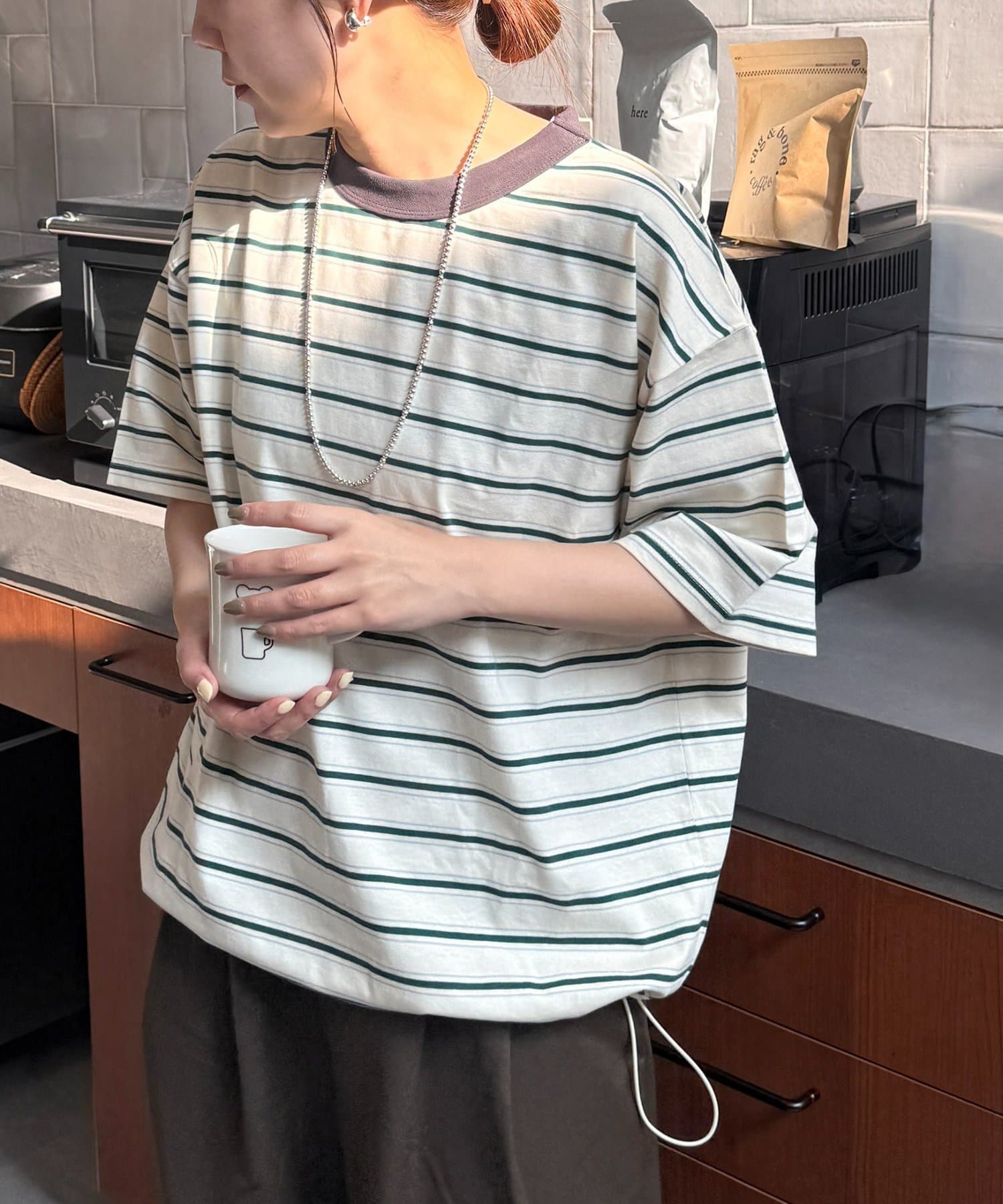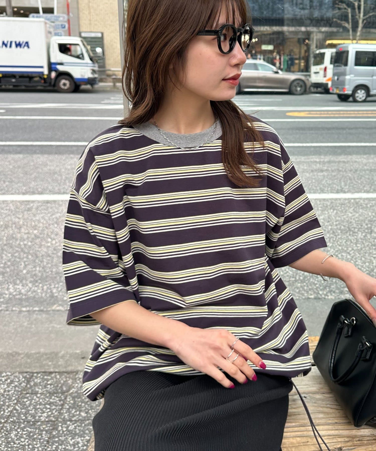 162cmスタッフ:カジュアル好きにはたまらないボーダーT♡首元が配色になっているのがお気に入りです!