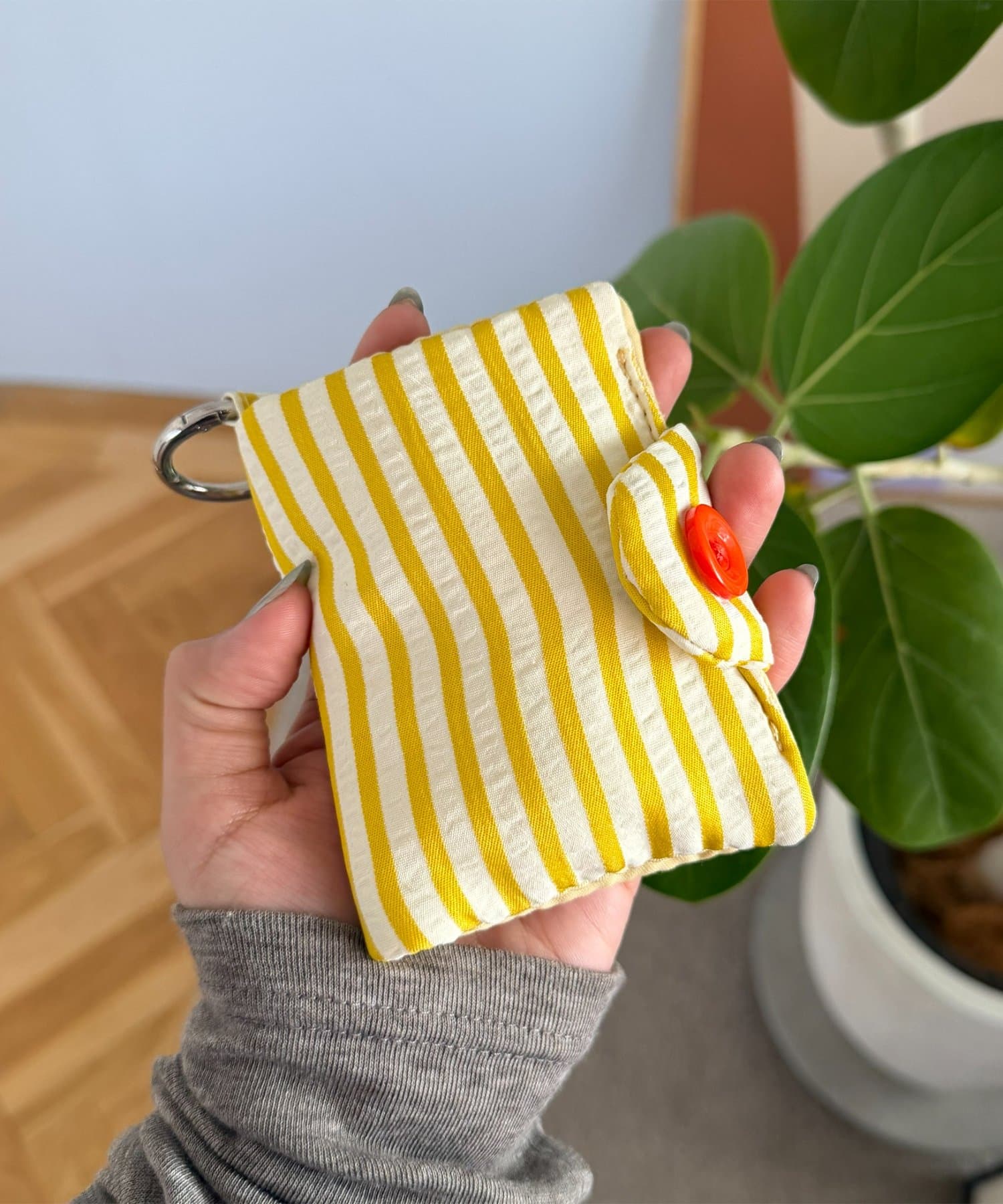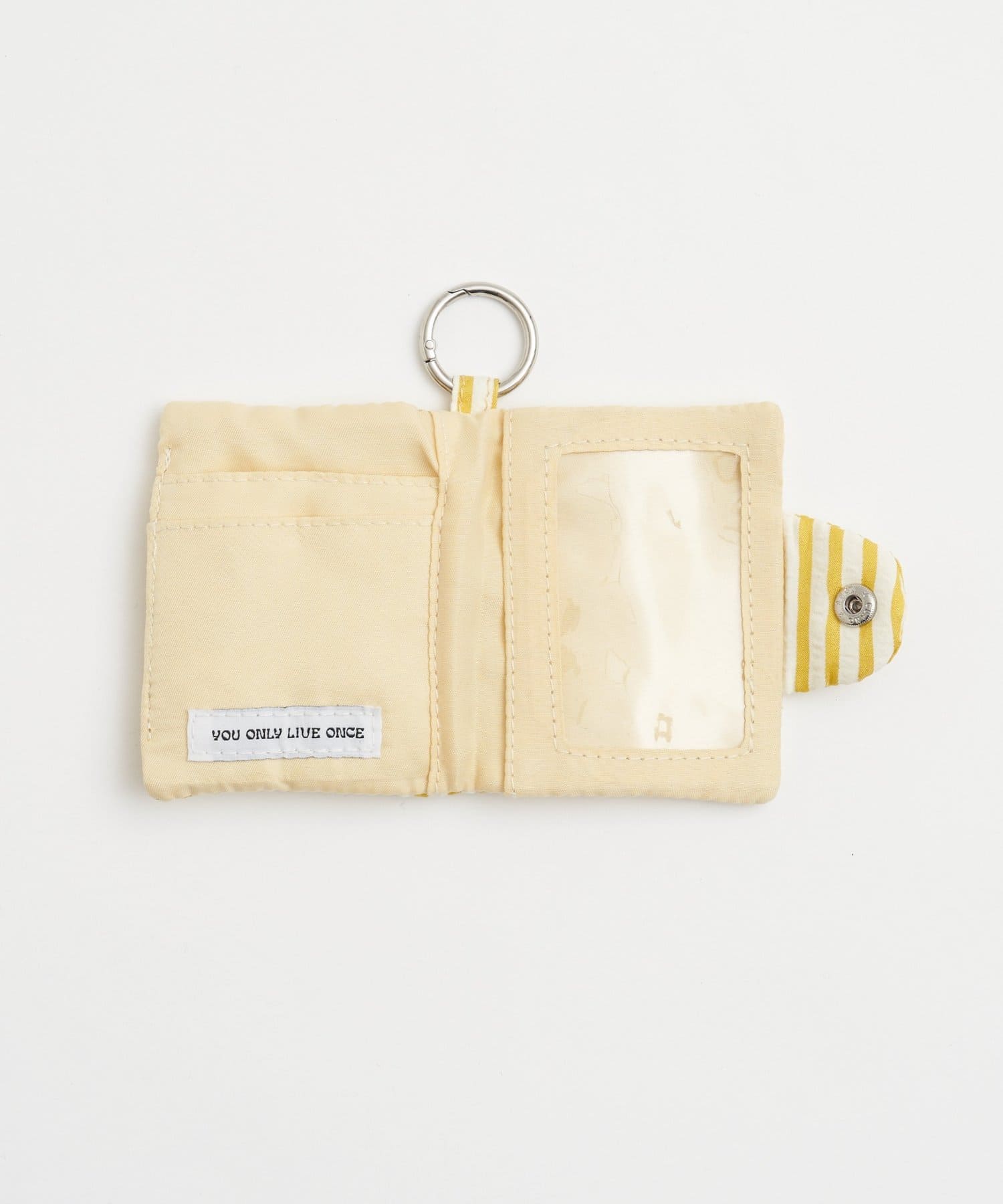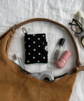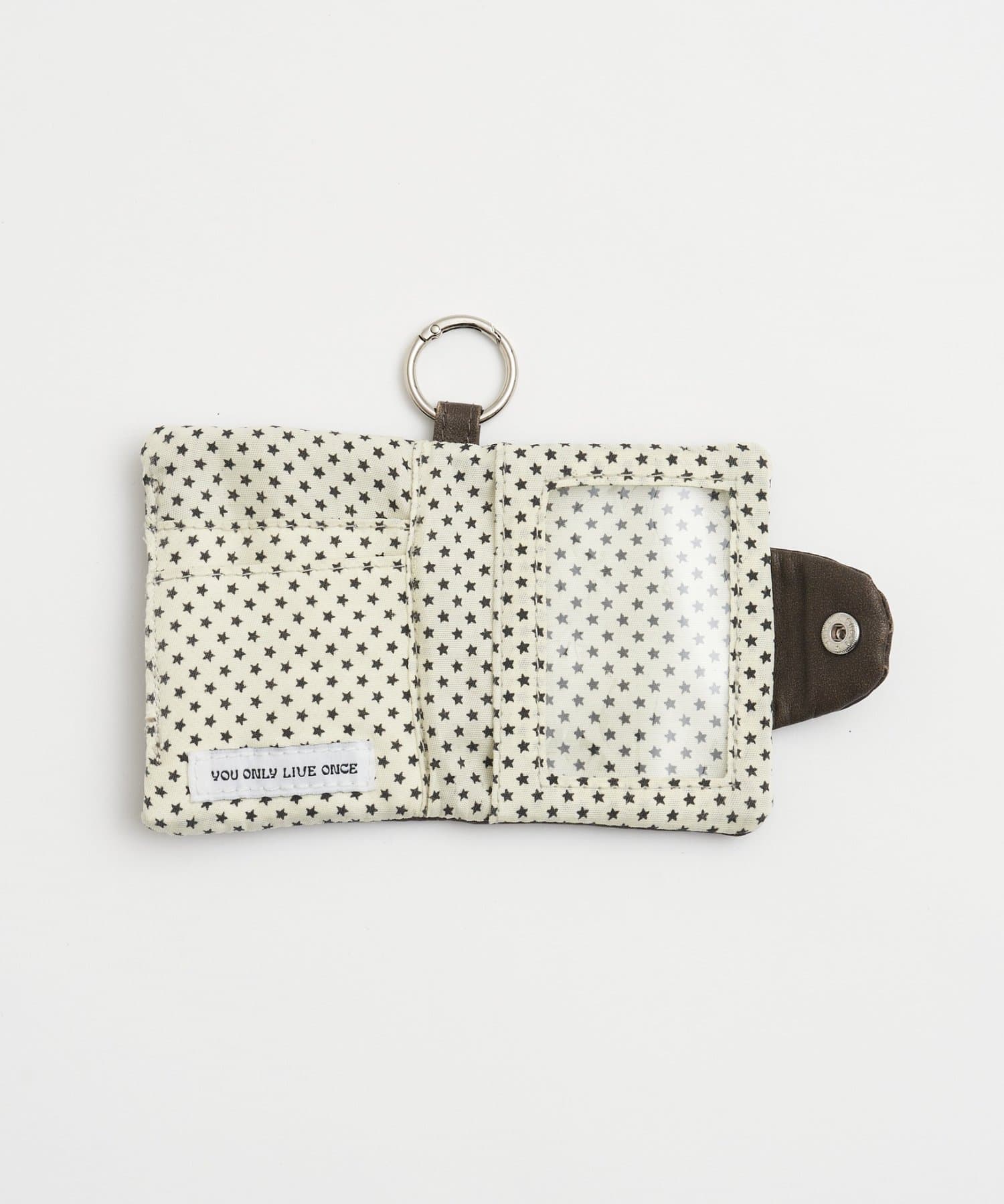 縦11cm、横8.5cmと、バッグやポケットにもすっきりと収まるコンパクトなサイズ感。内側にはクリアポケットを備えているので、お気に入りのカードの絵柄を見せたまま飾るように収納できます。スナップボタン付きのフラップで、大切な中身が滑り落ちる心配もなく安心◎さらに、便利なキーリングが付いているので、バッグの持ち手やベルトループに簡単に取り付けることができます。ICカードケースやパスケース、社員証入れとしてもお使いいただけるので、通勤・通学の日常シーンにもおすすめのアイテムです♪