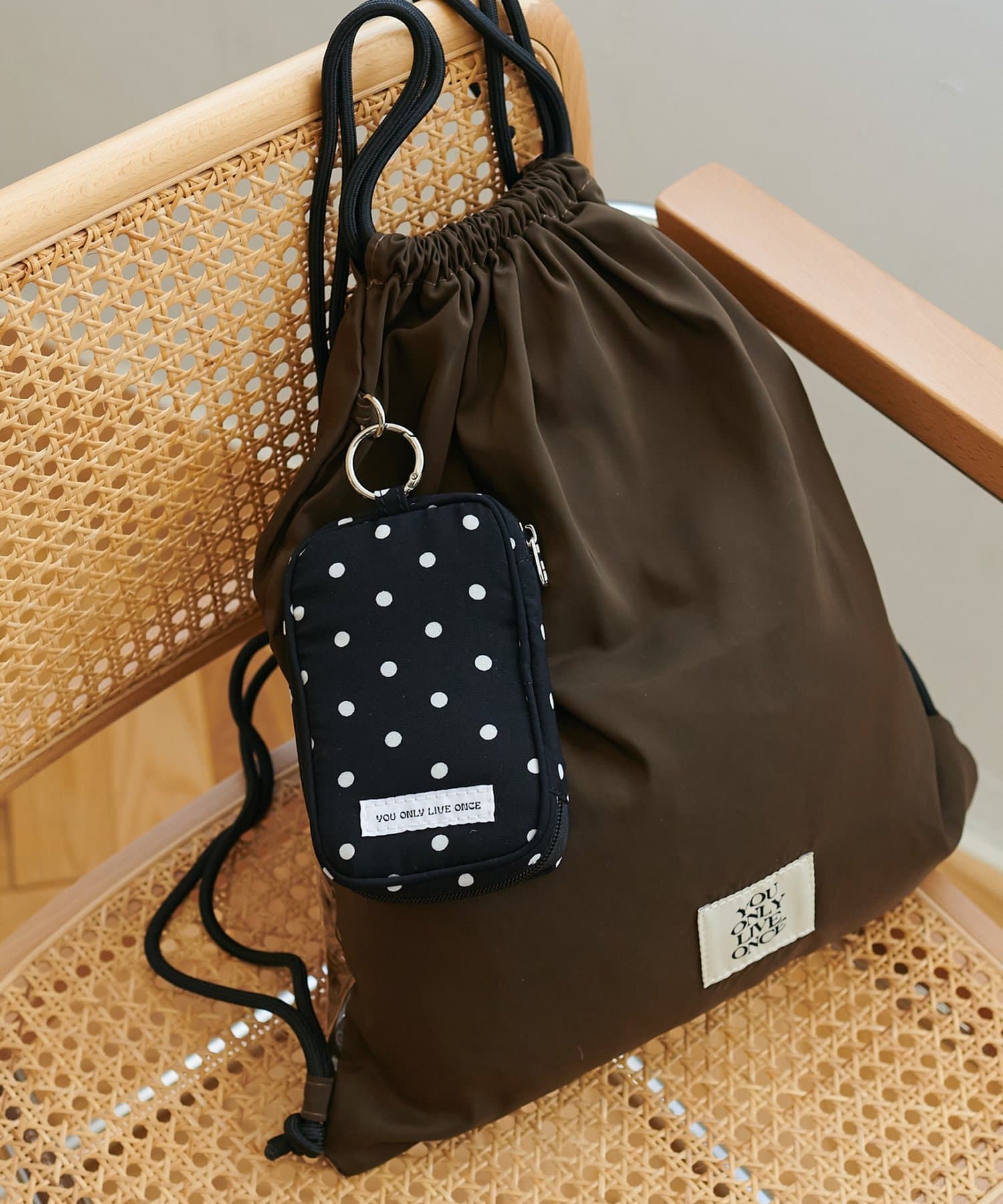 品番 DPZ2061418A0003 素材 本体:ナイロン(ベージュ)・ポリエステル(イエロー・ブラック)・合成皮革(ブラウン)