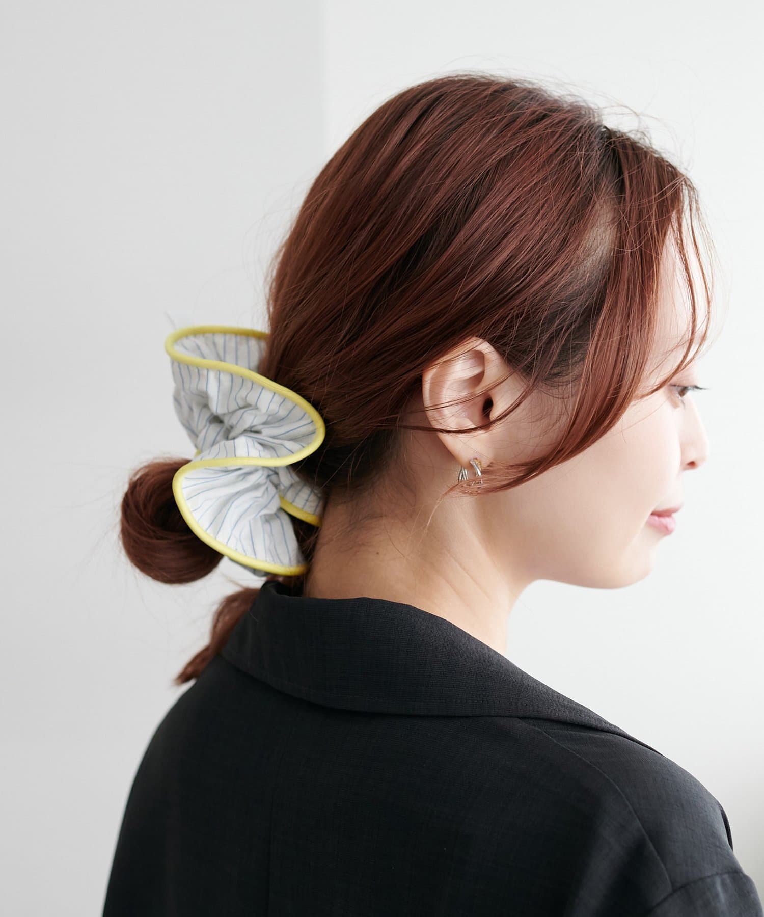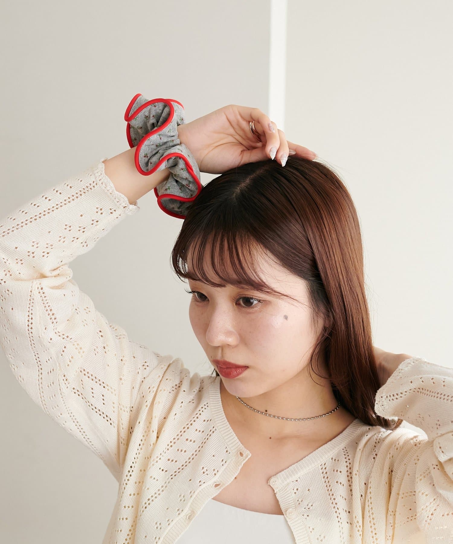 パイピング:ポリエステル(オフホワイト)、ポリエステル・ナイロン(ブラック)原産国 - サイズ FREE カテゴリ ヘアアクセサリー > シュシュ タイプ レディース ギフト ラッピング 可 取り扱い - アイテムサイズ