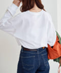 シンプルの中にさり気ない遊び心で、スタイルを選ばず無地Tシャツのようにコーディネートに取り入れやすいのが魅力。